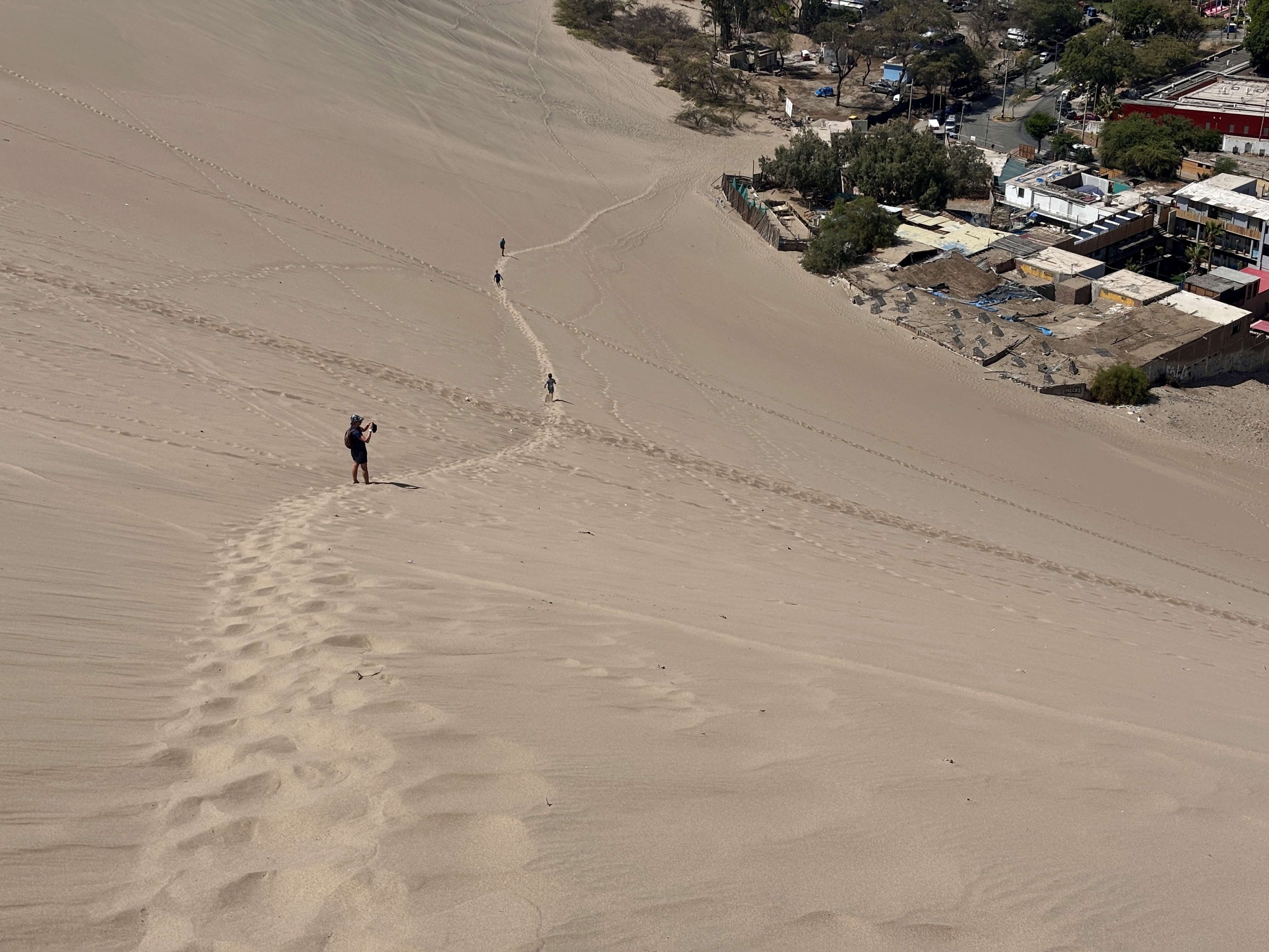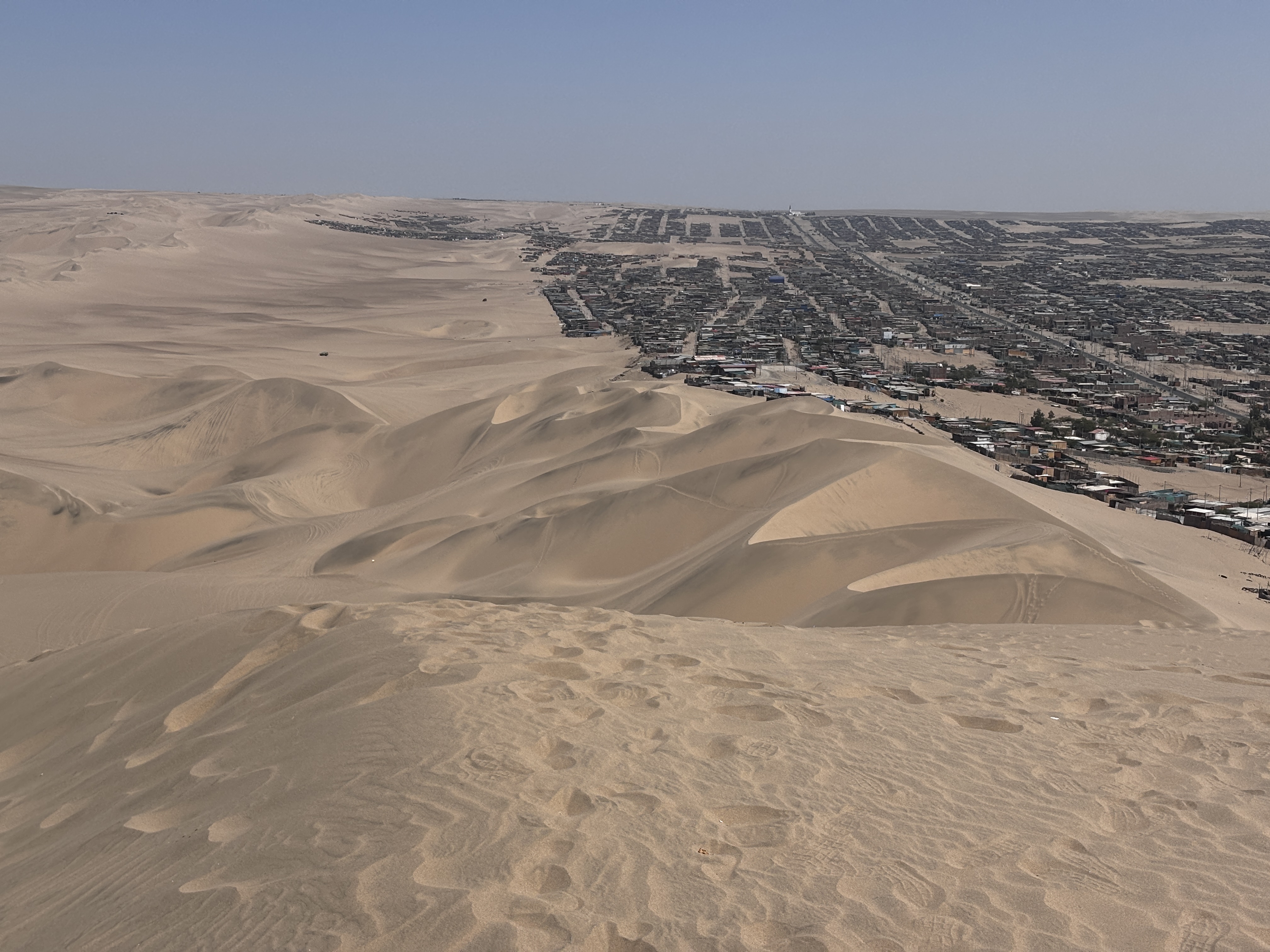 De Huacachina, le 17 avril, remontant les crêtes des dunes à l’ouest de l’oasis, entre le Pacifique et les premières pentes des Andes, sidéré par l’irréel des sables comme des vagues figées, entendre au loin les hurlements gras des buggies chevauchant sous le vent brûlant, chercher l’illusion d’un autre monde.