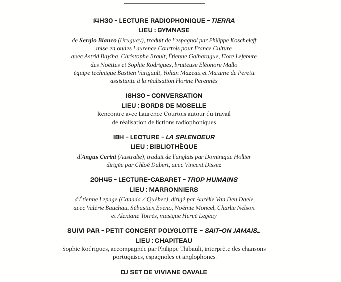 Une semaine durant, à la Mousson d’été, pour la quatrième année, j’écris le journal du festival en compagnie cette année de Laëtitia Guichenu. Ici le Temporairement Contemporain du jour.