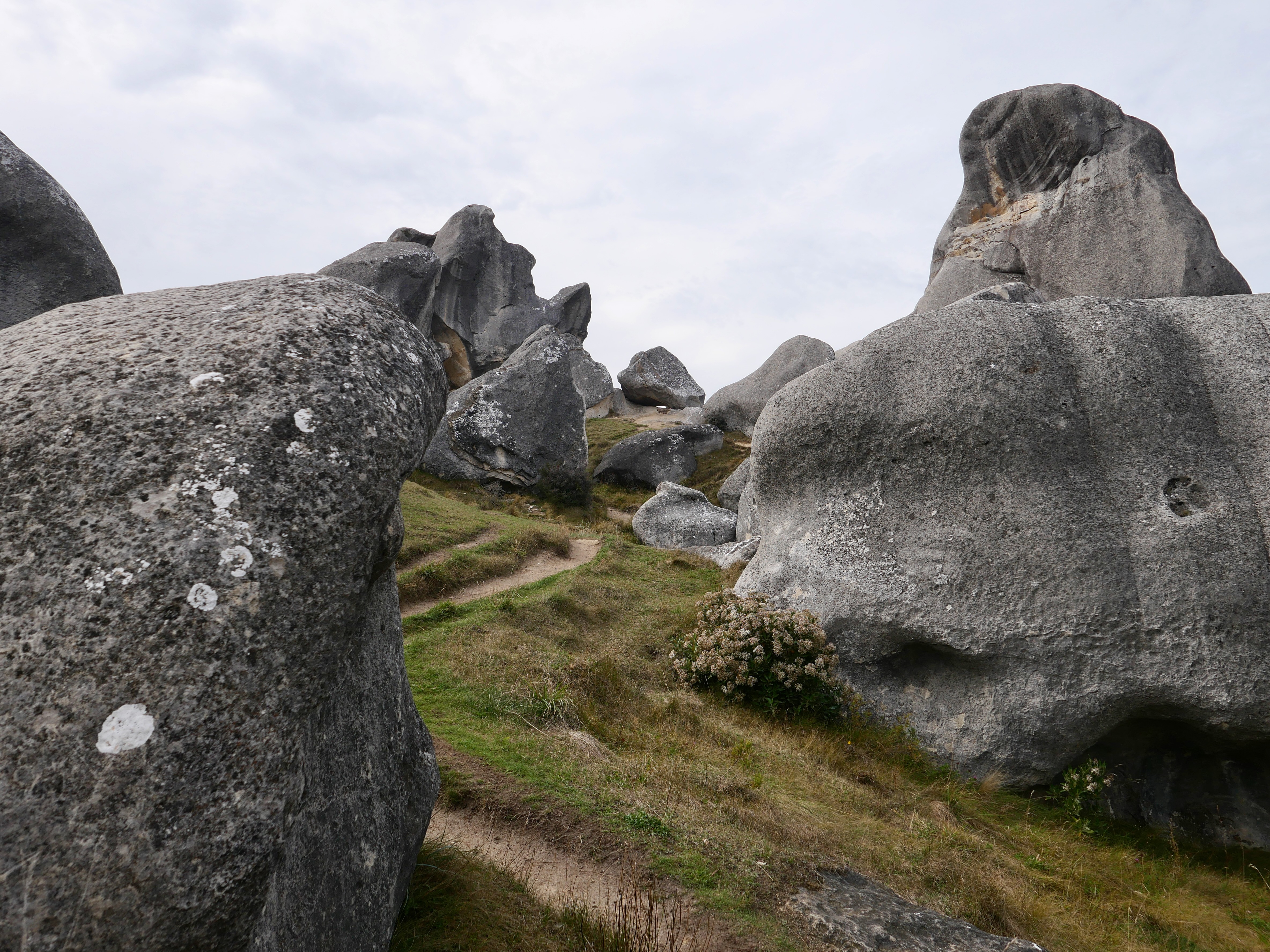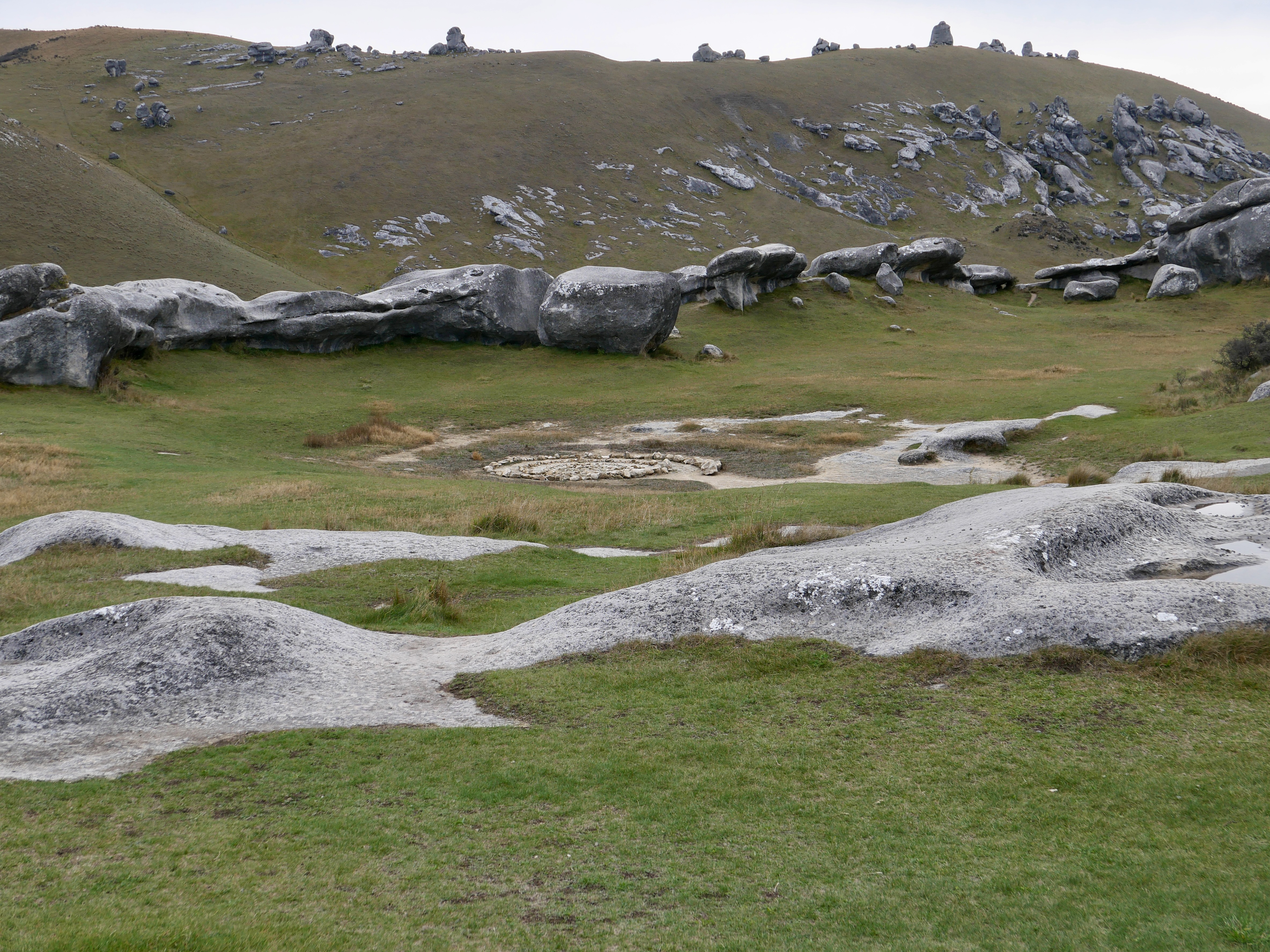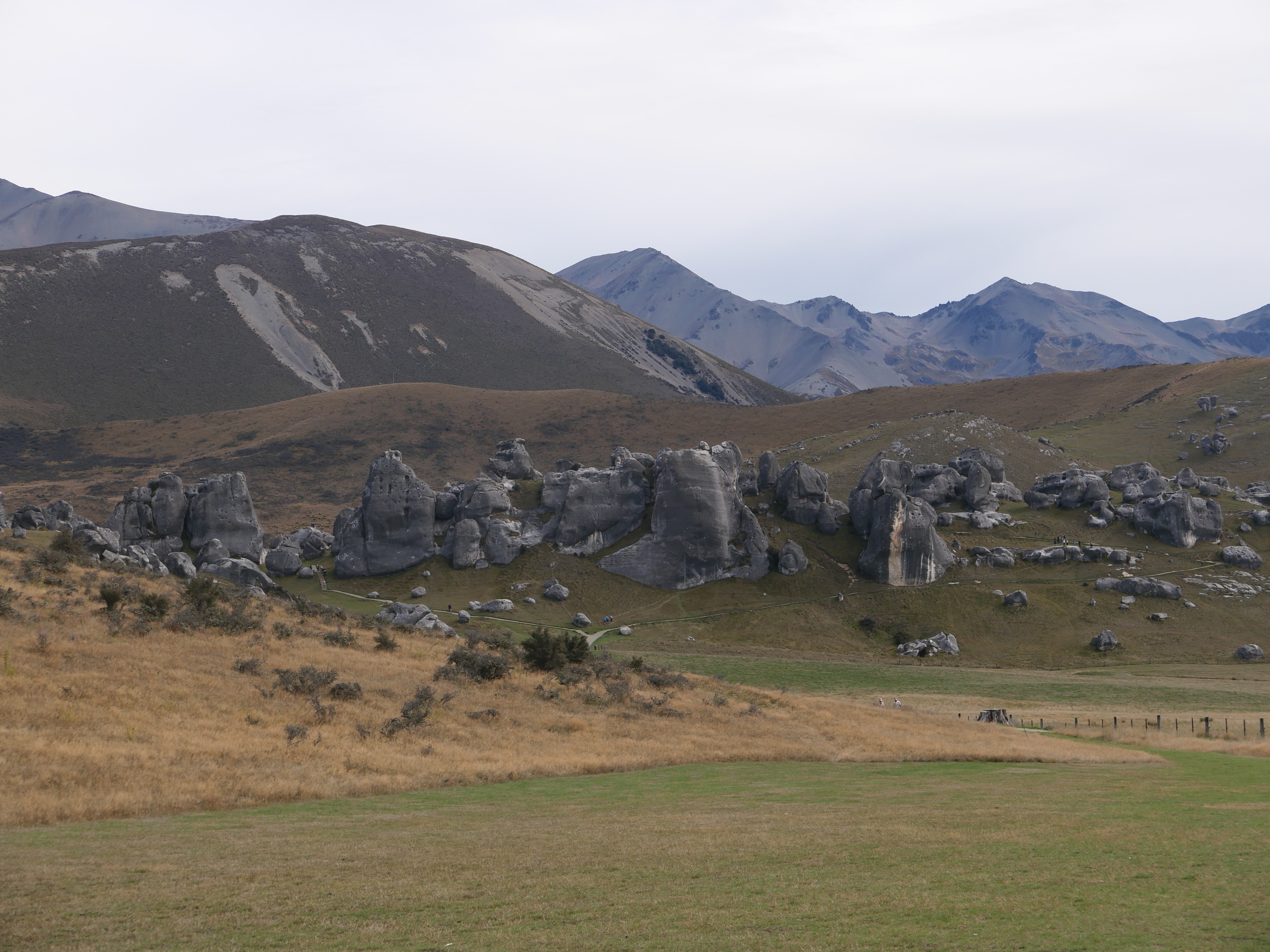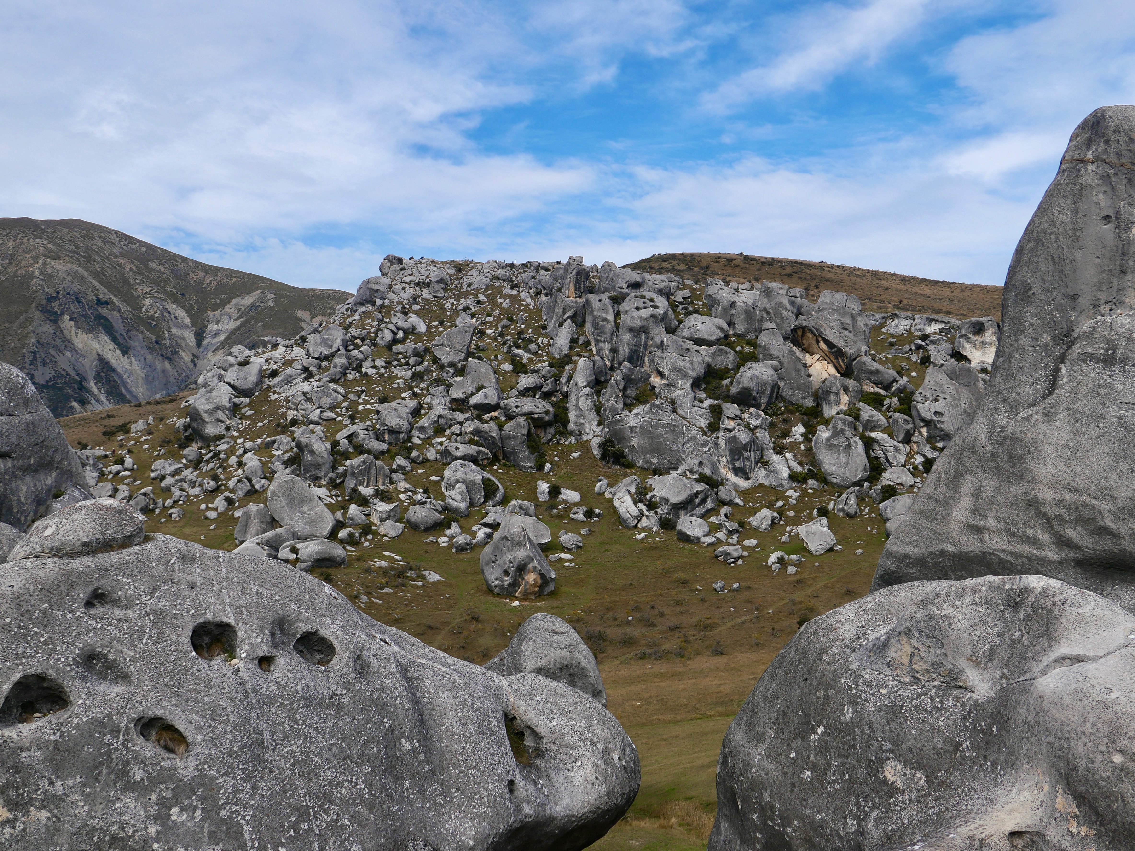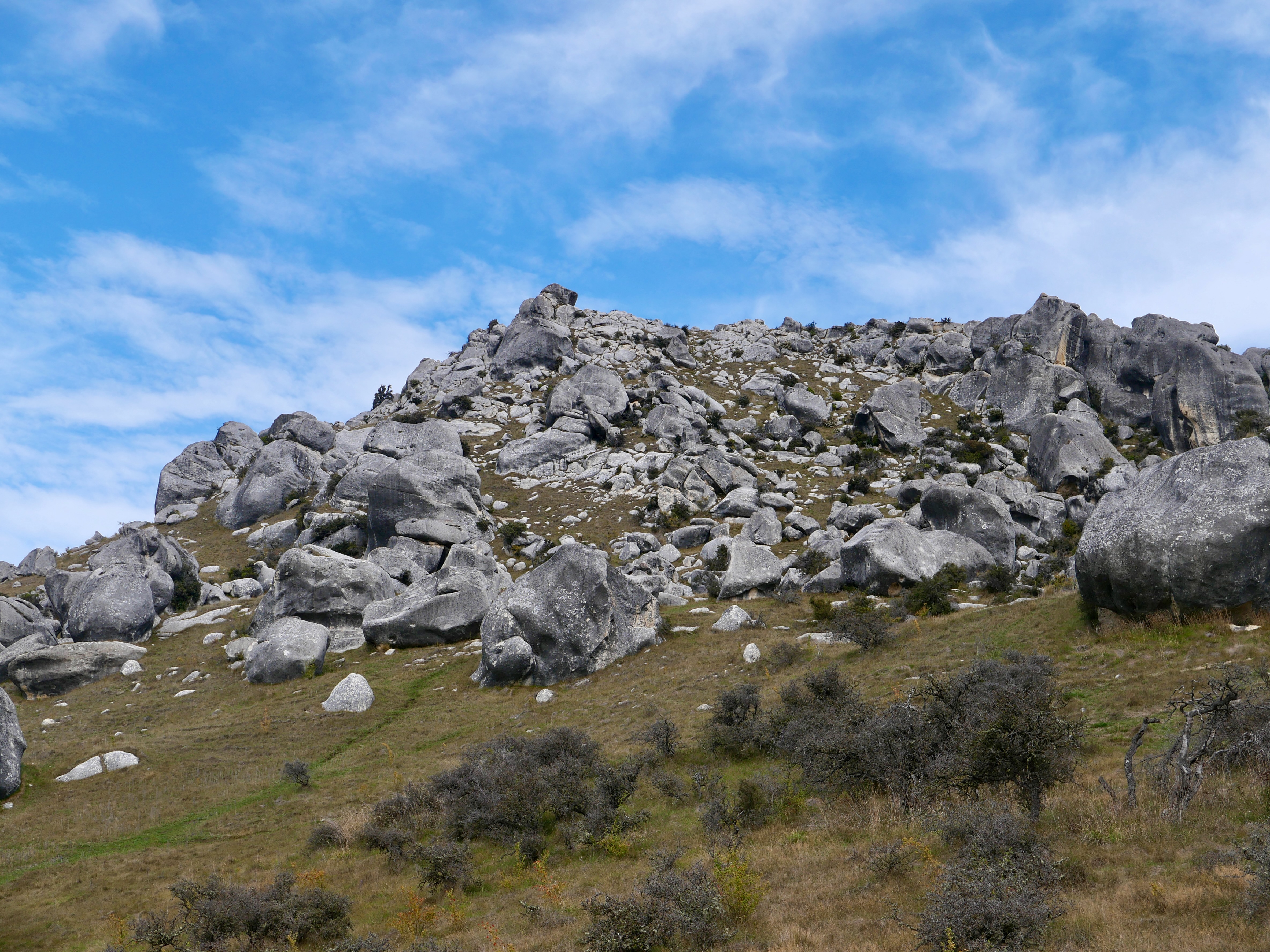 Nous sommes au cœur de l’île du Sud, dans les Alpes néo-zélandaises, entre Christchurch et Arthur’s Pass. Ici, à plus de 700 mètres d’altitude, la pierre est du calcaire, sculpté par le vent, la glace, les pluies acides d’un autre âge. Ces blocs géants sont nés sous la mer, il y a 30 millions d’années, soulevés lentement par les mouvements de la croûte terrestre, puis burinés par le temps. Les anciens Maoris connaissaient cette vallée depuis longtemps : les Ngāi Tahu y venaient en pèlerinage, pour chercher le pounamu dans les rivières de l’ouest, mais aussi pour écouter, pour honorer. Kura Tāwhiti n’était pas seulement un passage : c’était un seuil, un lieu de savoirs et de récits, chargé de tapu. Puis vinrent les colons, les routes, les clôtures. Un nom anglais s’est posé là — Castle Hill, pour les ressemblances que les Européens voyaient entre ces blocs et les ruines de leurs châteaux écroulés. Mais les pierres, elles, n’ont pas changé qui veillent. Et quelque part dans l’ombre qu’elles projettent, l’ancien nom continue de battre.