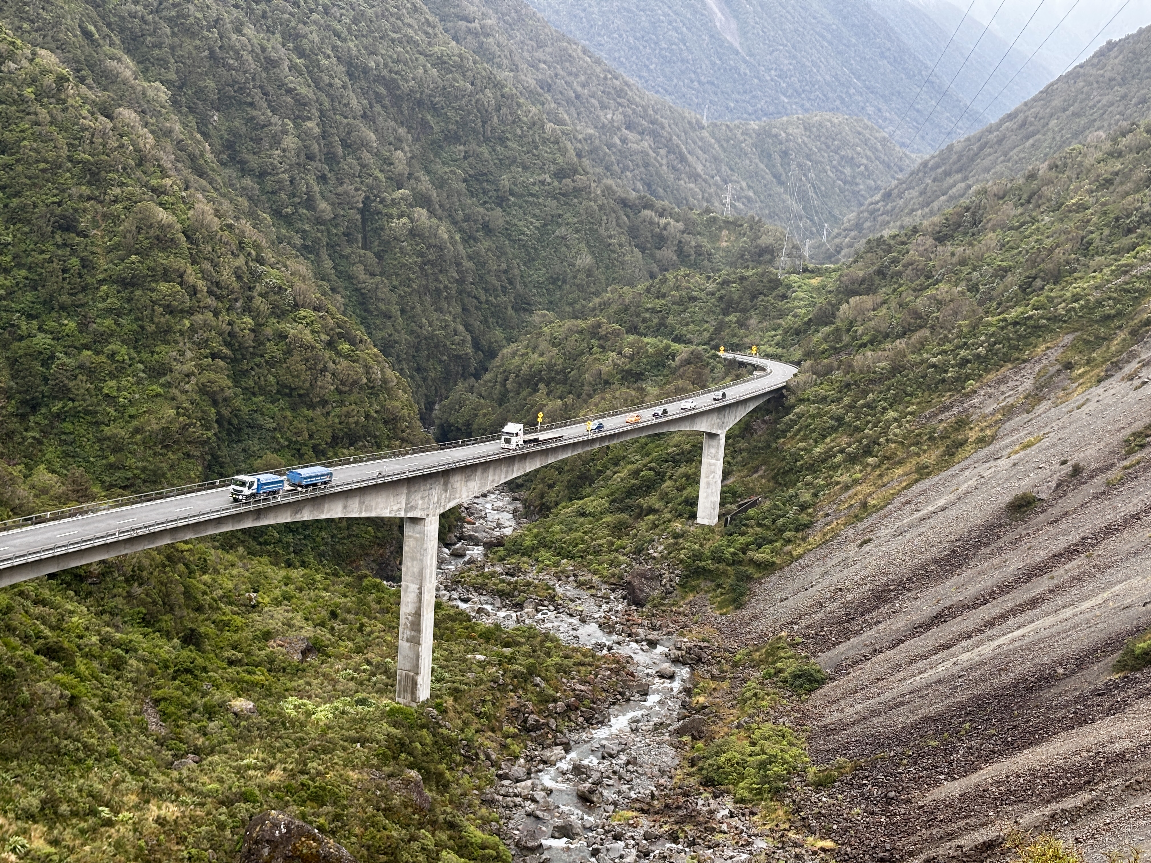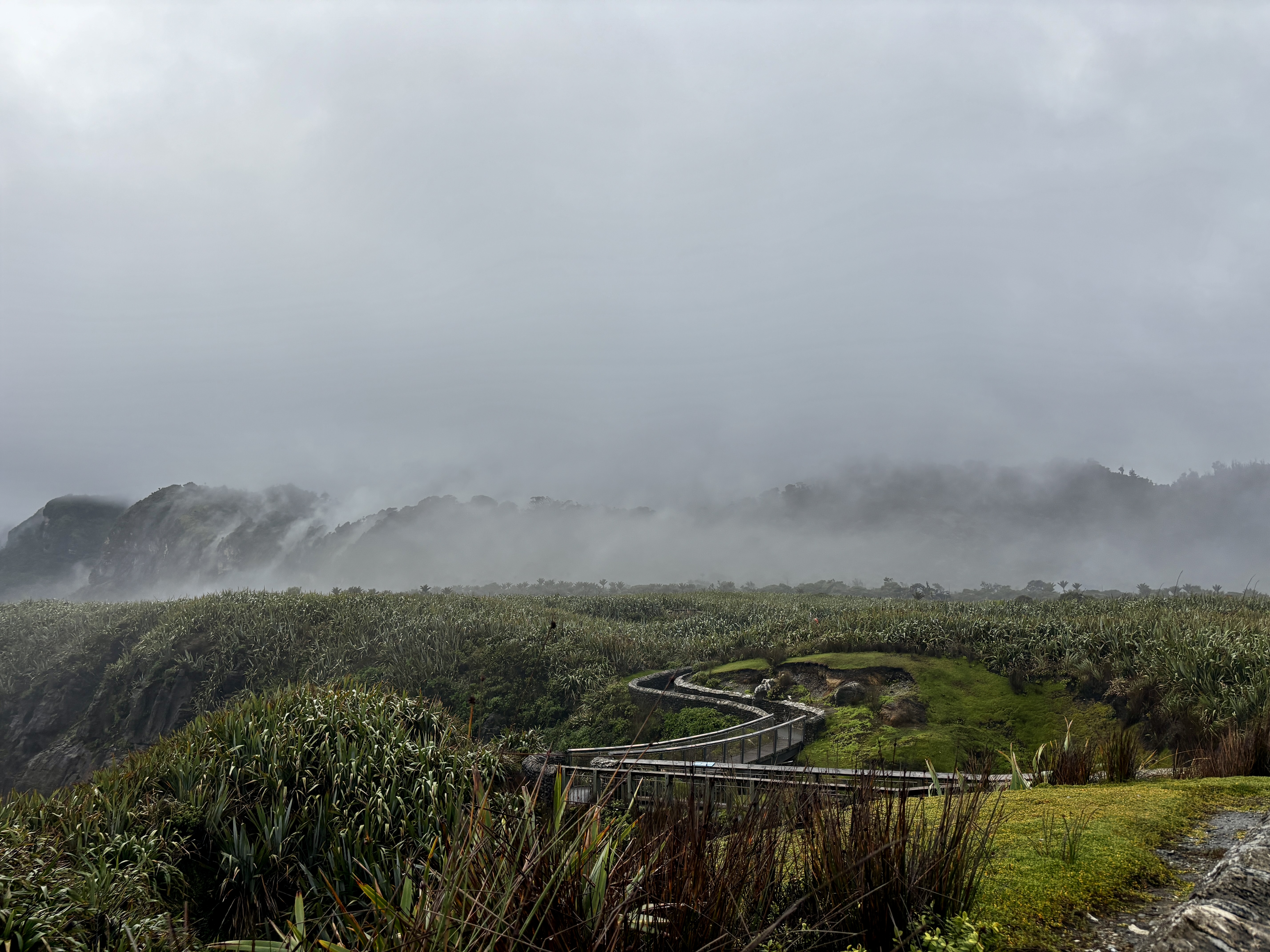 Depuis Christchurch, le 2 avril, la route traverse les plaines de Canterbury, longe les méandres de la Waimakariri, puis grimpe dans les Alpes du Sud, avalées par la brume, et se faufile entre les beech forests trempées de pluie – sous les nuages bas, Arthur’s Pass surgit comme une faille ouverte par les premiers colons frayant un passage vers l’or.