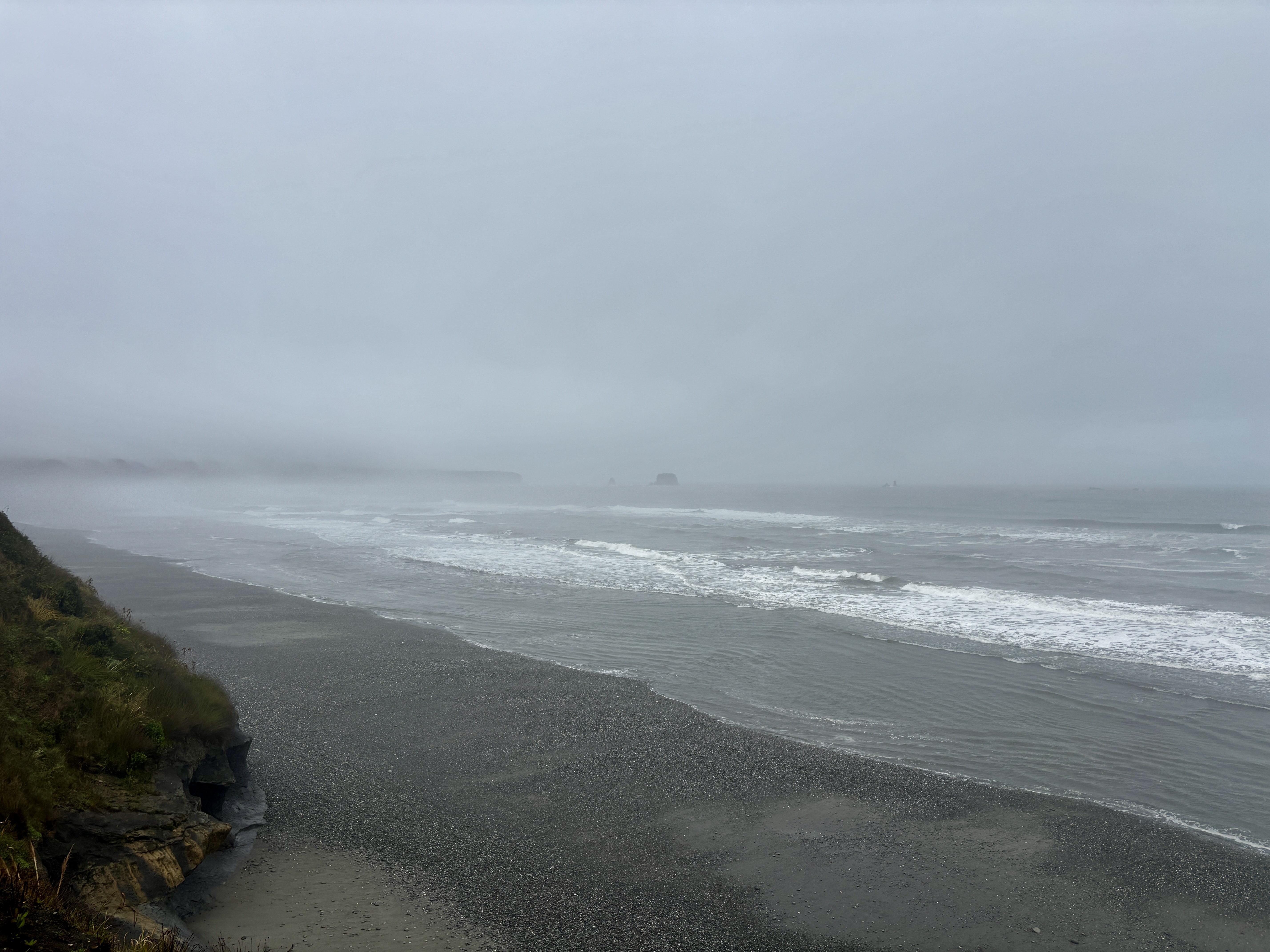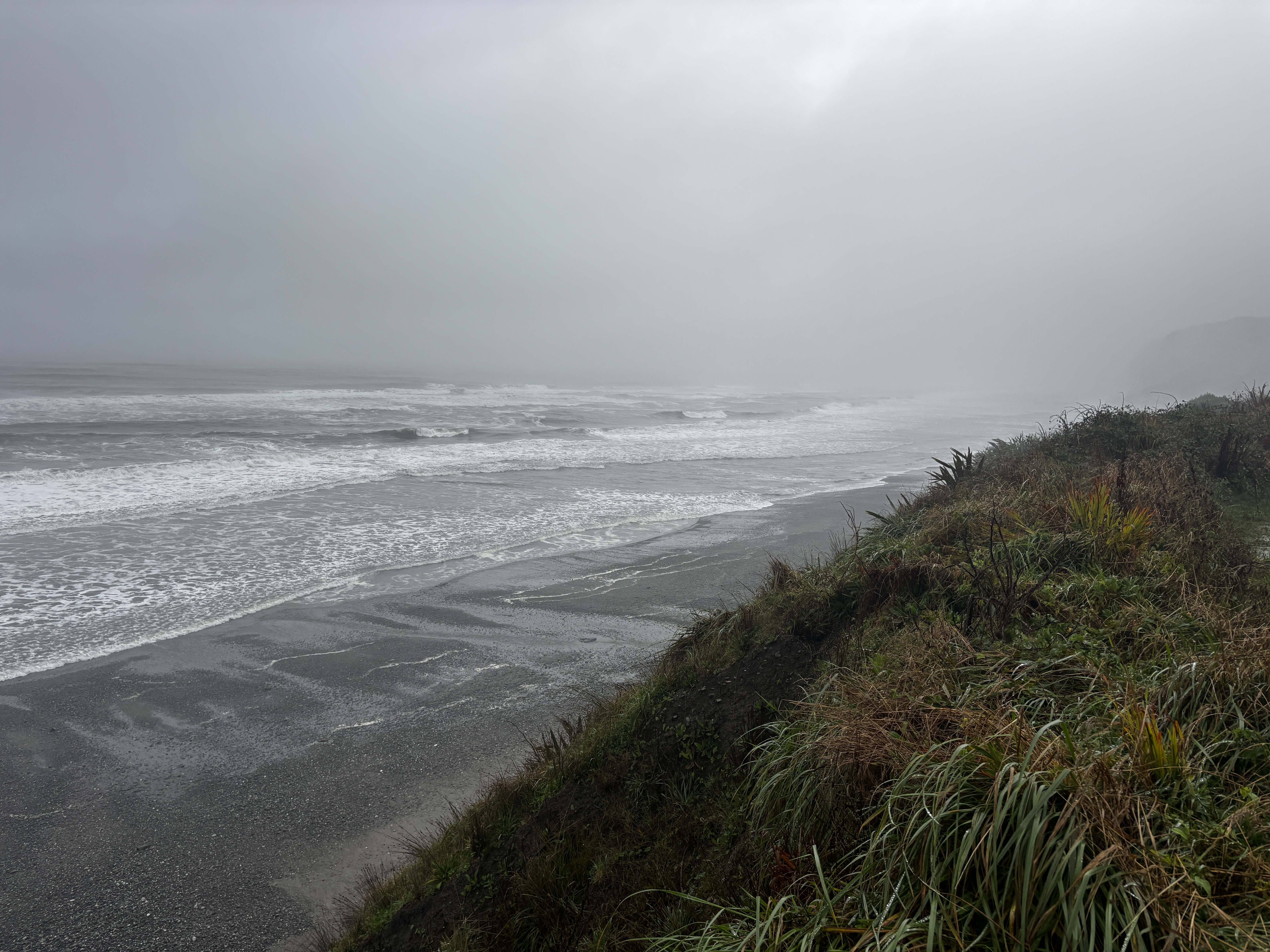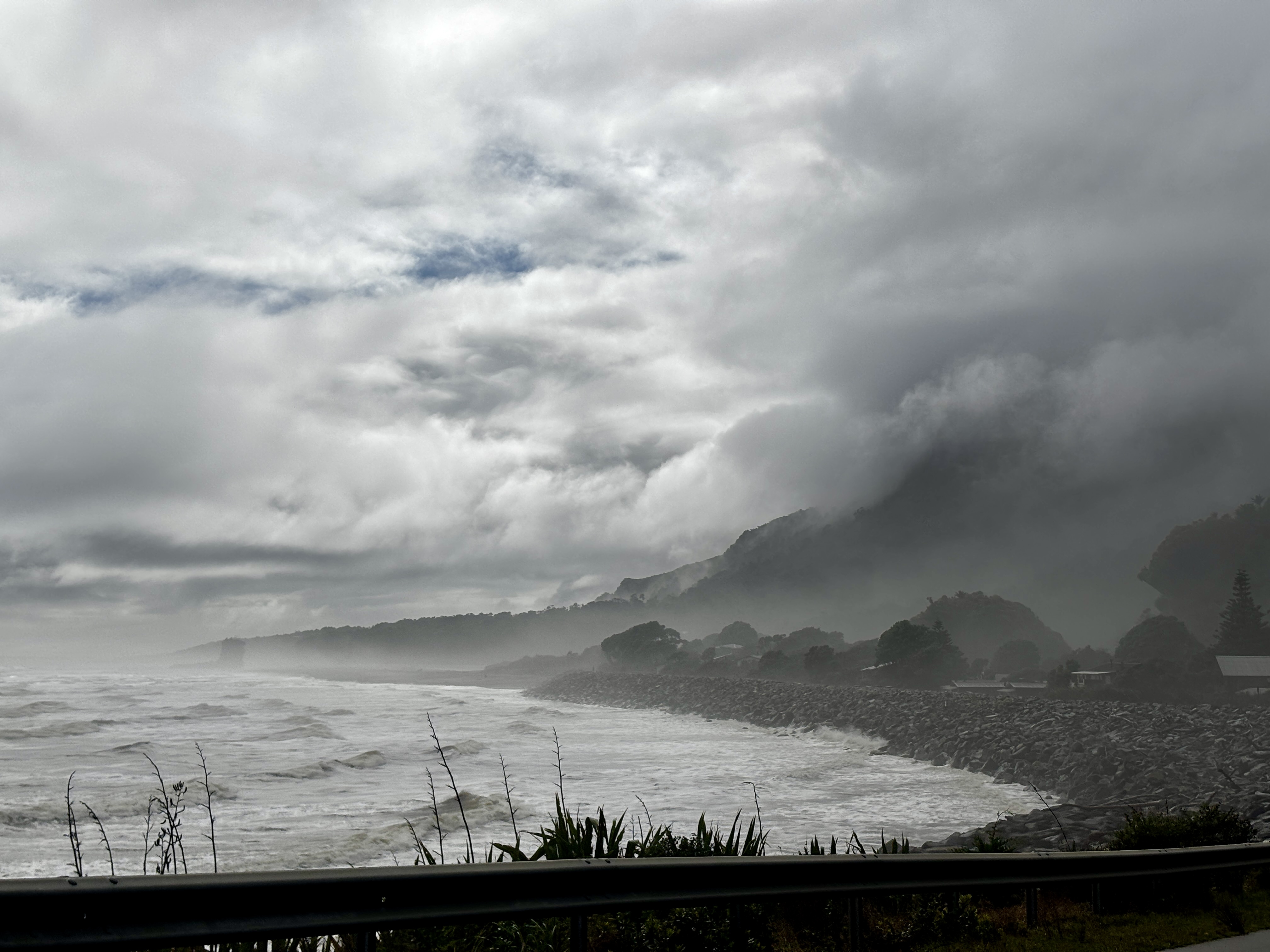 La vallée s’étendait désespérément sous son ciel bas, engloutie quelque part que personne ne chercherait plus, alors les premières montagnes ont émergé lentement, fatiguées mais indéfinissables, au fond d’un paysage en fond perdu. Plus loin, la route grimpe, se glisse à travers les forêts de hêtres, les arbres détrempés, leurs troncs noirs luisants sous l’humidité, l’air lourd de mousse et de terre humide. Arthur’s Pass se dresse, sa plaie ouverte par les chercheurs d’or qui avaient voulu dompter la terre vierge et où le vent, saturé d’histoires et de rêves avortés, souffle sans relâche sur la faille. Le col se lève entre les montagnes, tracé dans le silence, passage obligé pour ceux qui croyaient trouver l’or où la terre ne donnait que des cailloux, de la pluie. Et puis, tout bascule, la route descend, se précipite vers la West Coast, abandonne les hauteurs pour se laisser avaler dans les pentes lourdes et sombres qui se jettent dans la mer de Tasman. La brume se défait sous les morsures du vent qui pousse les vagues jusque sur la terre, et bientôt la lumière change, plus dense, crache le sel et la mémoire – à Greymouth, l’air porte l’odeur du large, ce parfum de fin, de tout ce qui fuit vers l’horizon où la terre se vomit dans la marée.