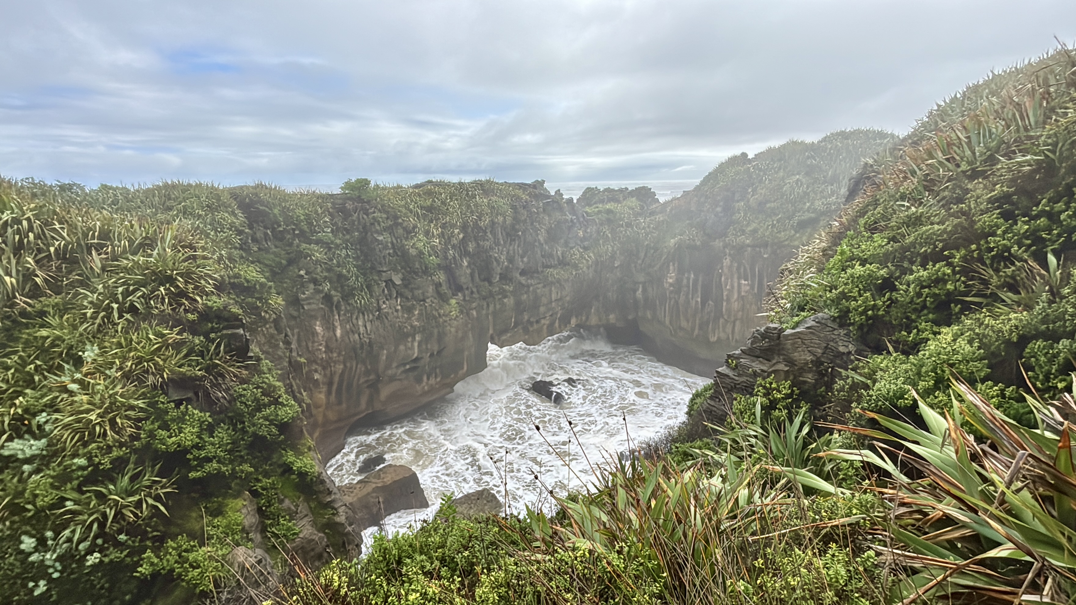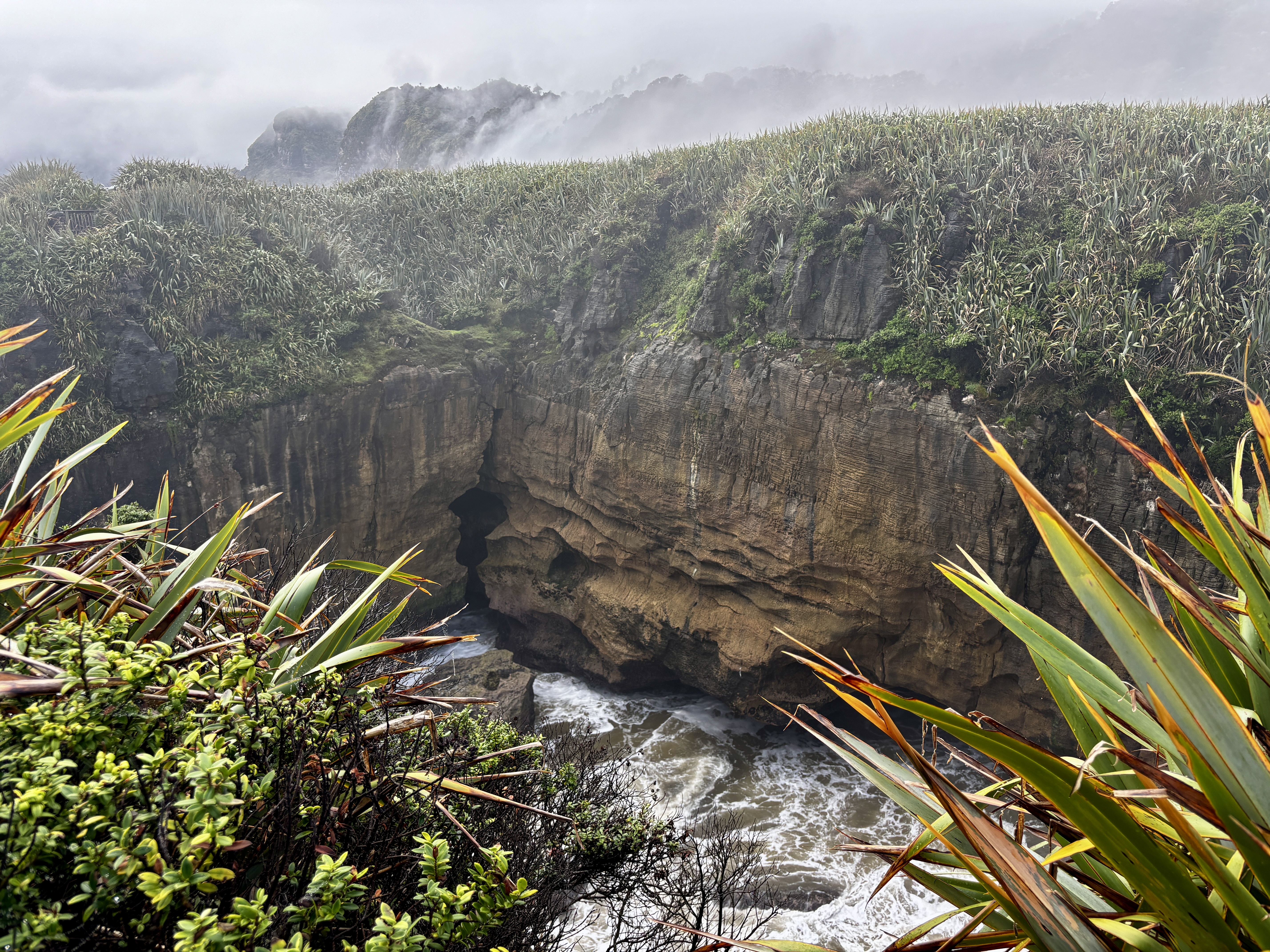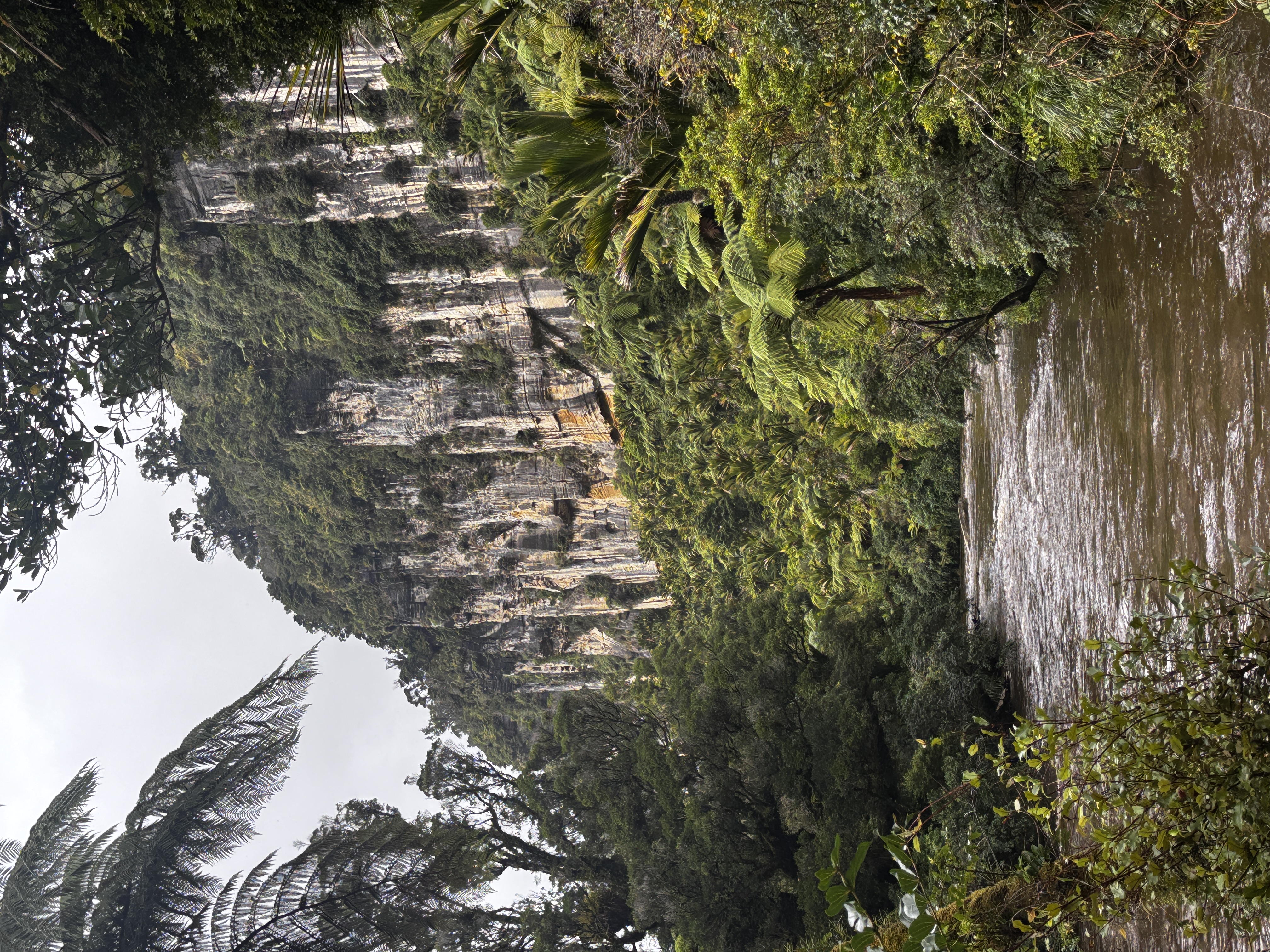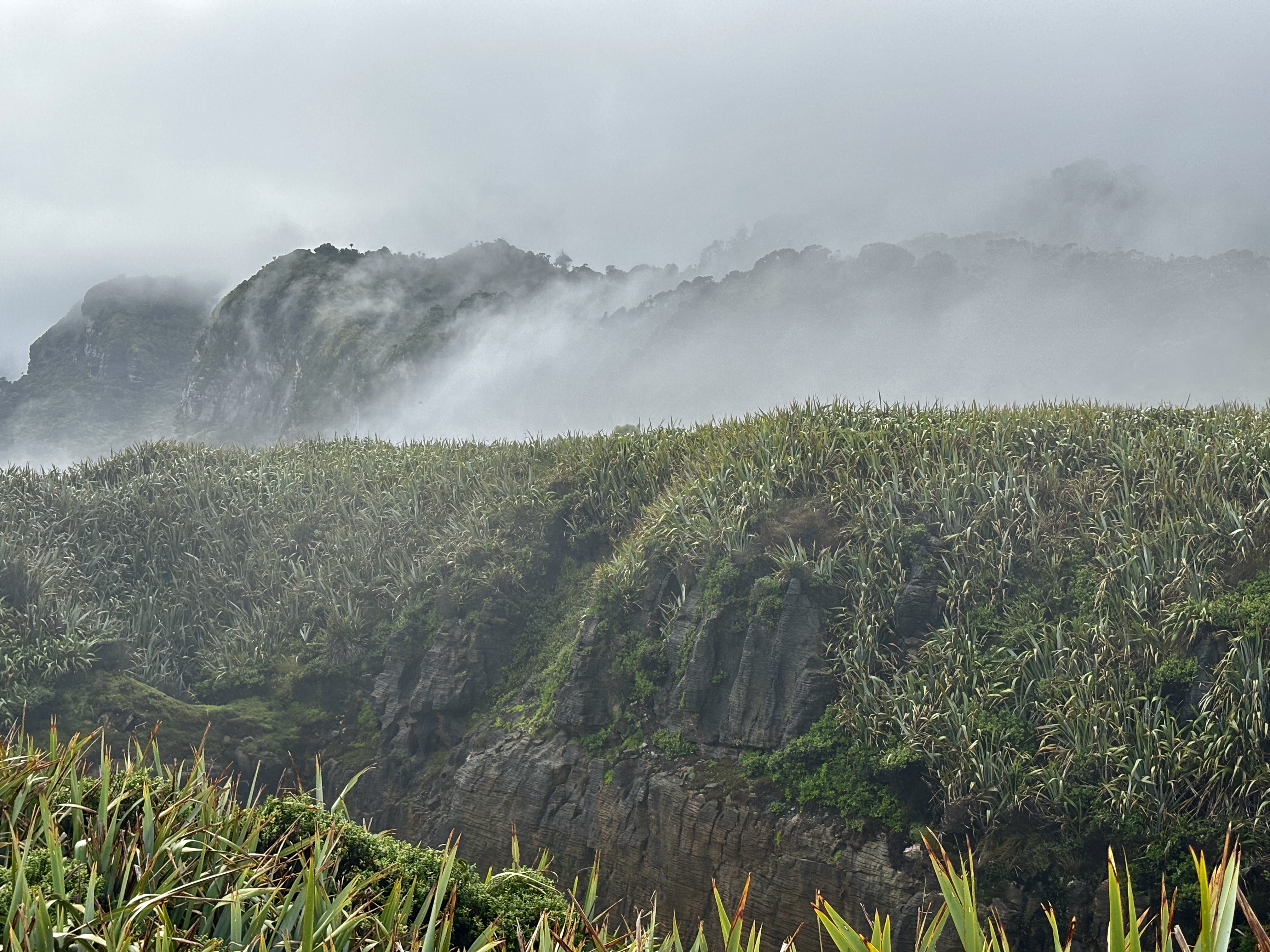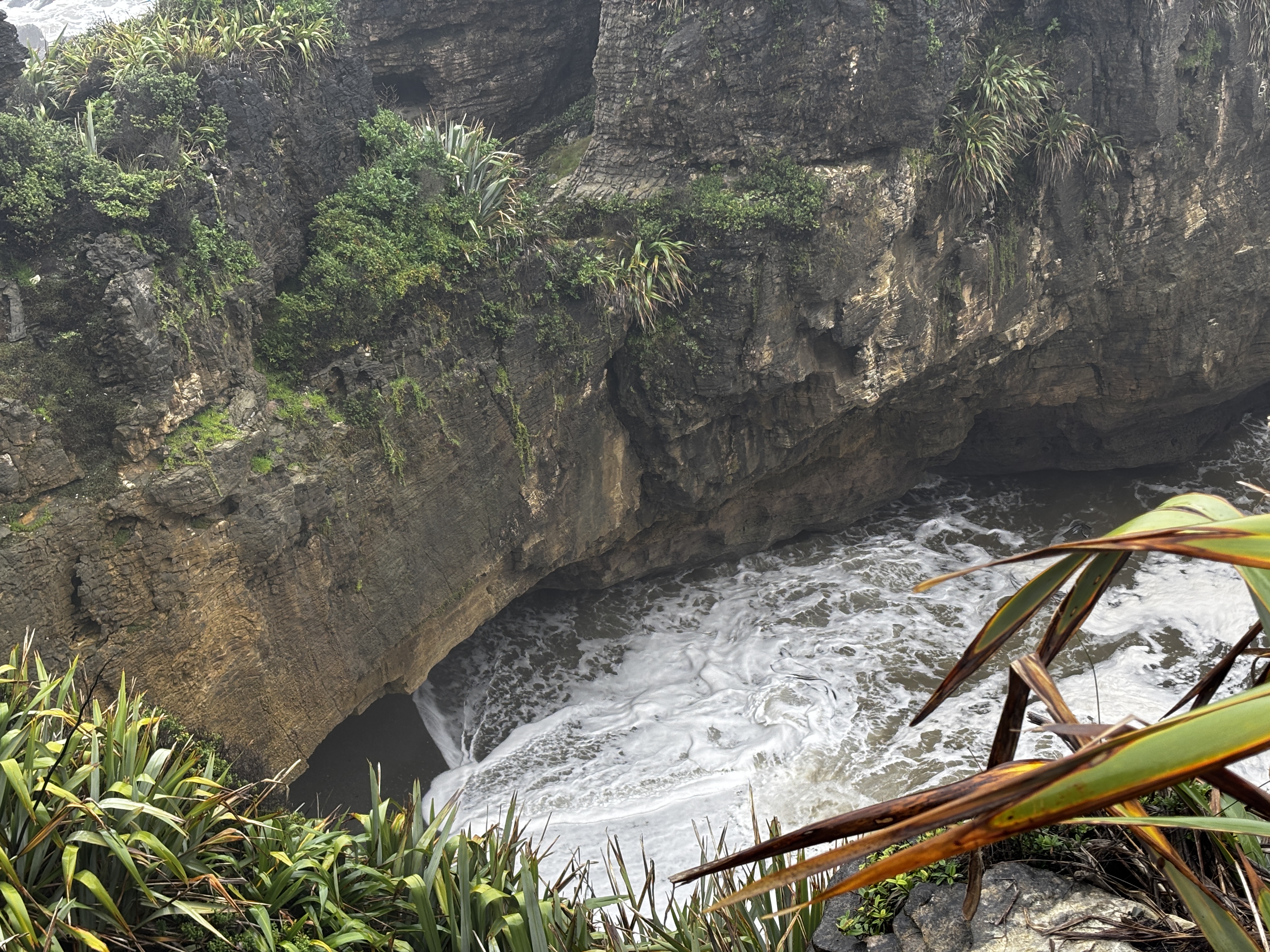 De la côte ouest, longer la mer de Tasman jusqu’à ce qu’elle vienne percuter le Dolomite Site et ce qu’on nomme ici « Pancakes Rock »— comme si l’érosion n’avait donné naissance qu’à de mauvaises plaisanteries pour touristes, quand les Maoris parlaient de Punakaiki, et dans leur mot on entend la bouche de la mer et le battement lent des mondes qui s’effacent — nous n’en verrons pas la fin, même en les regardant patiemment s’effondrer.