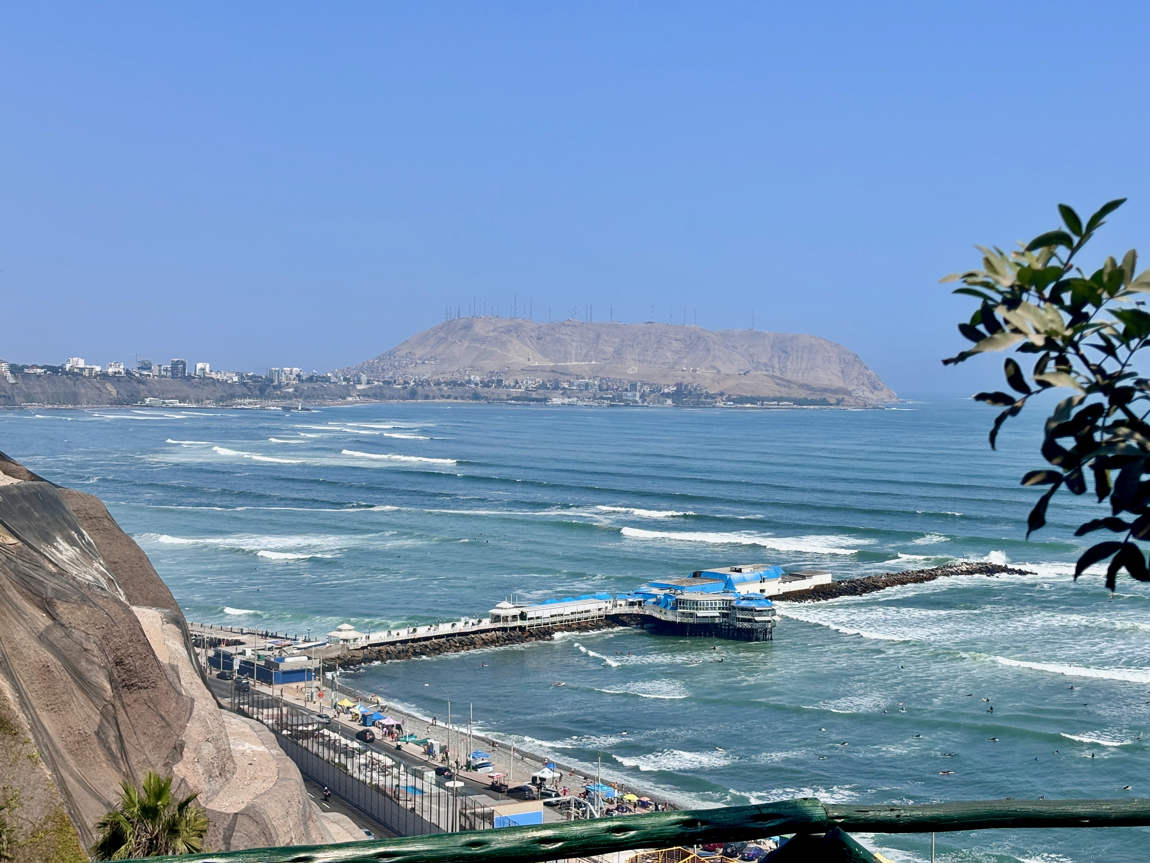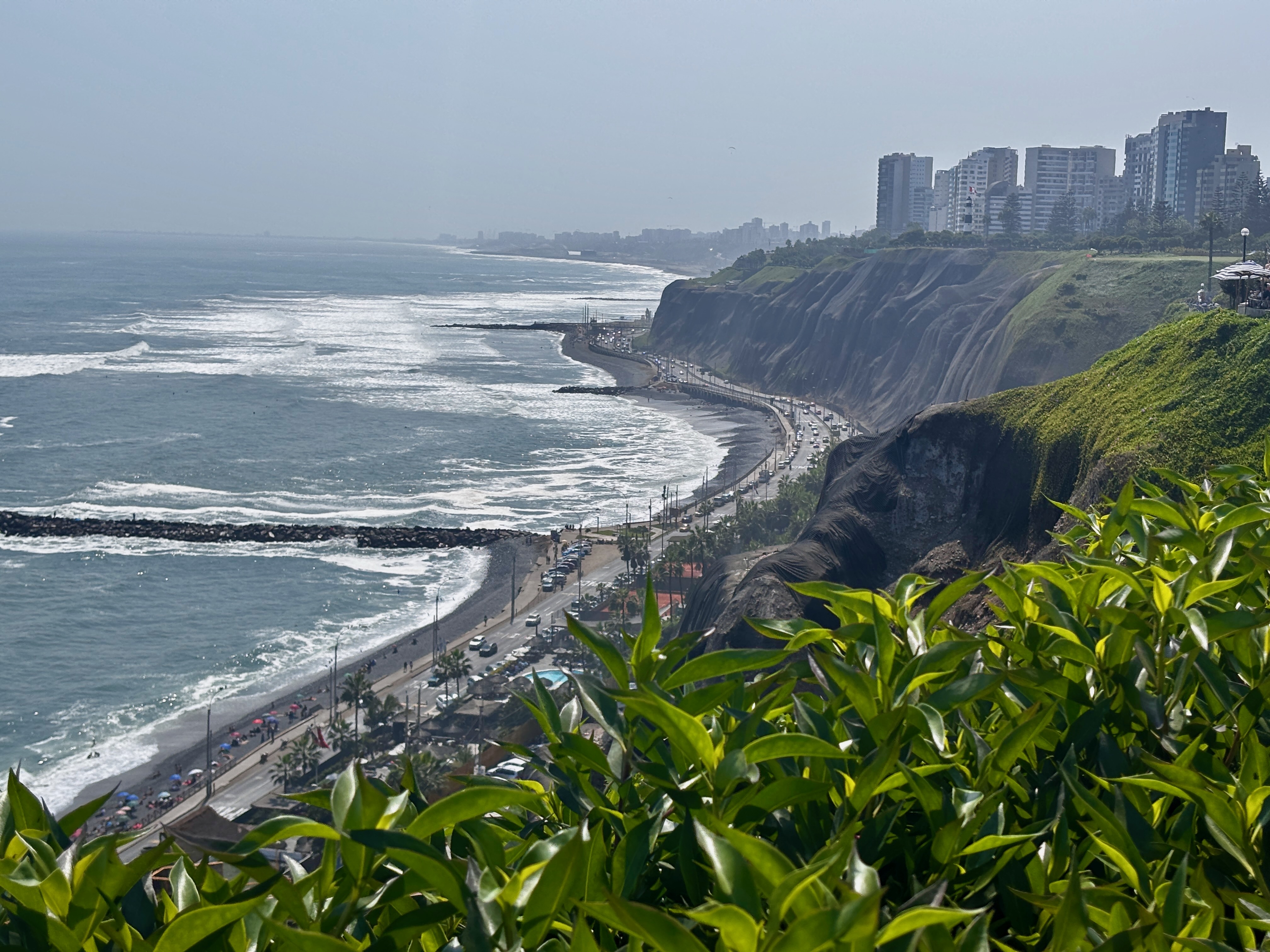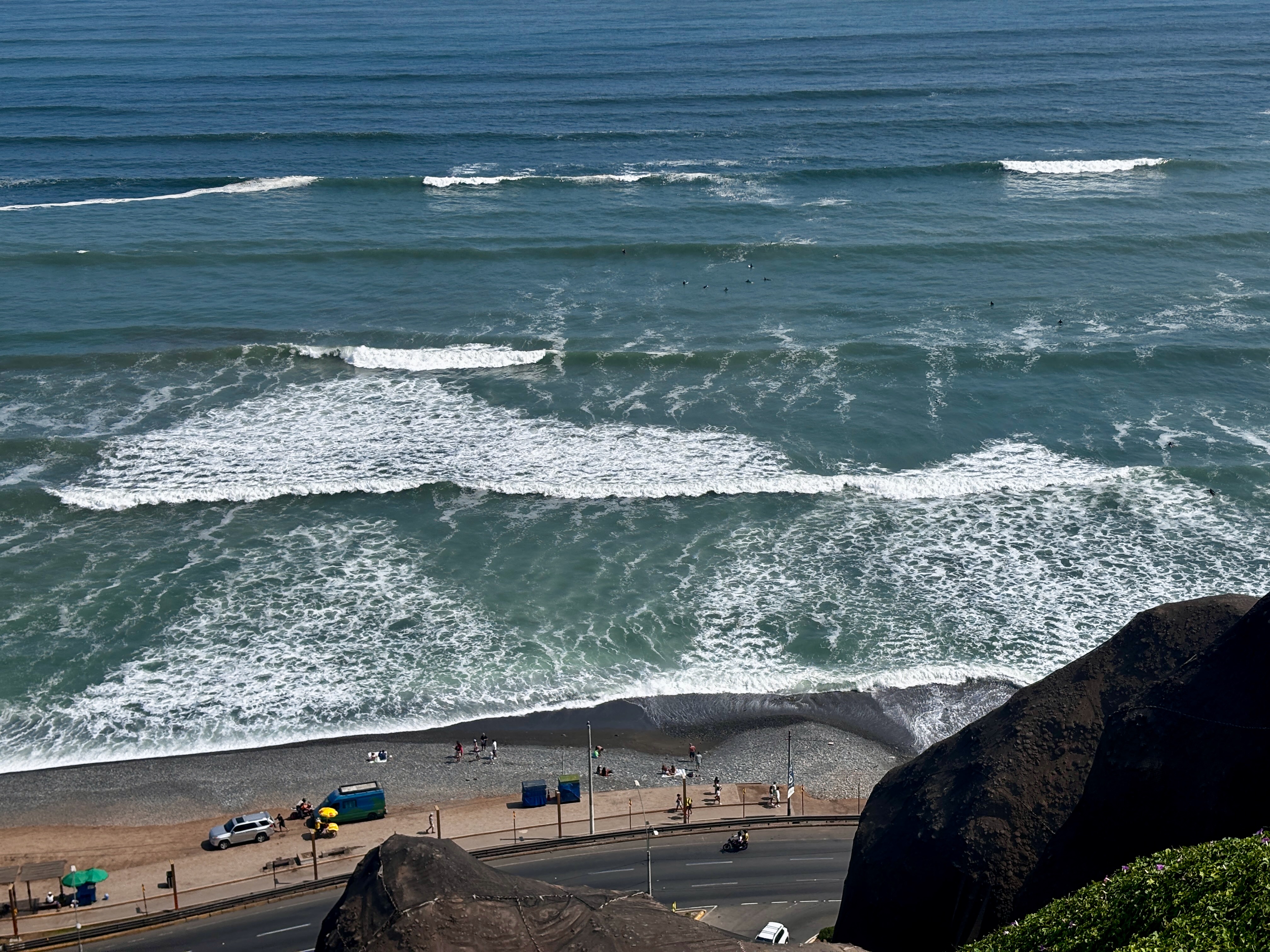 D’abord Miraflores, quartier-hauteur tendu entre les tours lisses et l’océan muet, qui se déploie en lignes nettes, promenades suspendues, pelouses taillées, luxe caché sous les barbelés – derrière les façades sans rides, quelque chose d’inavoué dans la façon de tenir le monde à distance.