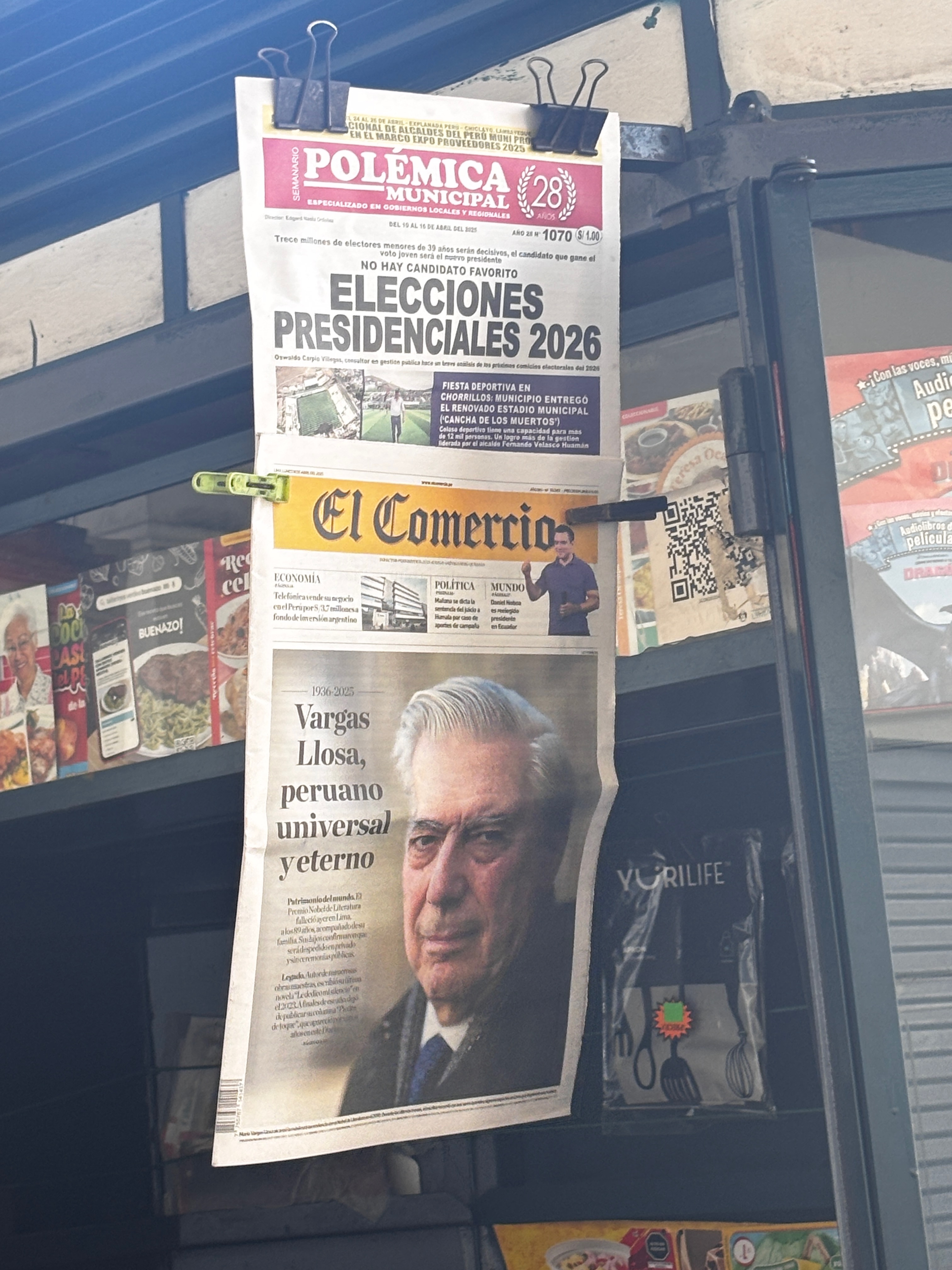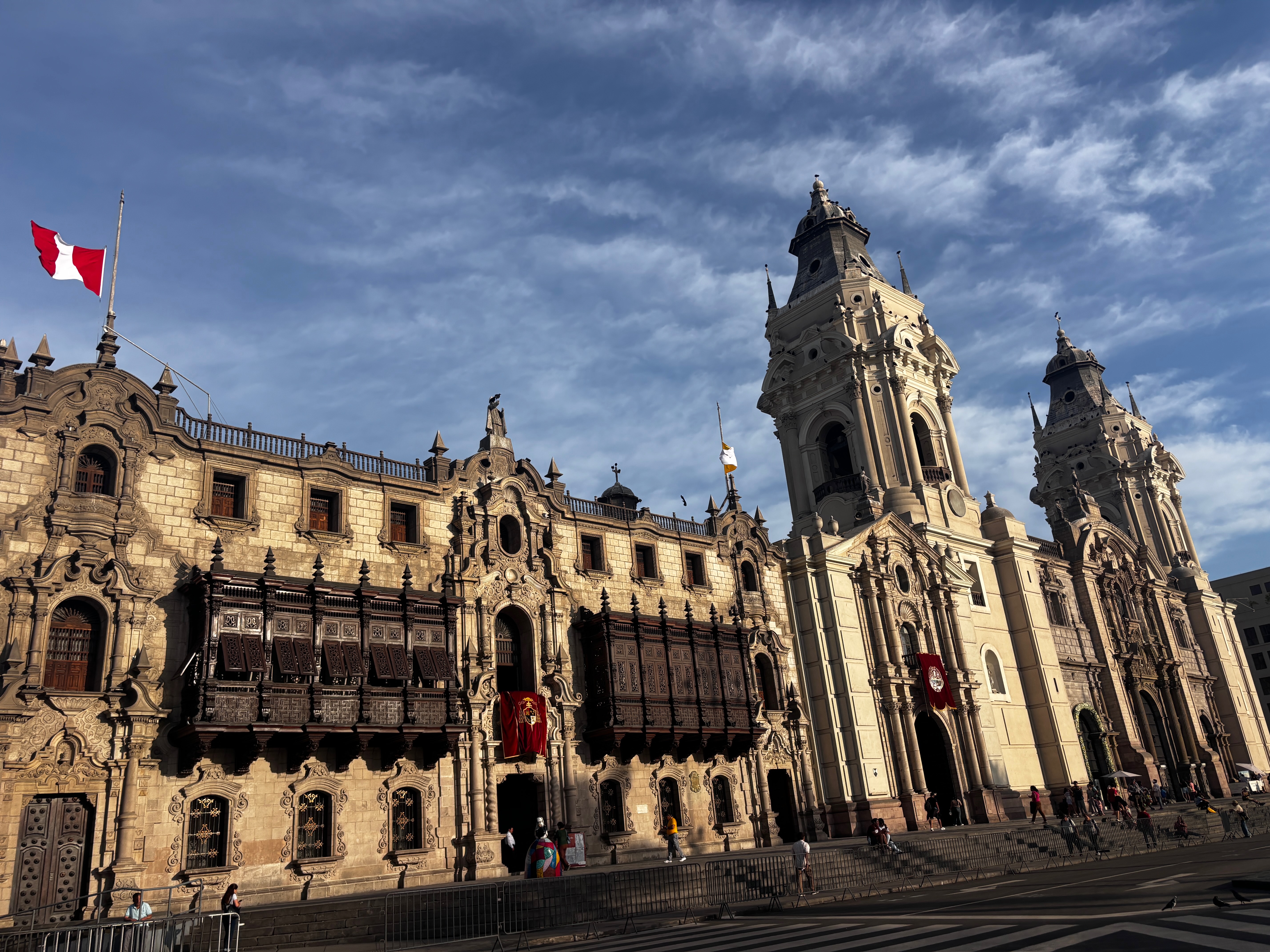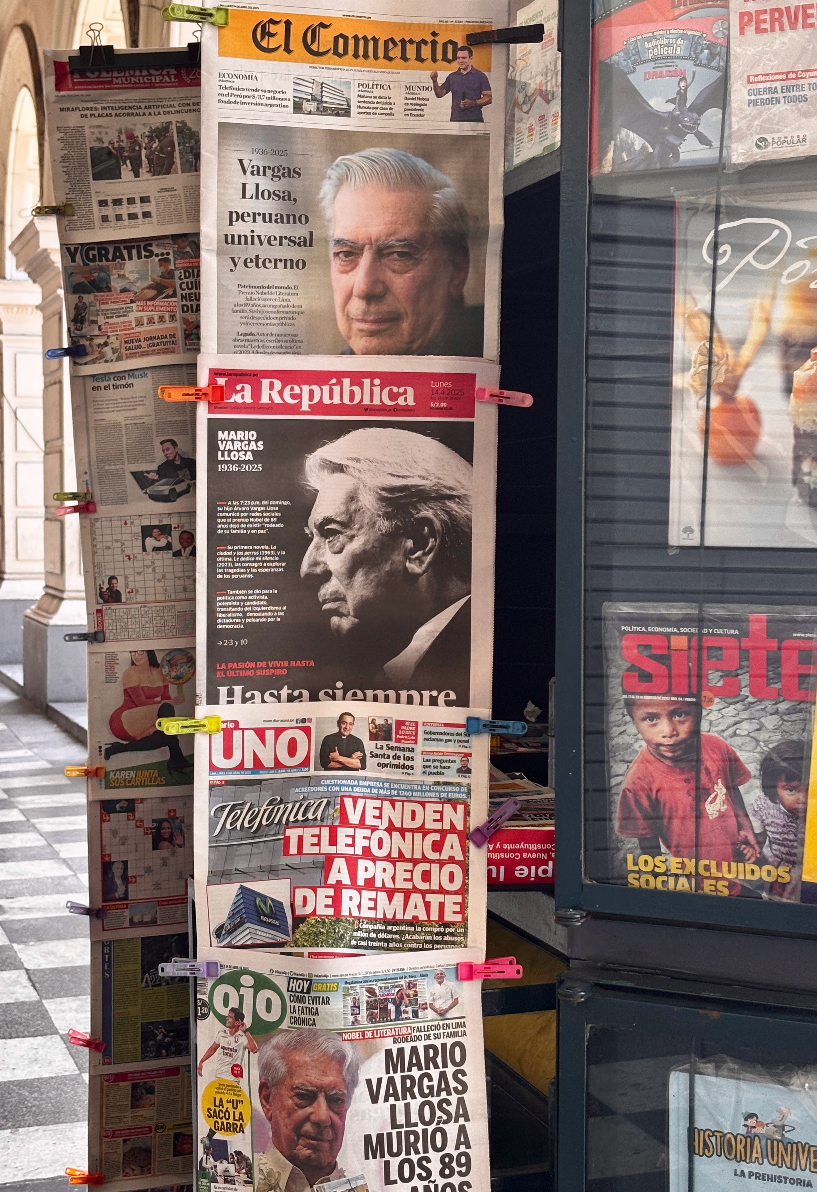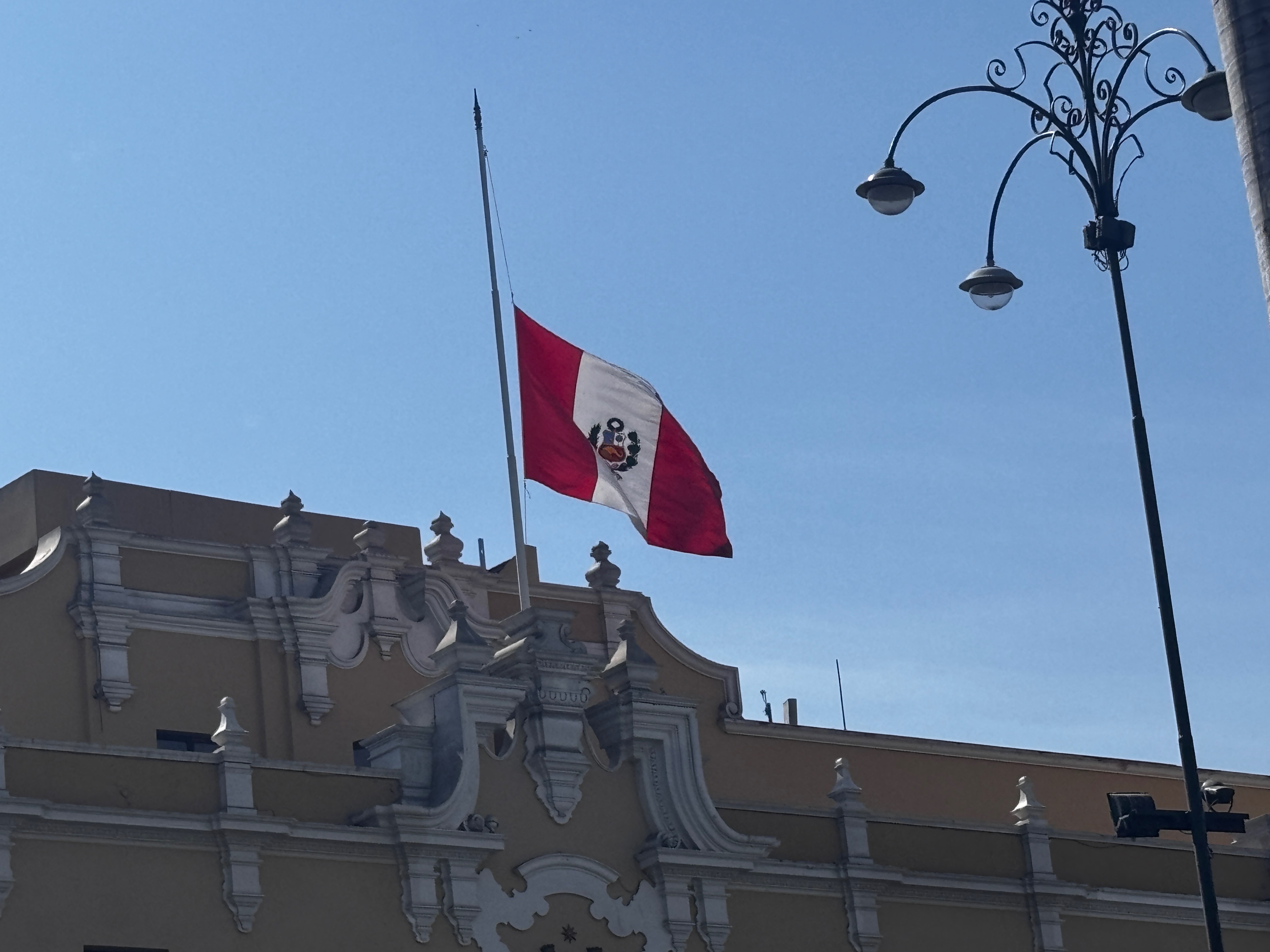 Plaza Mayor, les drapeaux en berne. Le Pérou a perdu hier Vargas Llosa, écrivain double, immense par l’œuvre et retors dans ses choix — écrivant ces romans d’une main, et ses discours aux cris rances de l’autre. L’air suspendu à une contradiction qu’on ne résout pas. La conversation à la cathédrale continue, oui, mais a changé de langue — se fait désormais dans les ombres qui glissent sur les façades jaunes, les pas lents sur la pierre chaude, le regard des vautours noirs qui tournent au-dessus des toits — plus justes que les paroles en tombeaux. Dans cette place, le théâtre d’une république hésitante, et ses colonnes, l’écho d’un pays qui ne sait plus à quel récit se vouer : à la conquête ou à la blessure, au Christ ou au soleil disparu.