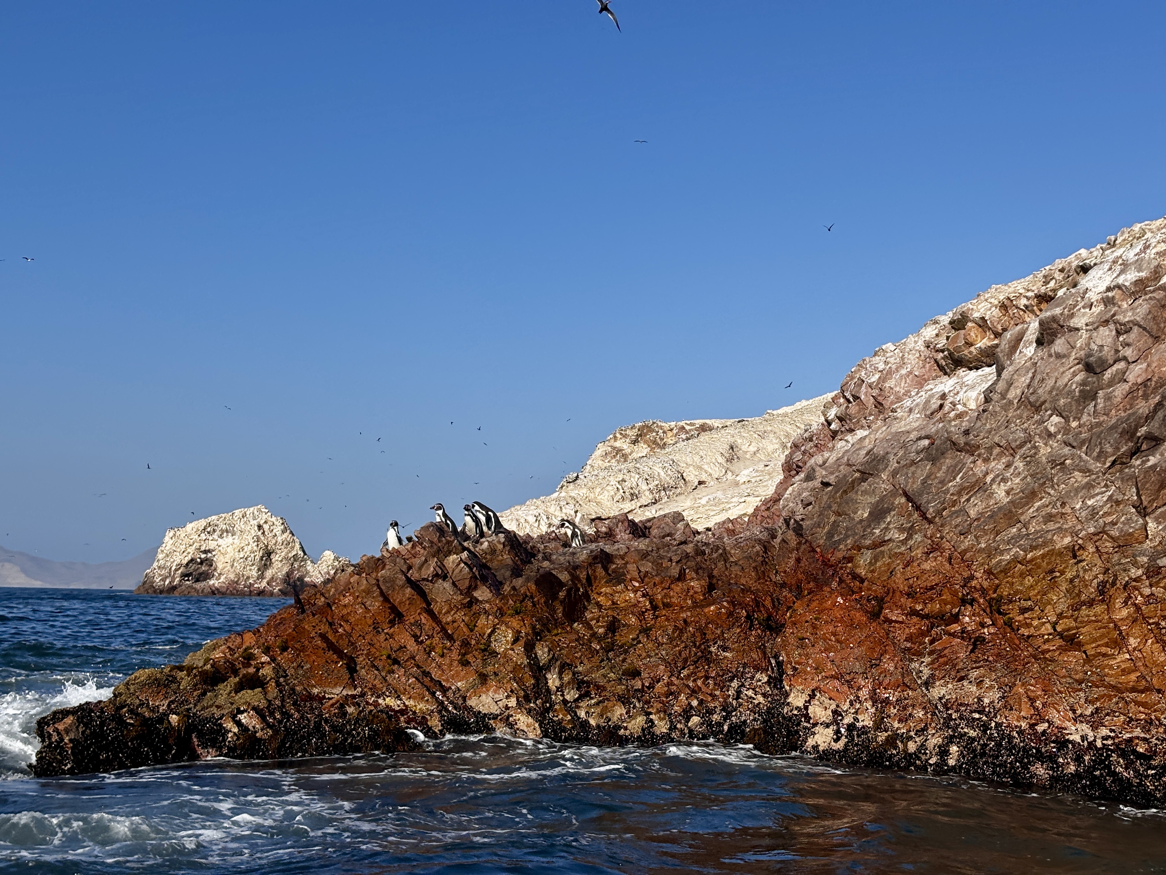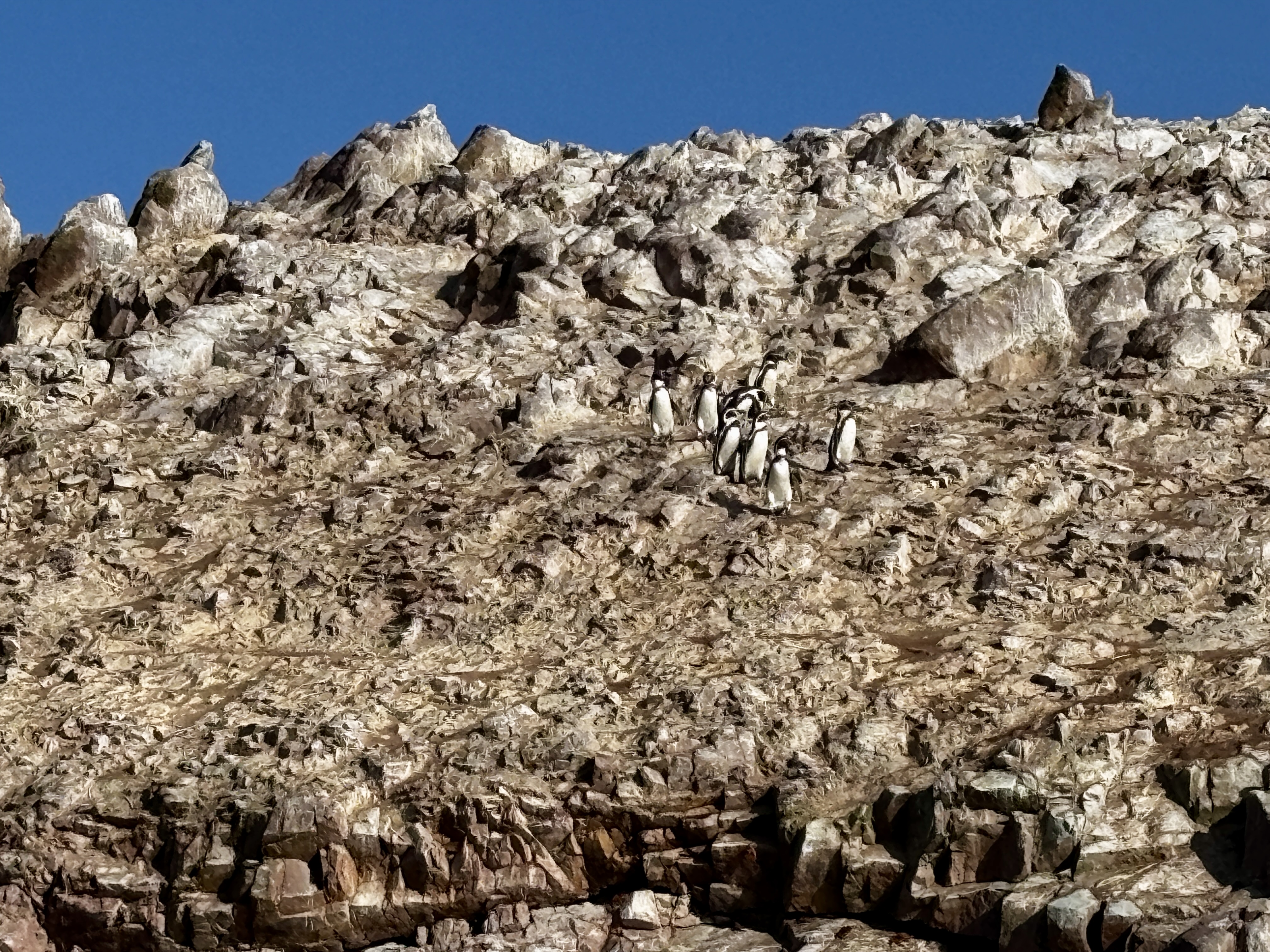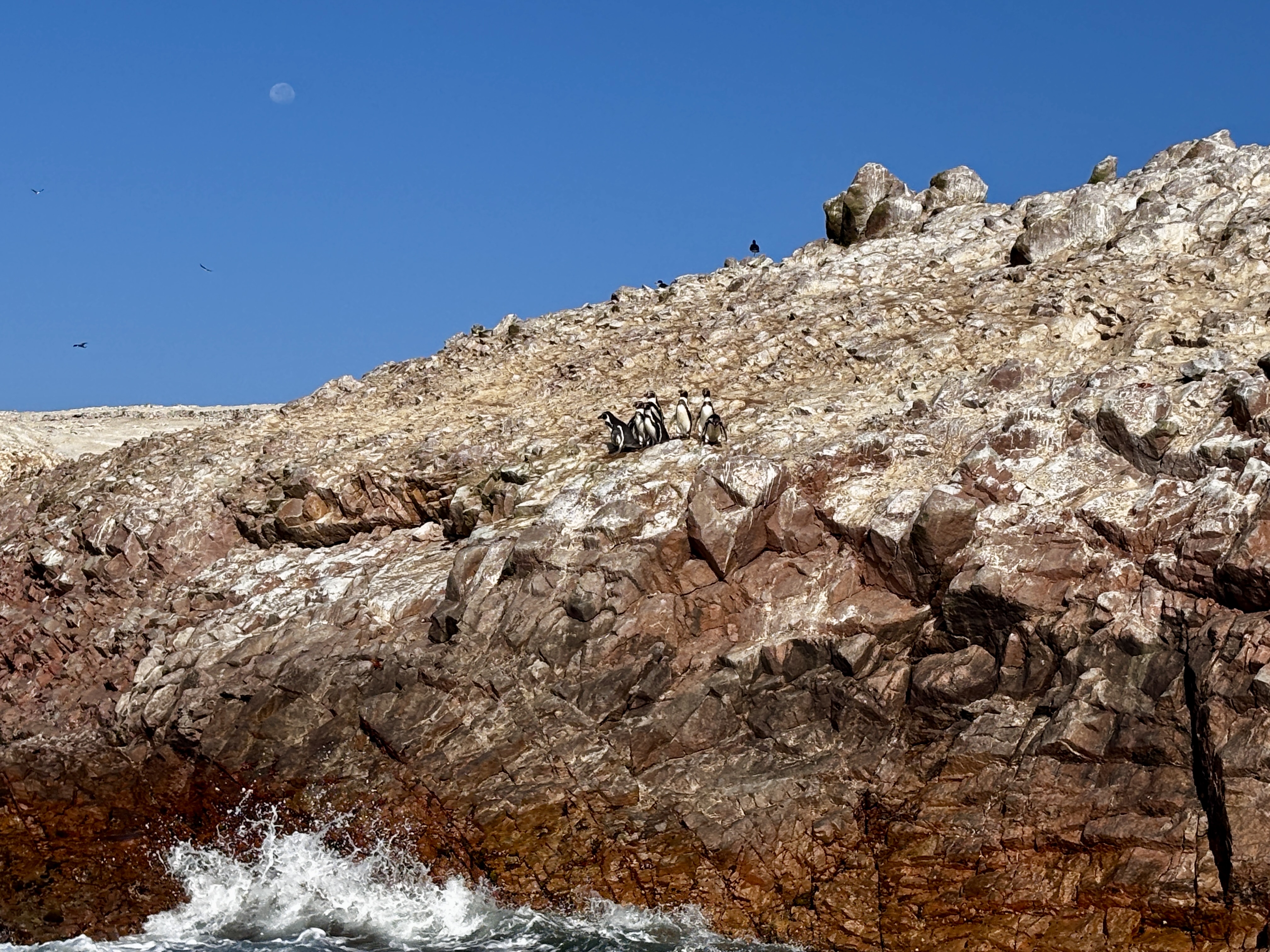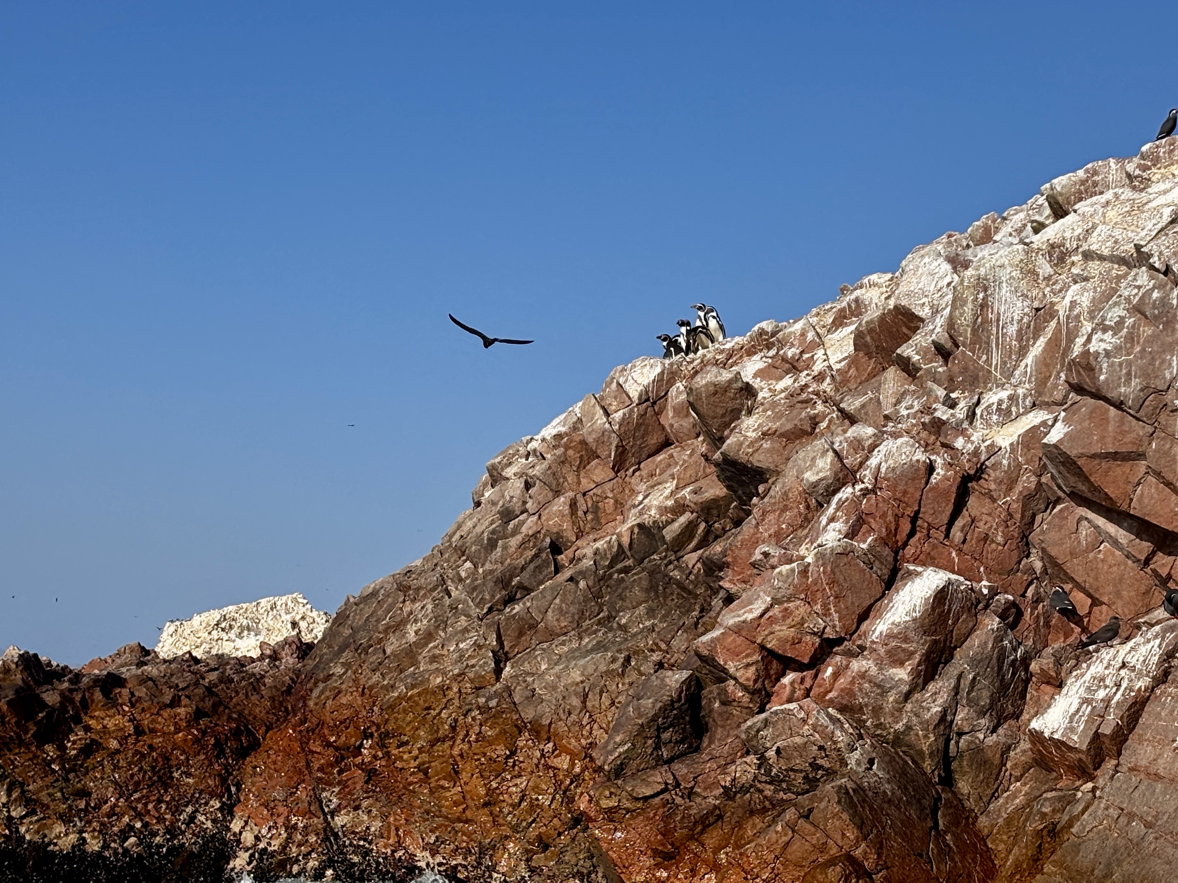 Plus loin, les îles Ballestas. Rochers noirs couverts d’oiseaux : fous de Bassan, pélicans, sternes, et manchots du Pérou tassés entre les lions de mer avachis. L’air lourd de sel et de guano, la mer blanche d’écume, et partout, le cri aigu des oiseaux. Monde brut à la frontière du vivant et de la pierre.