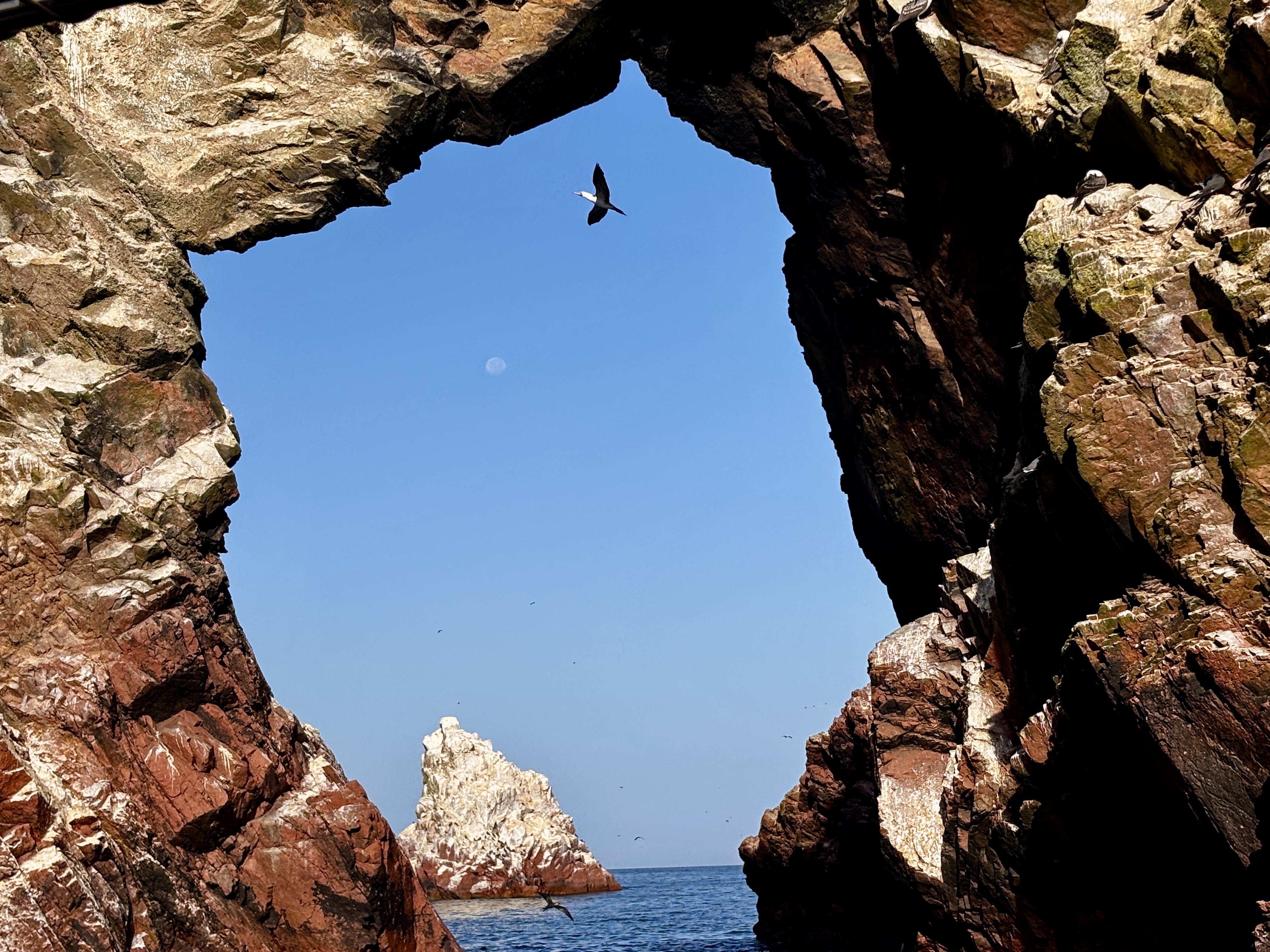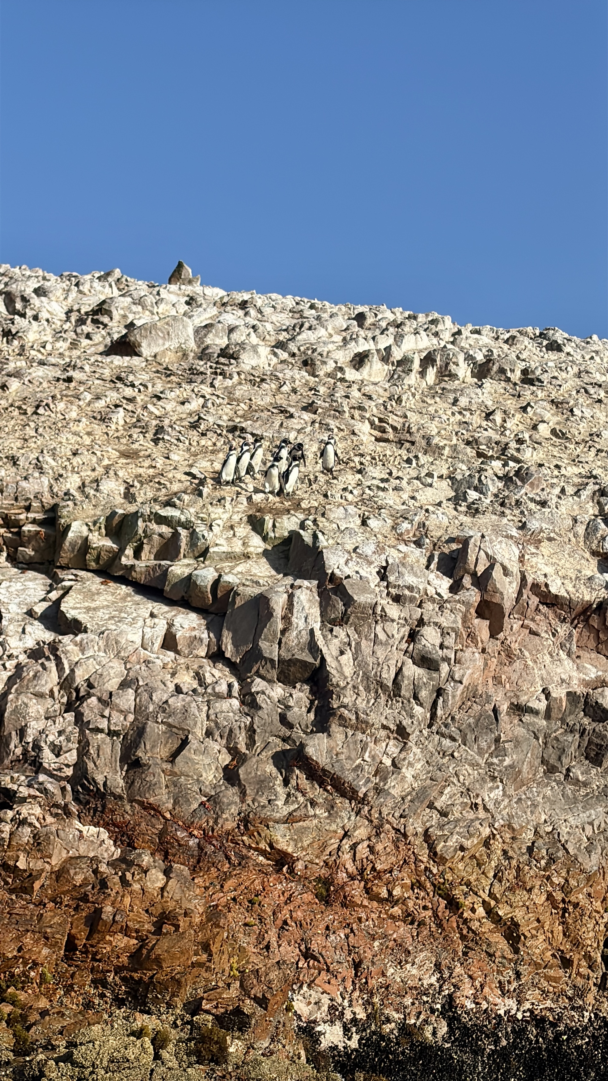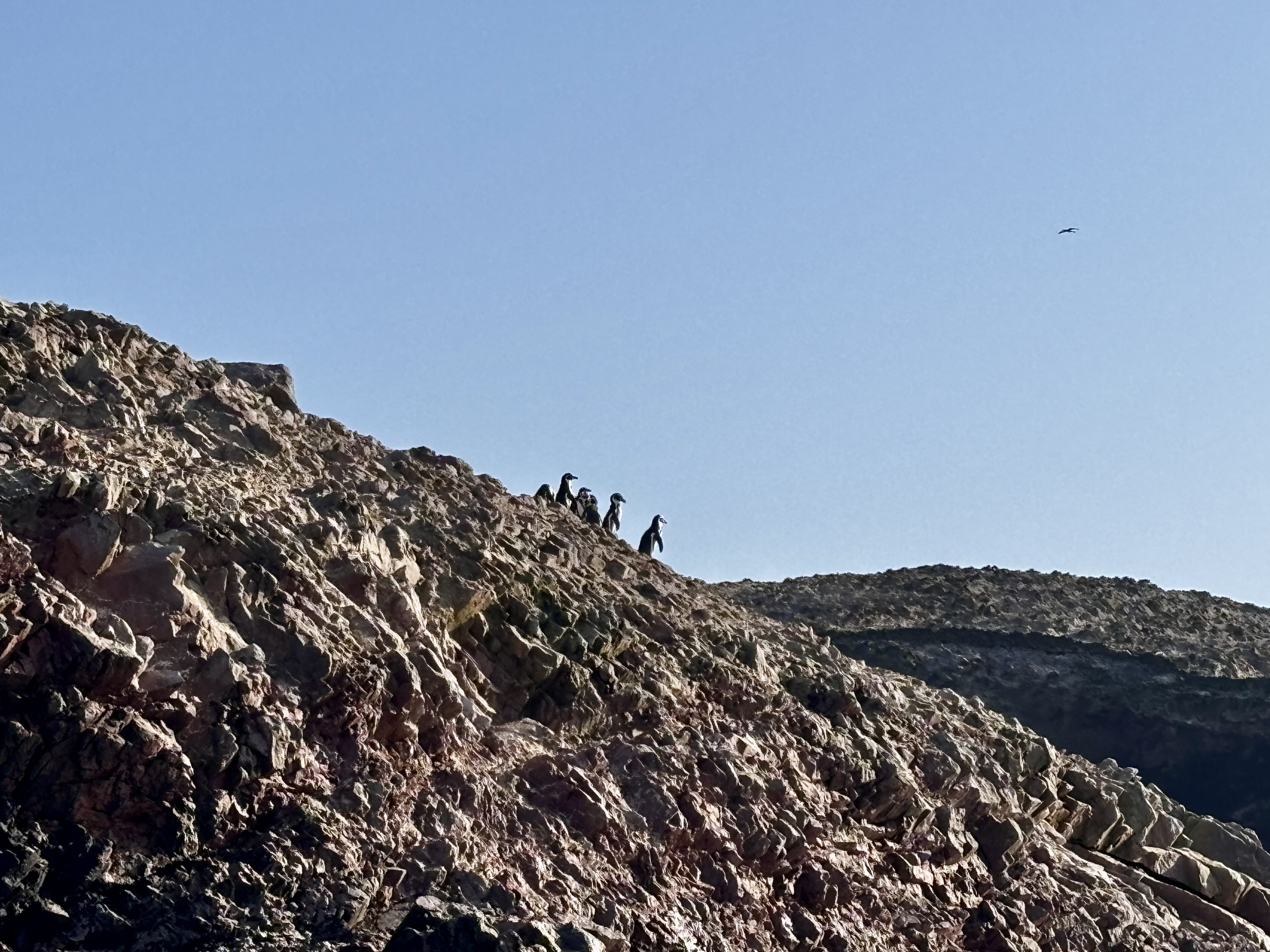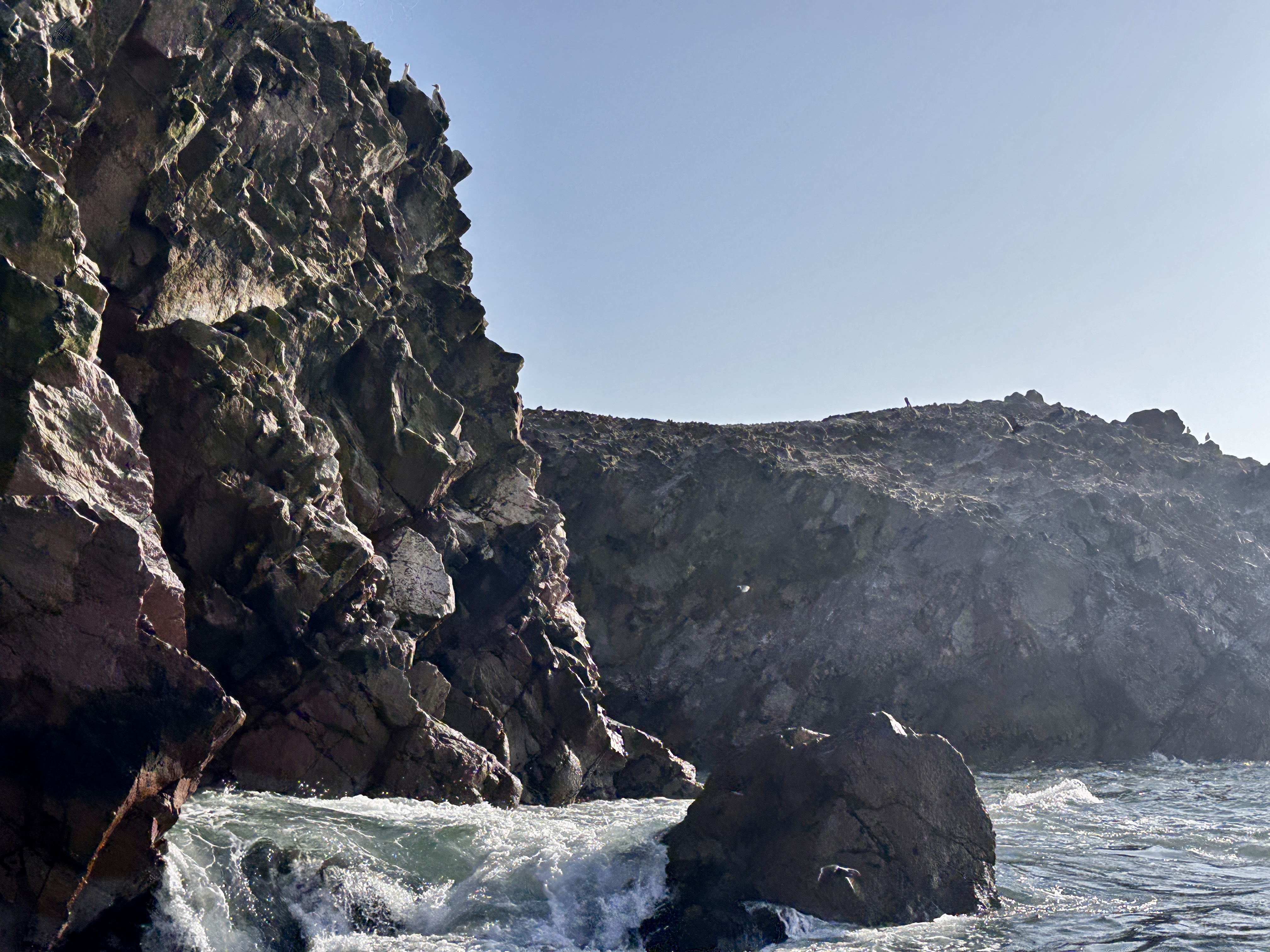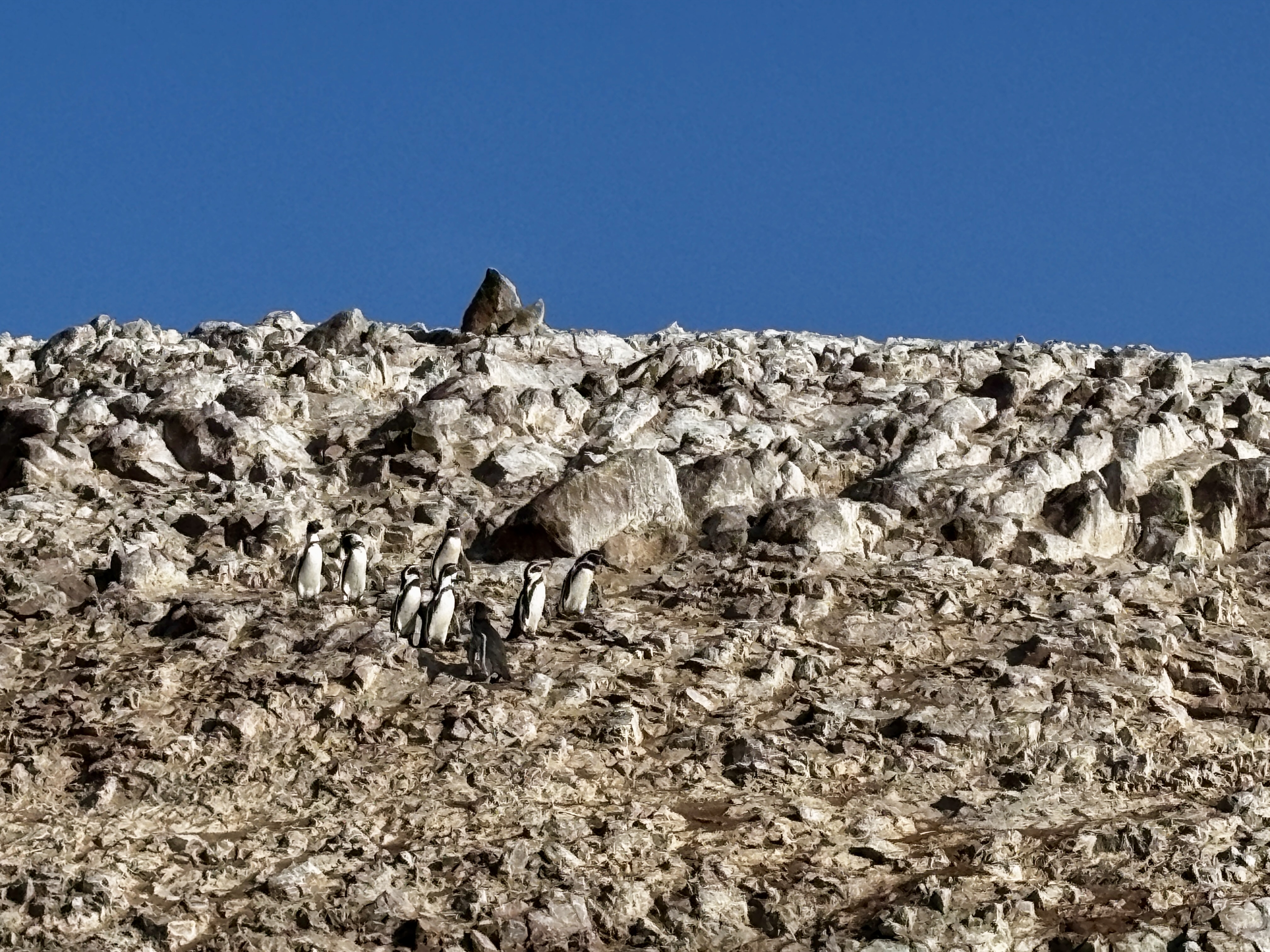 Plus loin, les îles Ballestas. Rochers noirs couverts d’oiseaux : fous de Bassan, pélicans, sternes, et manchots du Pérou tassés entre les lions de mer avachis. L’air lourd de sel et de guano, la mer blanche d’écume, et partout, le cri aigu des oiseaux. Monde brut à la frontière du vivant et de la pierre.