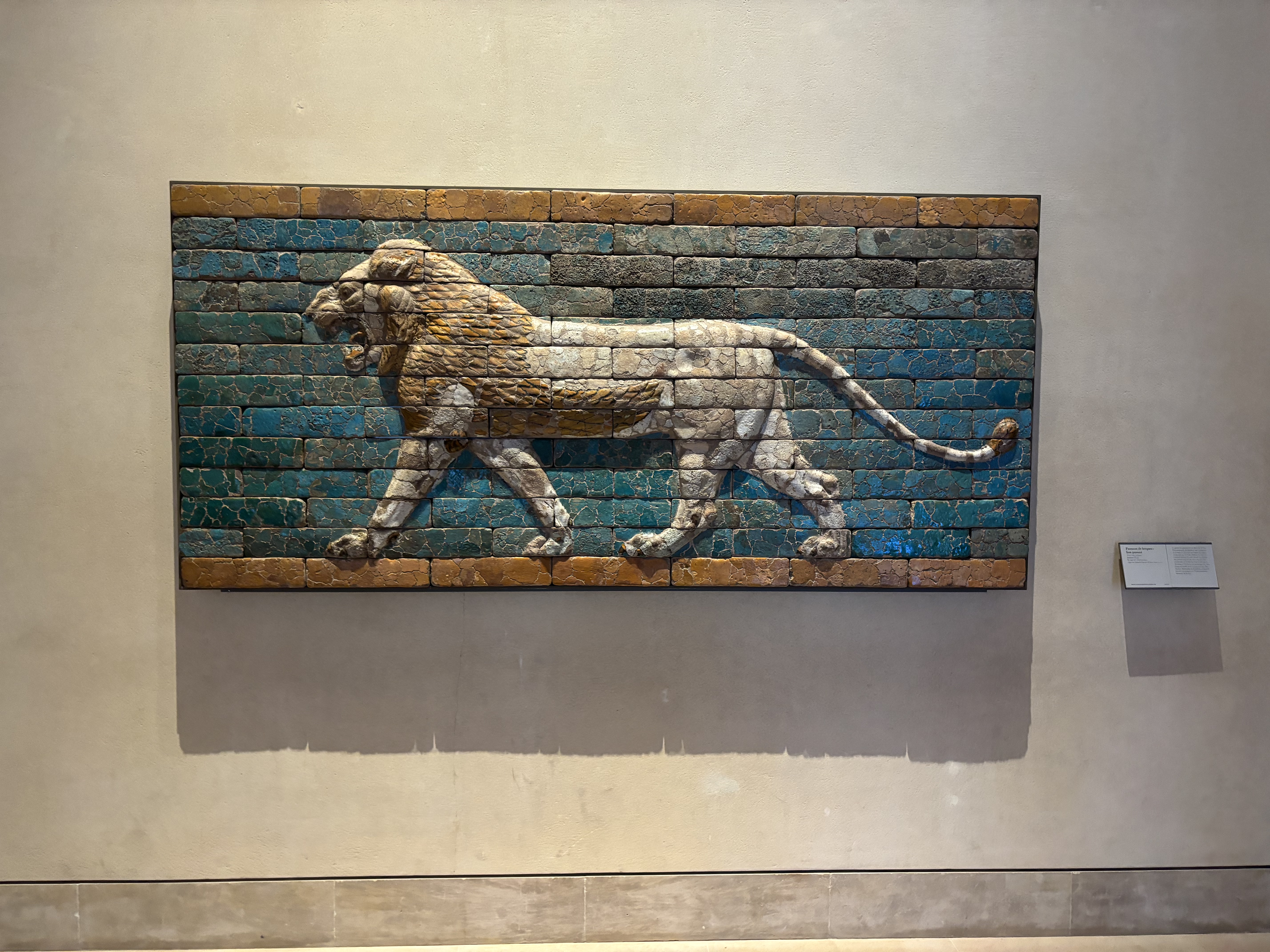 Alors ce n’est plus une œuvre exposée, ce cri figé, la gloire et la terreur du pouvoir, le peuple anéanti et rendu à nous dans l’éclat des émaux. Devant lui, être traversé de siècles : le vertige de toucher du regard la même couleur que ceux qui passaient là-bas, dans la chaleur d’un jour ancien. Tout ce que j’ai écrit sur Babylone s’effondre et recommence : ici, Babylone elle-même écrit, encore, par la bouche muette de ce lion rugsissant son silence, le leur et le mien. Et je m’éloigne.