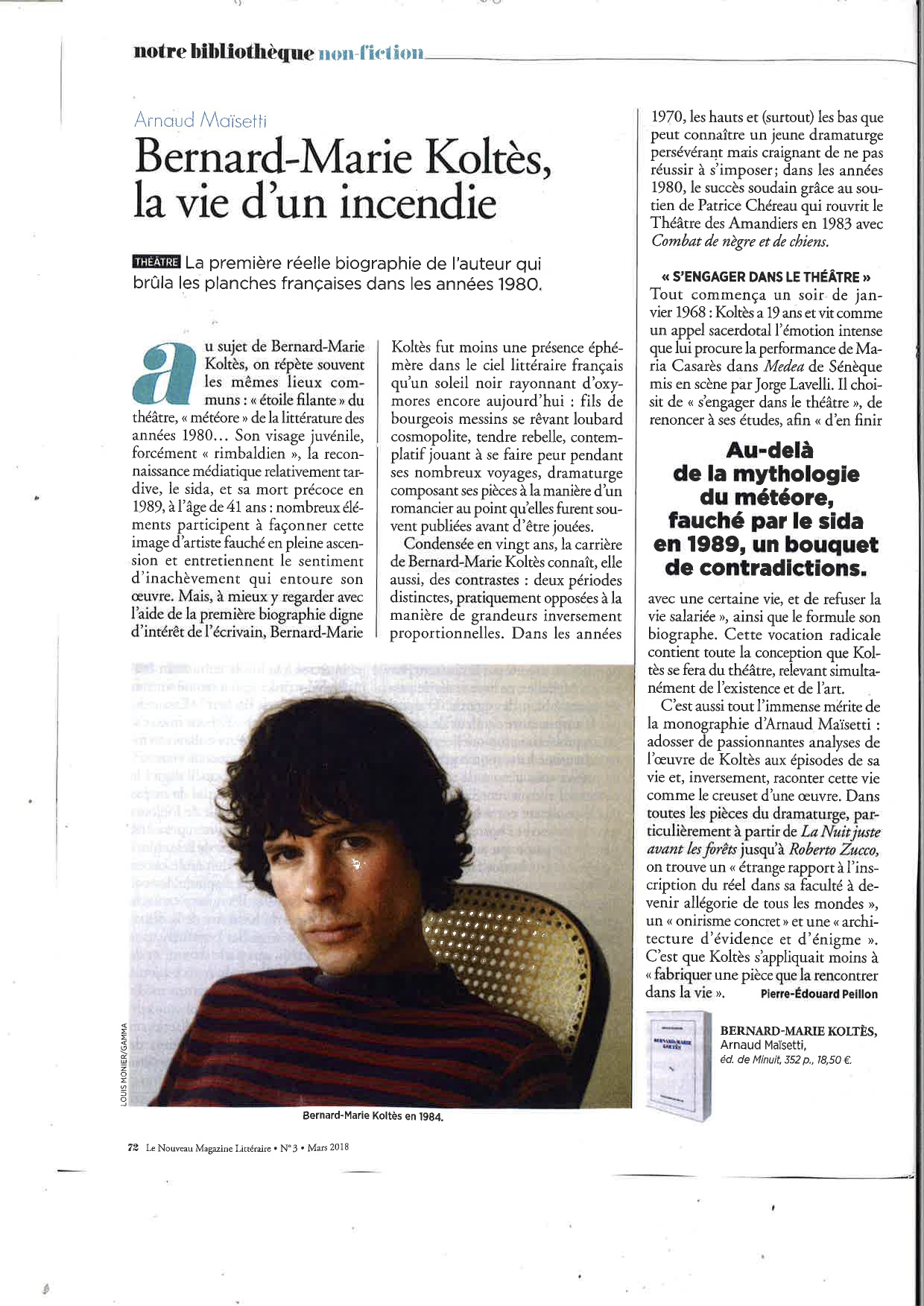 Accueil > BERNARD-MARIE KOLTÈS | « RACONTER BIEN » > KOLTÈS | UNE BIOGRAPHIE > Koltès, une biographie | Recensions > Koltès, la bio | dans Le Nouveau Magazine Littéraire