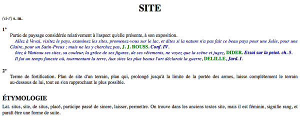 Définition — Un site internet — je ne sais d’où vient le mot. De quand il date. Ce mot de site est à la fois finalement assez neutre, et profondément riche. Neutre, le site n’est que le paysage considéré du point de vue de l’aspect, du pittoresque, de l’esthétique — c’est-à-dire considéré de l’extérieur, d’un point de vue qui l’isole et le qualifie. Mais Littré ajoute