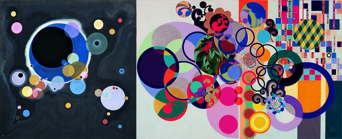 Reproduction d’une peinture de Kandinsky (Quelques cercles, 1926) - image surgie lors d’un détour sur le web - je fus, semble-t-il, passée par là...