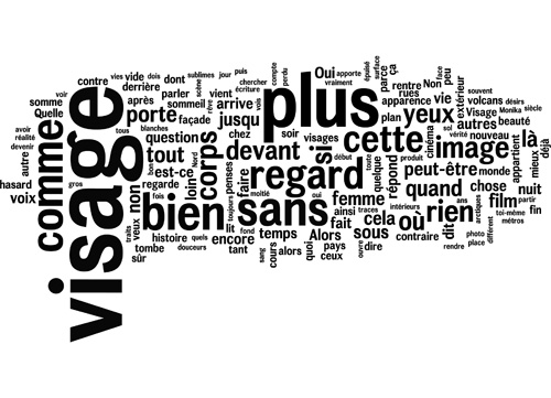 Cette liste (qui concerne le mois d’avril, pour tout le site) définirait peut-être, oui, une face possible de ce qui s’écrit ici — au même titre que l’image par réccurrence que génère wordle (taille et place des mots en fonction de leur fréquence), ou que la succession de mots-clés que j’attribue à chaque article et qui permet une lecture transversale de ces pages, par le milieu.