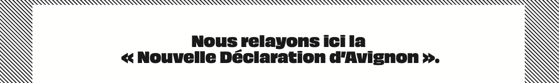 « Nous, gens du spectacle, réunis à Avignon parce qu’un tel festival est aussi celui de la parole publique et des exigences civiques, ne nous résignant en rien à la désertion des démocraties devant le pire, donnons lecture de la Déclaration d’Avignon. »