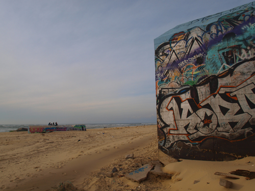 Ceux qui ne sont pas recouverts d’écriture le sont par le sable qui avance sur eux, année et après année, et j’imagine dans quelques siècles ces bunkers qui dépasseraient à peine au milieu de la mer, les jours de grandes marées. Et peut-être un jour, qui sait, arriveront-ils sur l’autre continent.