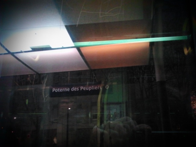 L’image, c’est à cause du nom — des nouvelles stations de tram ont poussé partout et c’est comme si on avait été à court d’idées pour les nommer. Les grands hommes manquent sans doute, et les lieux des batailles, je me suis dit. La Poterne des peupliers. Devant un nom comme Poterne des peupliers, on rêve, on imagine des peupliers à la potence, des peuples à lanterne qui passent sous les portes minuscules de l’Histoire. On ne pense pas longtemps, on est déjà loin : le tram.