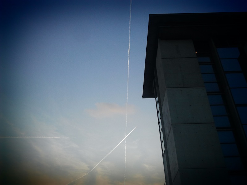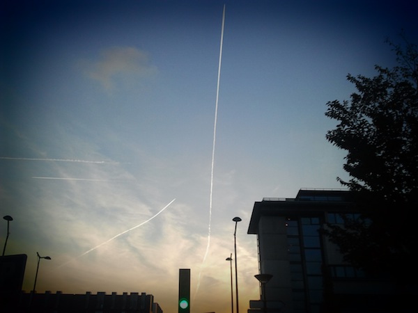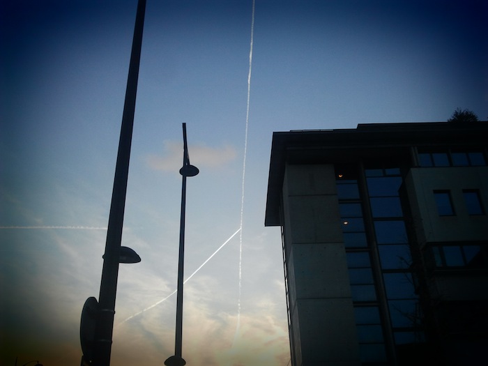 Le soir en rentrant, ces lignes d’avion qui se croisent, qui se cherchent, qui se manquent. Comme on réapprend la route, et l’autre.