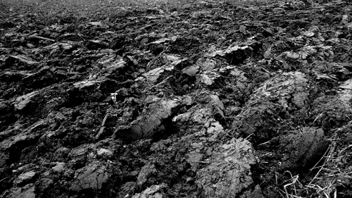 Celui dont l’âme pèse de cailloux de terres grasses de glaise à mottes lourdes et noires et lisses tranchées mais net par les charrues et renversées cul dessus tête et sur lesquelles on marche à se casser les chevilles mais même pas même pas et tout au bout du champ s’en retourner et reprendre sillon et puis encore et puis encore jusqu’aux draps gris du soir gris crépuscule qui nous mord à l’épaule et nous fait frissonner de peur de fatigue rentrer alors avec les bêtes l’araire est resté couché sur la terre on le lèvera demain pour s’y remettre et puis encore et puis encore sans trop savoir ce qu’on peut croire attendre de nos vies vides de nos semailles à tête de pioche sans pouvoir savoir qu’après viendront tracteurs et puis plus gros toujours plus gros mais nous déjà bien morts bien recroquevillés dessous nos terres nos bans nos espaces incertains nos chemins dénoués mais nous déjà rongés fondus presque oubliés dans nos cimetières fermant les routes les horizons presque oubliés de ceux d’après ceux nés juste après nous et puis après et puis après jusqu’à ce que naisse quand même celui dont l’âme pèse.