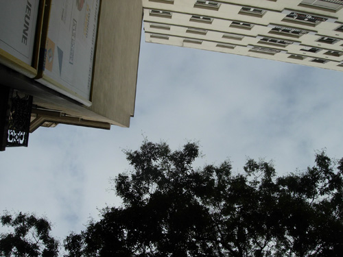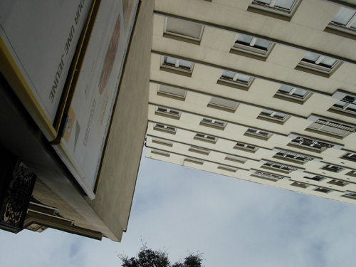 Murs à droite, à gauche, comment sortir de la ville ? — Échappée de lumière par l’anfractuosité du ciel, mais couleur cassée des murs, on n’en sort pas ; à s’en briser le cou, pourtant, se tordre et chercher. Fenêtres alignées dans le même alignement des vies qu’on pourrait deviner rien qu’à voir les draps étendus et le linge séché, la même parabole pour les mêmes images qui vibrent à l’intérieur, mime l’illusion rêvée de nos réalités. Sortir, mais par où ?