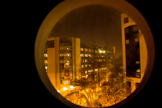 — la première est celle d’un grand bâtiment rectangulaire et mince, de 9 étages, posé au-dessus des voies rapides, et fait d’alvéoles toutes identiques, sauf que symétriques selon les numéros pair et impair, avec ascenseur central et routeur wifi positionné près de l’ascenseur, ce qui autorise une meilleure connexion si on est près du centre du couloir et annule toute connexion si on est à ses extrémités