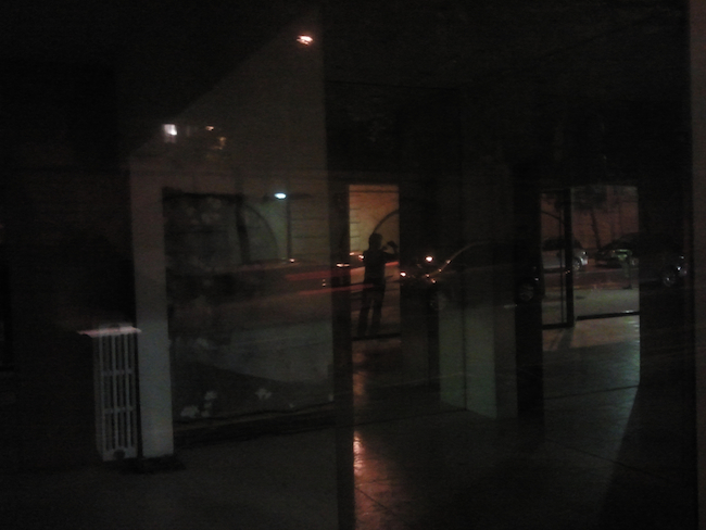 Métro Corvisard, je crois — cet étrange agencement de vitres, je prends l’image à bout de bras, me retrouve sur le reflet opposé : c’est une juste image. On ne voit pas mon visage, on ne voit rien que l’agencement des vitres, et au milieu mon corps qui vient intercepter le reflet : est-ce le mien. Oui, image juste de ma vie, aux visages complètement défaits, cheveux emmêlés lentement autour du désir d’en poursuivre les contours ; derrière moi, une voiture — où va-t-elle. Moi, direction opposée, je rentre, je ne sais pas encore où, ni quand.