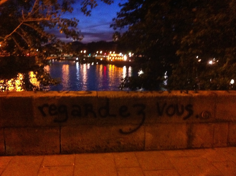Dans la douceur, le silence soudain de Notre-Dame et les ombres aux ogives, l’ombre suivie pour ne pas se perdre, l’ombre des ponts, l’ombre de tout ce qui se répand en signe de tout ce qui s’éloigne : accepter de prendre part à la nuit, accepter d’être mordue par le soir ; et que l’aube vienne, maintenant, qu’elle vienne plus lentement puisque la nuit regagne du terrain — confiée dans la douceur, la morsure est ce don qui rend la chair vive, plus vive encore d’un an.