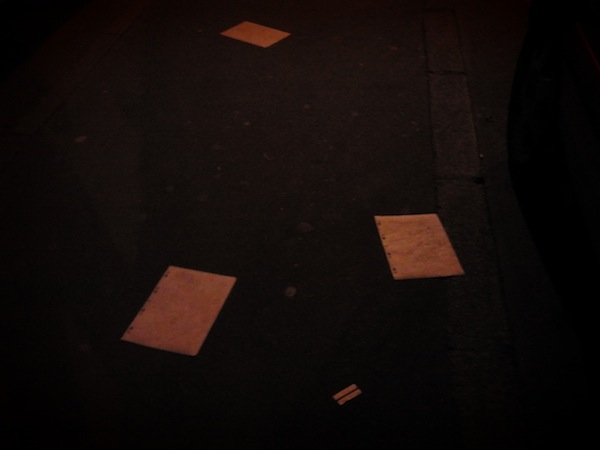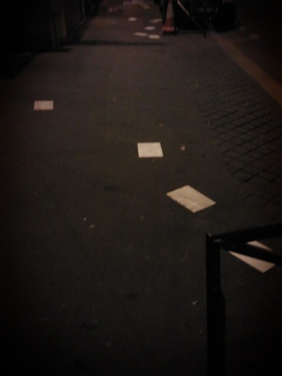 — ce sont les feuilles, madame, parce que je suis sorti ce soir, il fait tard, dans le froid, la fatigue plus grande que moi, que je voulais trouver quelque chose qui m’aurait dit : c’est par là que la vie passe en toi, et je n’ai rien trouvé, mais juste à dix mètres de la porte, car c’est là mon immeuble madame, j’ai trouvé ces feuilles, j’ai reconnu l’écriture et j’ai regardé longuement les schémas, j’ai pris les photos pour qu’un soir je puisse écrire que je n’ai pas renoncé à voir les chemins, pour qu’en les regardant je me dise non, je n’ai pas inventé ce chemin de feuilles répandues dans le noir pour que je puisse le voir, et le suivre, et m’envelopper de lui, et qu’un autre soir comme celui-là, je puisse le prendre aussi ; mais je vais remonter, ce soir, le travail m’attend, il n’attendra pas plus longtemps, et je vous souhaite une belle nuit, madame,