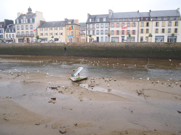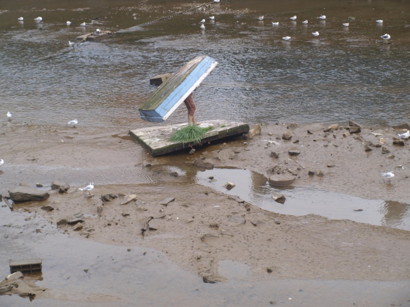 Quelle est l’expression juste ? J’avais en tête : sortir la tête de l’eau, mais je n’en suis plus sûr. Est-ce que ce n’est pas aussi (ou à la place) : avoir les pieds hors de l’eau. Et une barque portée à bout de bras, de crâne ; pour éviter quel naufrage. La statue qu’on a déposée au fond de ce fleuve (ce n’est même pas un fleuve) a bien une signification : laquelle. On la voit à marée basse, uniquement à marée basse. À marée haute, on voit le reste, sans doute.