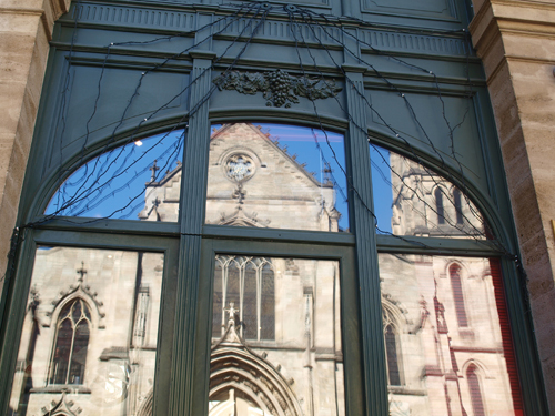 Quand je traverse, elle me fait face, et s’immobilise à un mètre de moi : elle tend la main quand je pose la mienne sur elle, et le reflet qui se dessine, flou, creusé, sans bord et sans relief, n’est qu’une projection intérieure de plus ; au mieux, perdue sur ces vitres ; au pire fichée là depuis toujours pour me dévisager : une image de ma fin, peut-être.