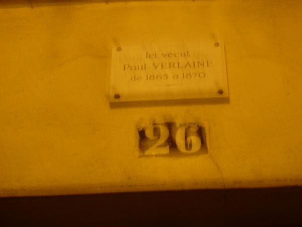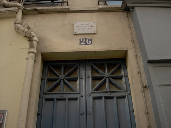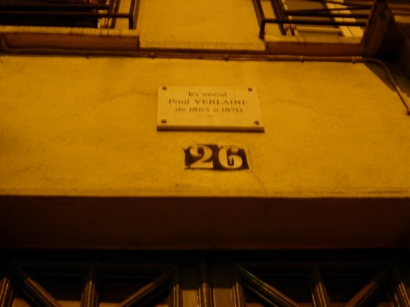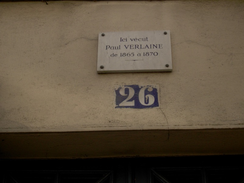 Les Batignolles donc — depuis que je traverse le quartier, je cherche les lieux : à chaque coin de rue, sur les façades grises, ces quelques mots sur des panneaux : ici vécut Paul Verlaine (suit parfois des dates, incohérentes). Comme placés au hasard, ces panneaux qui écrivent sur les murs une biographie vide, lacunaire, spatiale. Je m’y perds. Il aurait donc habité chacun de ces immeubles ? Les plaques ne suffisent pas à le dire.