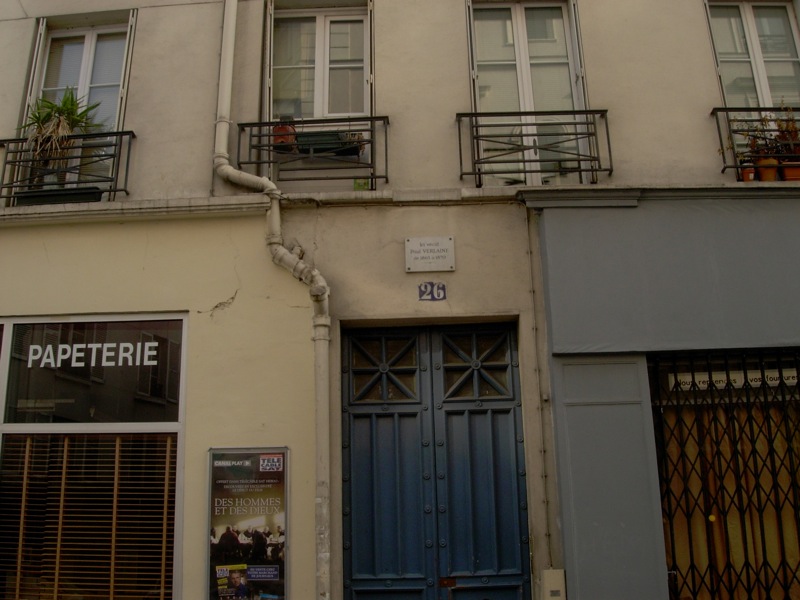 En 1851, Paul Verlaine a 7 ans — le père, capitaine dans l’armée (lui aussi), renonce à la vie militaire et quitte la garnison de Metz pour Paris : la famille s’installe au 2, puis au 10 rue Nollet, alors rue Saint-Louis. Paul, pratiquement élevé par sa cousine adoptée par la famille Verlaine, et littéralement adoré par sa mère, est d’abord interne à l’institut Landry, puis élève au lycée Bonaparte, aujourd’hui Condorcet. Les pierres changent ainsi de nom, ils dépendent de l’histoire qu’on fabrique dans le passé de ces pays qu’on projette sur nos présents.