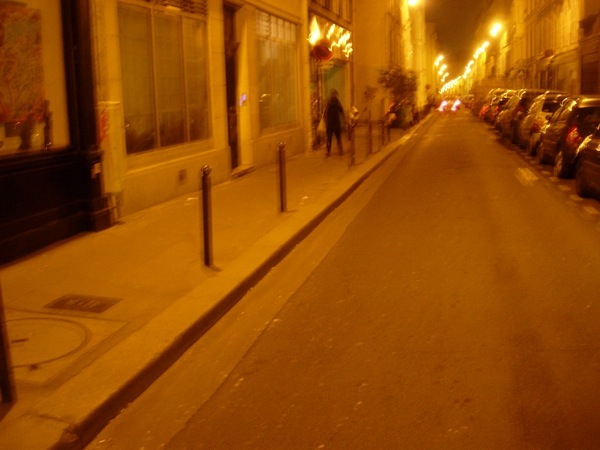 On partage ces rues — qui changent bizarrement entre le soir tombant et la nuit noire après minuit —, alors quand on rentre chez soi, chacun dans l’ivresse des conversations et de l’alcool, on jette sur ces façades des vers qui ricochent, reviennent parfois plus vifs encore, à soi-même parfois illisibles, évidents ; si on en avait l’audace, on pourrait les tracer avec les doigts pour ne pas avoir à les oublier.