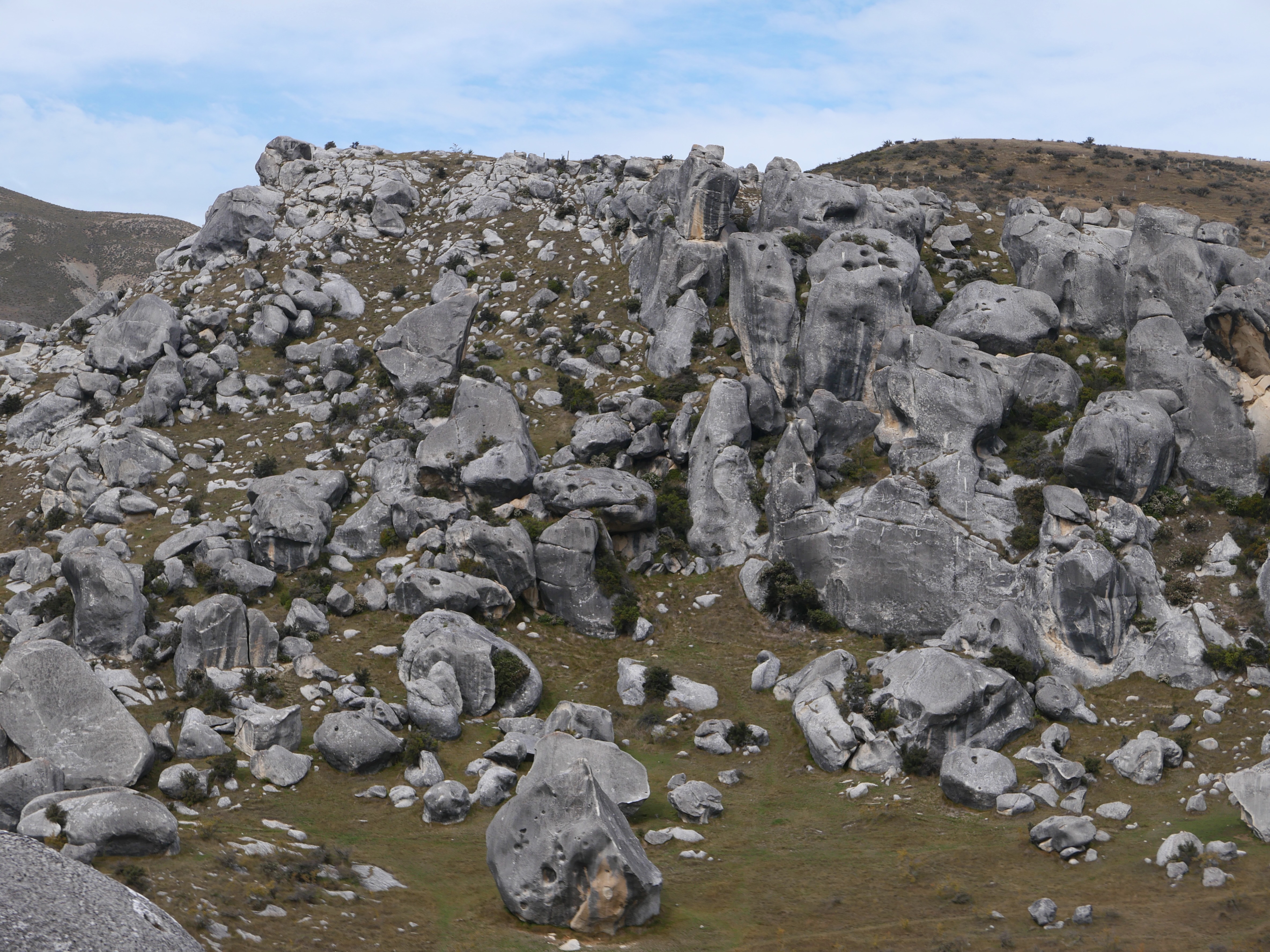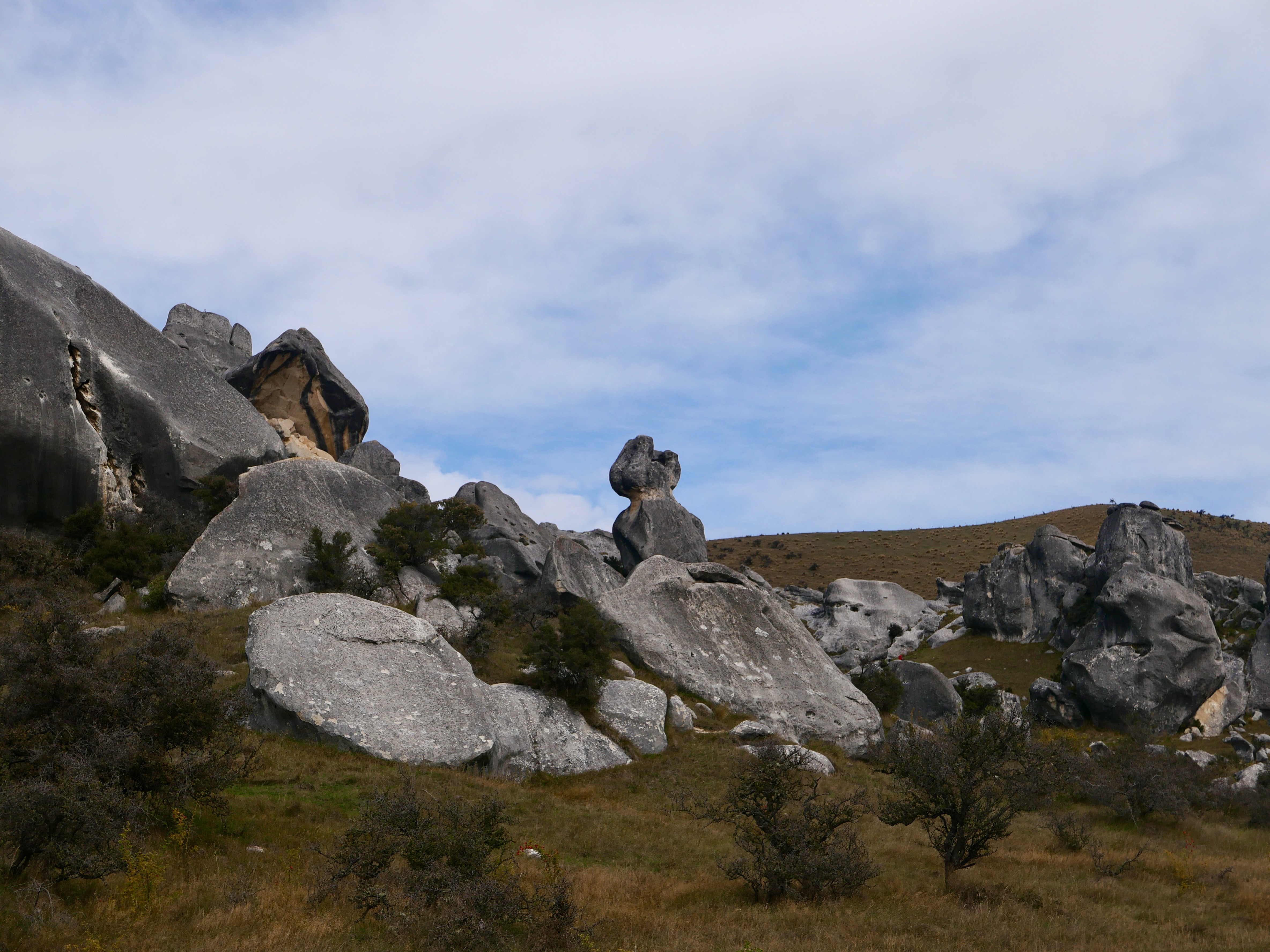 Nous sommes au cœur de l’île du Sud, dans les Alpes néo-zélandaises, entre Christchurch et Arthur’s Pass. Ici, à plus de 700 mètres d’altitude, la pierre est du calcaire, sculpté par le vent, la glace, les pluies acides d’un autre âge. Ces blocs géants sont nés sous la mer, il y a 30 millions d’années, soulevés lentement par les mouvements de la croûte terrestre, puis burinés par le temps. Les anciens Maoris connaissaient cette vallée depuis longtemps : les Ngāi Tahu y venaient en pèlerinage, pour chercher le pounamu dans les rivières de l’ouest, mais aussi pour écouter, pour honorer. Kura Tāwhiti n’était pas seulement un passage : c’était un seuil, un lieu de savoirs et de récits, chargé de tapu. Puis vinrent les colons, les routes, les clôtures. Un nom anglais s’est posé là — Castle Hill, pour les ressemblances que les Européens voyaient entre ces blocs et les ruines de leurs châteaux écroulés. Mais les pierres, elles, n’ont pas changé qui veillent. Et quelque part dans l’ombre qu’elles projettent, l’ancien nom continue de battre.