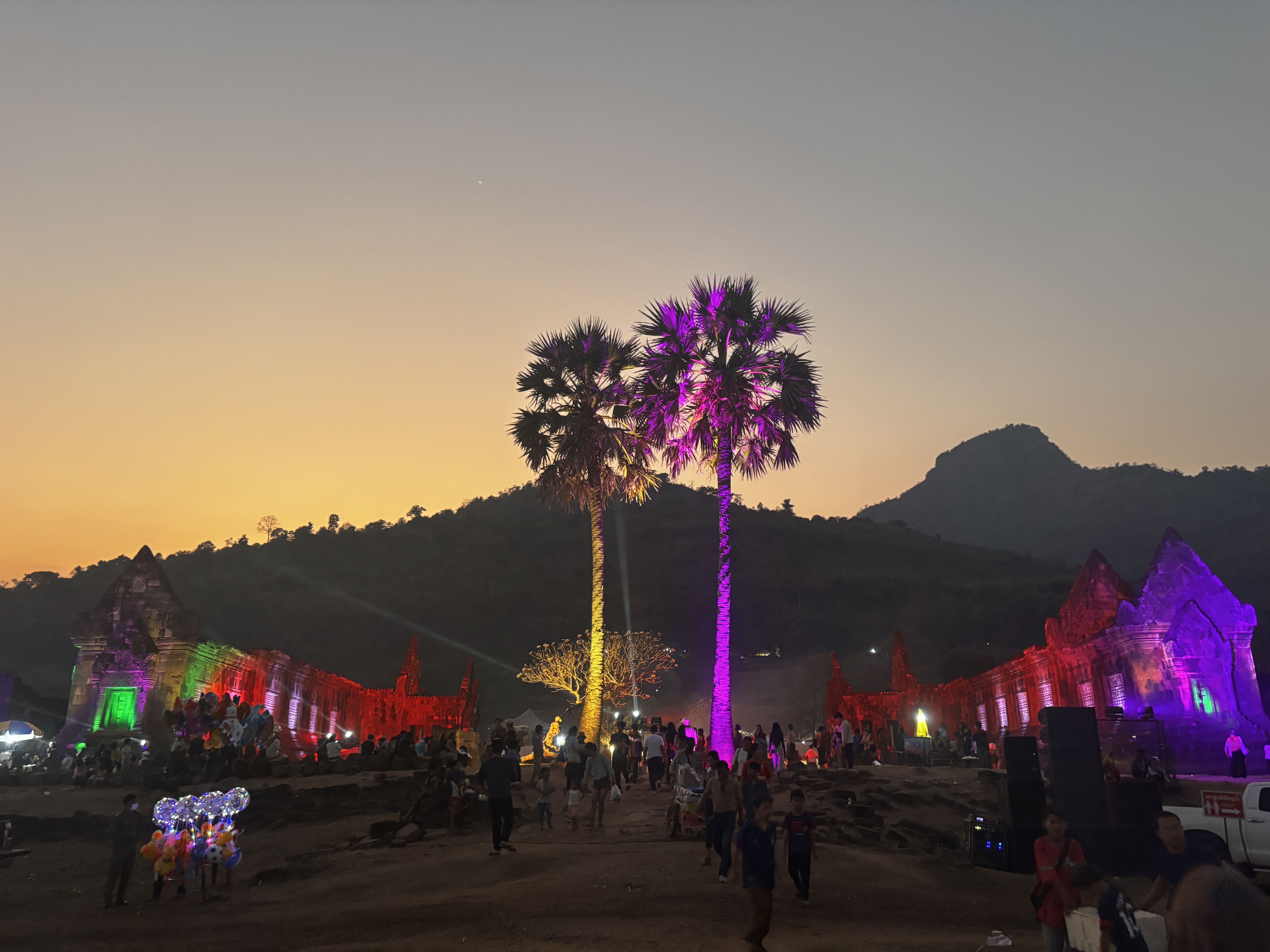 La lumière a tourné. Le jour va s’effacer. Le tuk-tuk file vers Wat Phou — et c’est une autre ville, une autre foule, un autre monde.