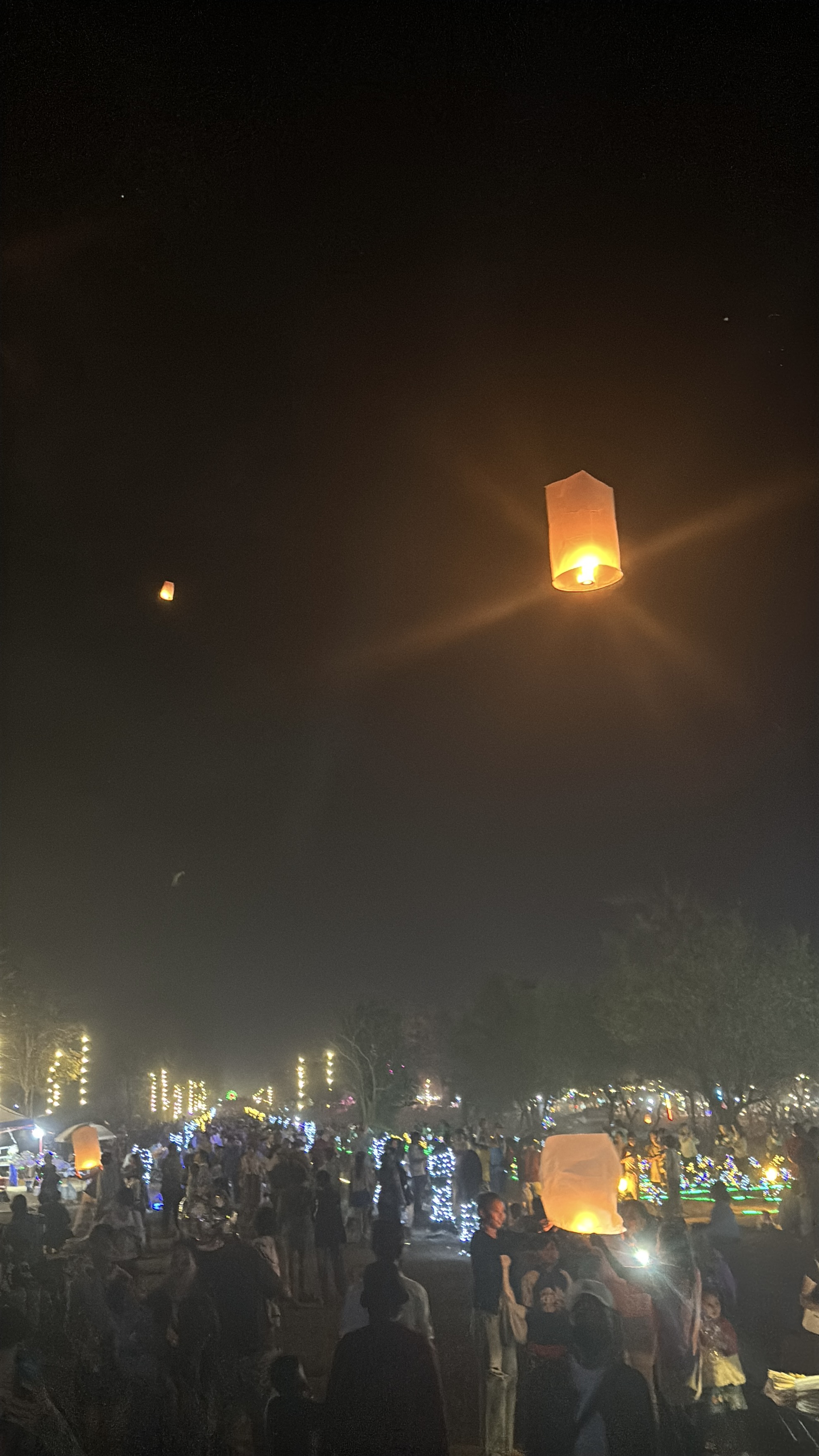 Une femme s’approche, me sourit — par pitié —, et m’aide. Entre nos mains, la seconde lanterne monte alors soudain, file et disparaît parmi les mille autres — légère comme une promesse qui ne sera jamais tenue.