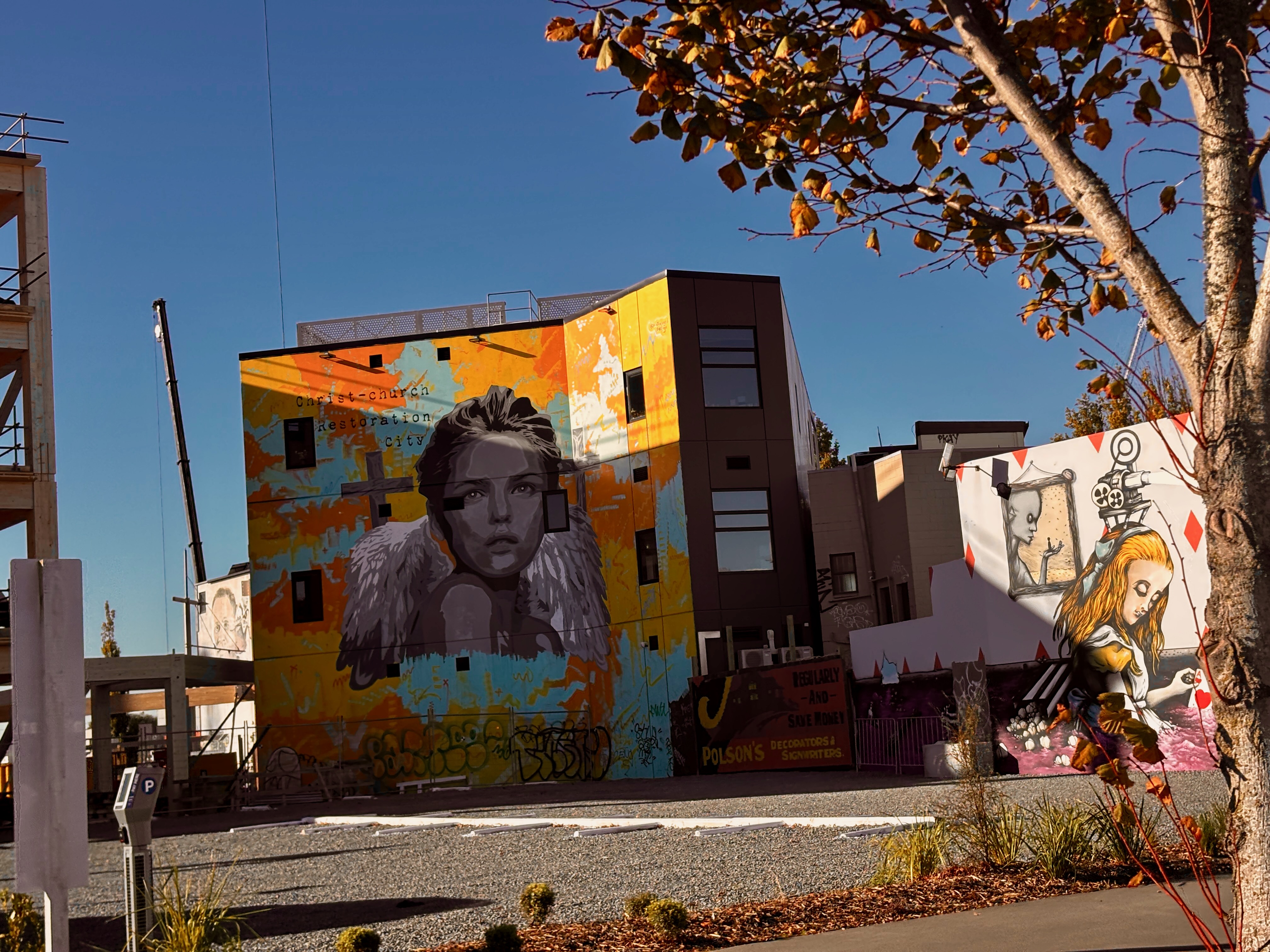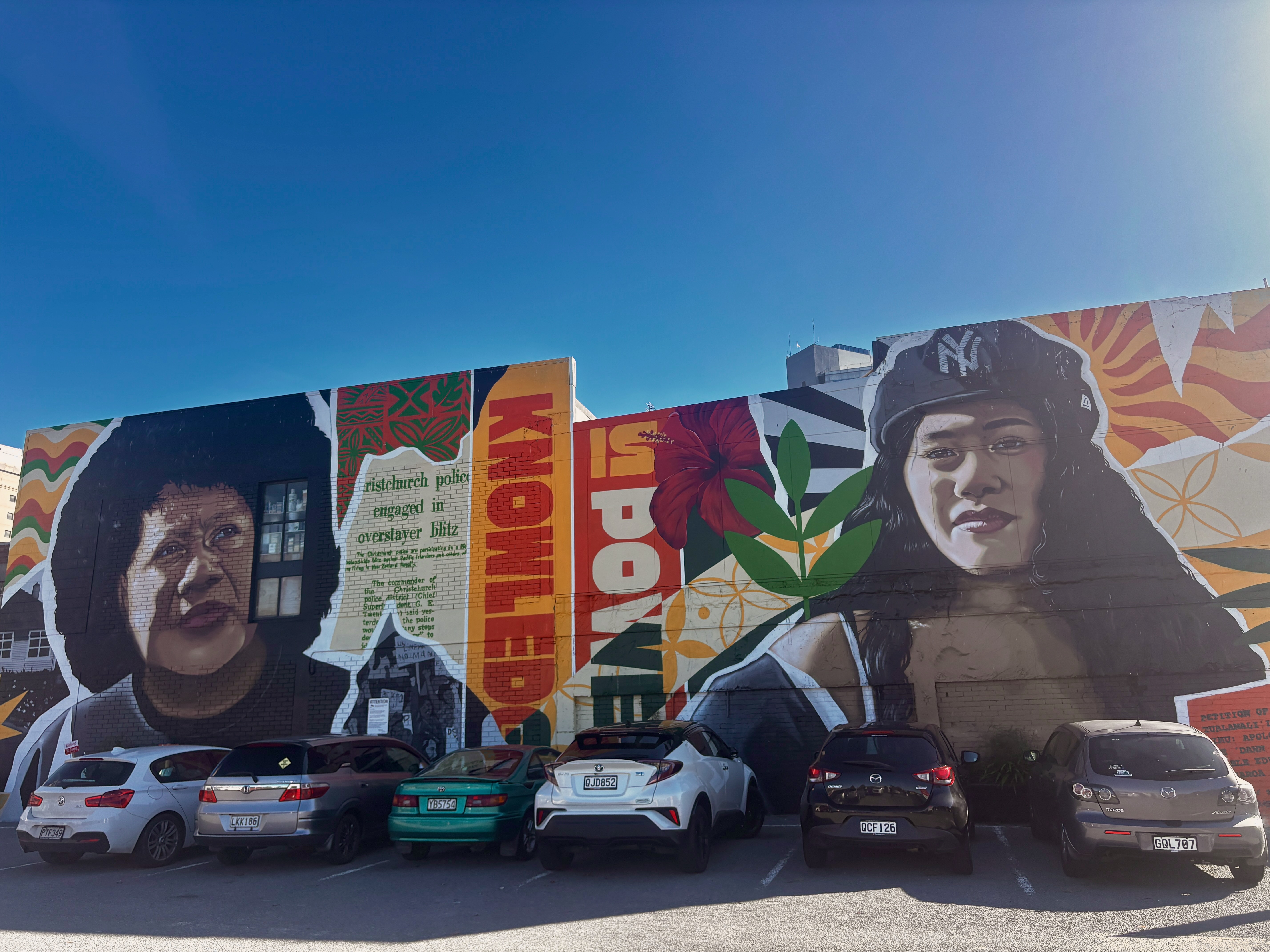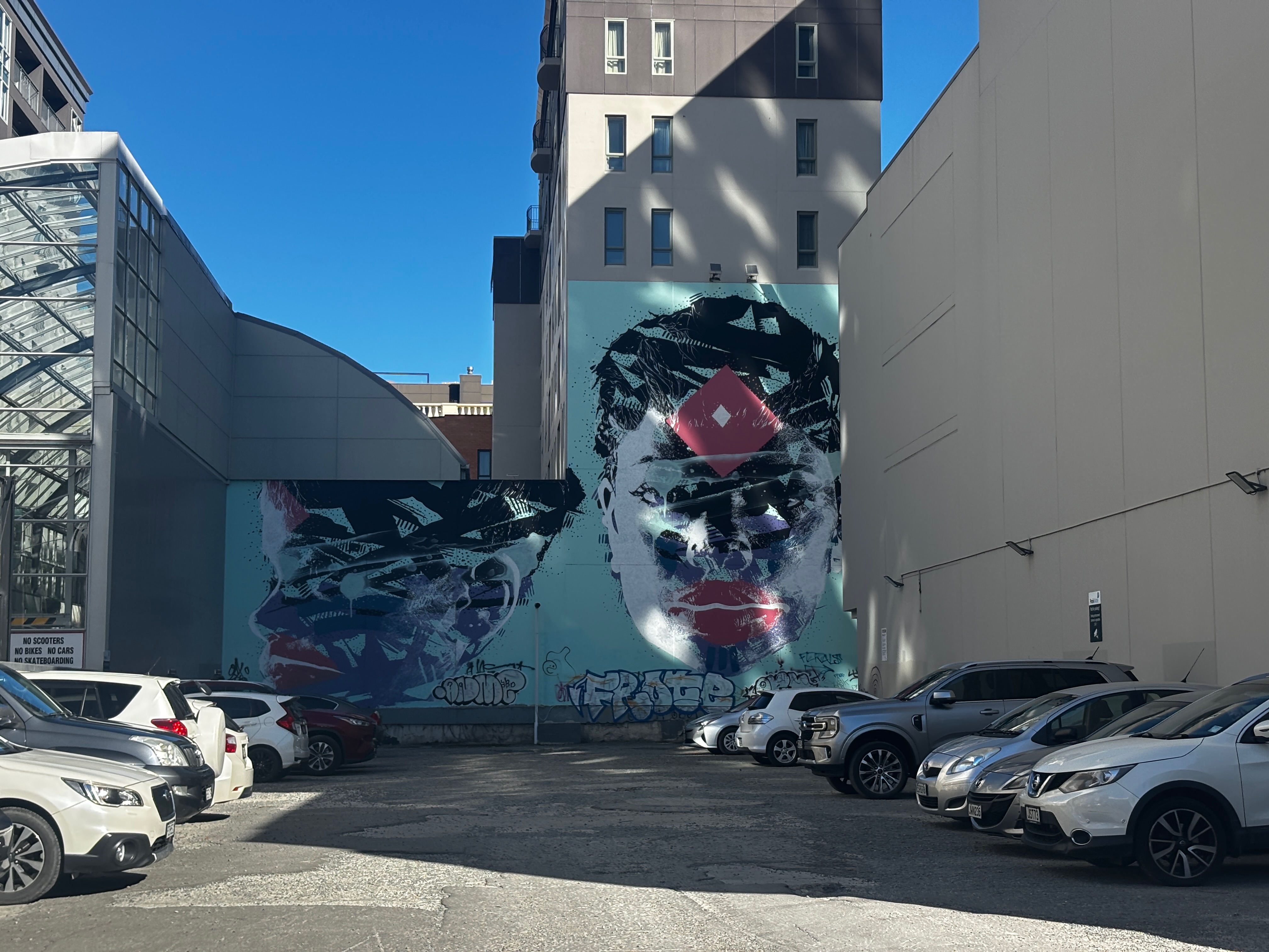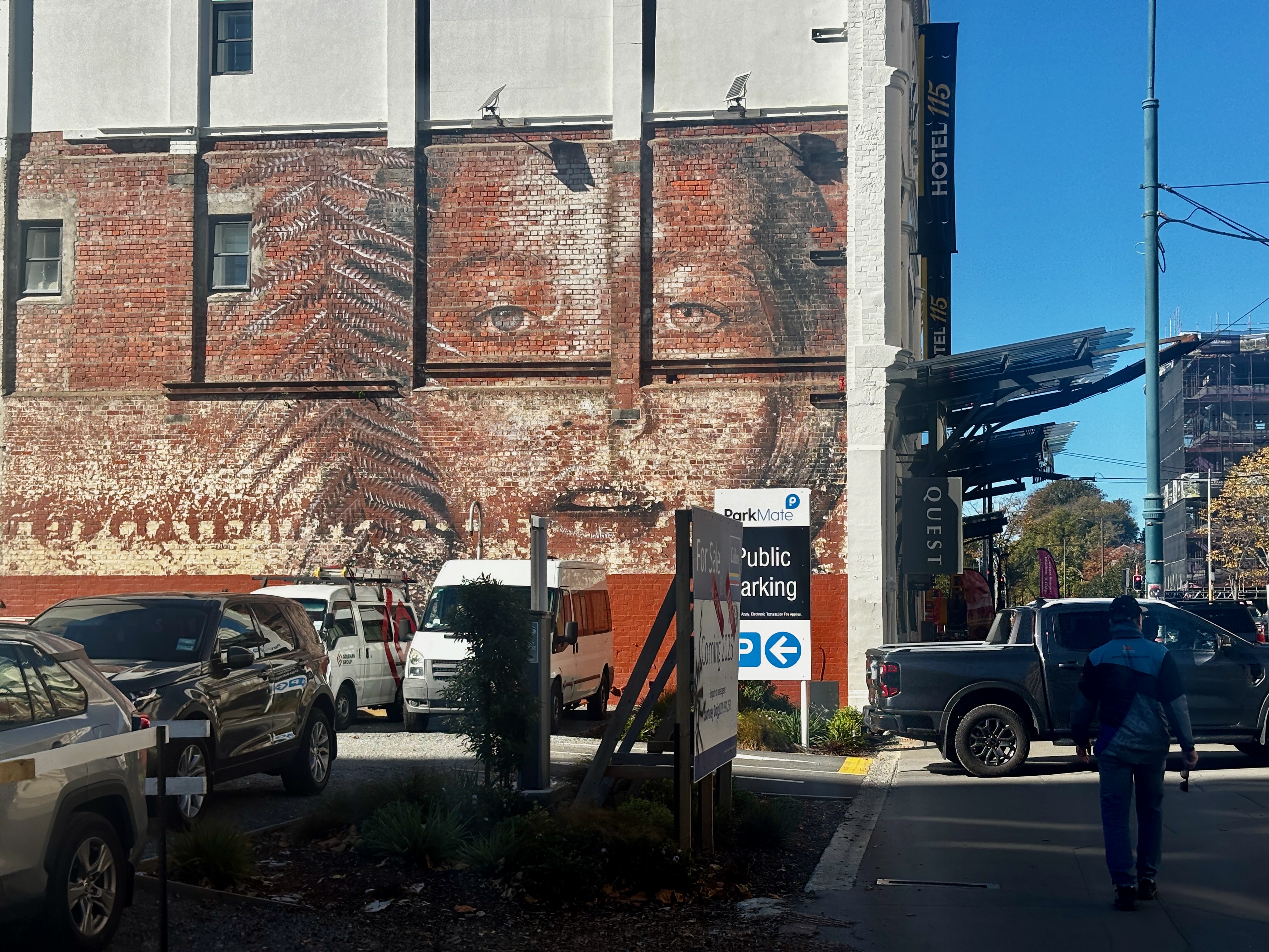 De Christchurch, s’enfoncer dans les rues relevées sur leurs ruines, lever les yeux vers les visages peints sur les murs de Central Ward, et dans le tremblement des pierres neuves, le calme vengeur des regards restés, sentir quelque chose du monde s’ouvrir, tomber, persister.
