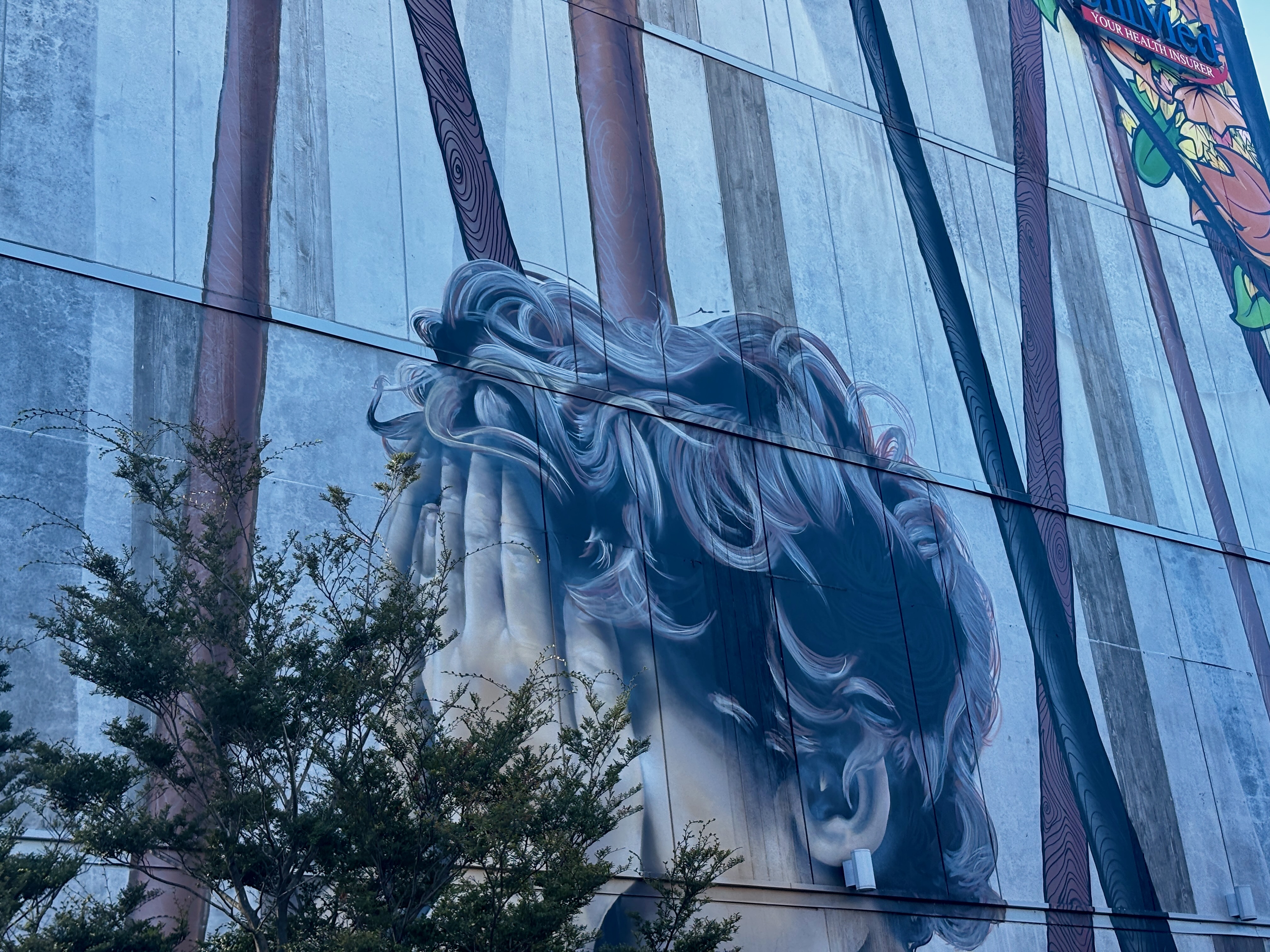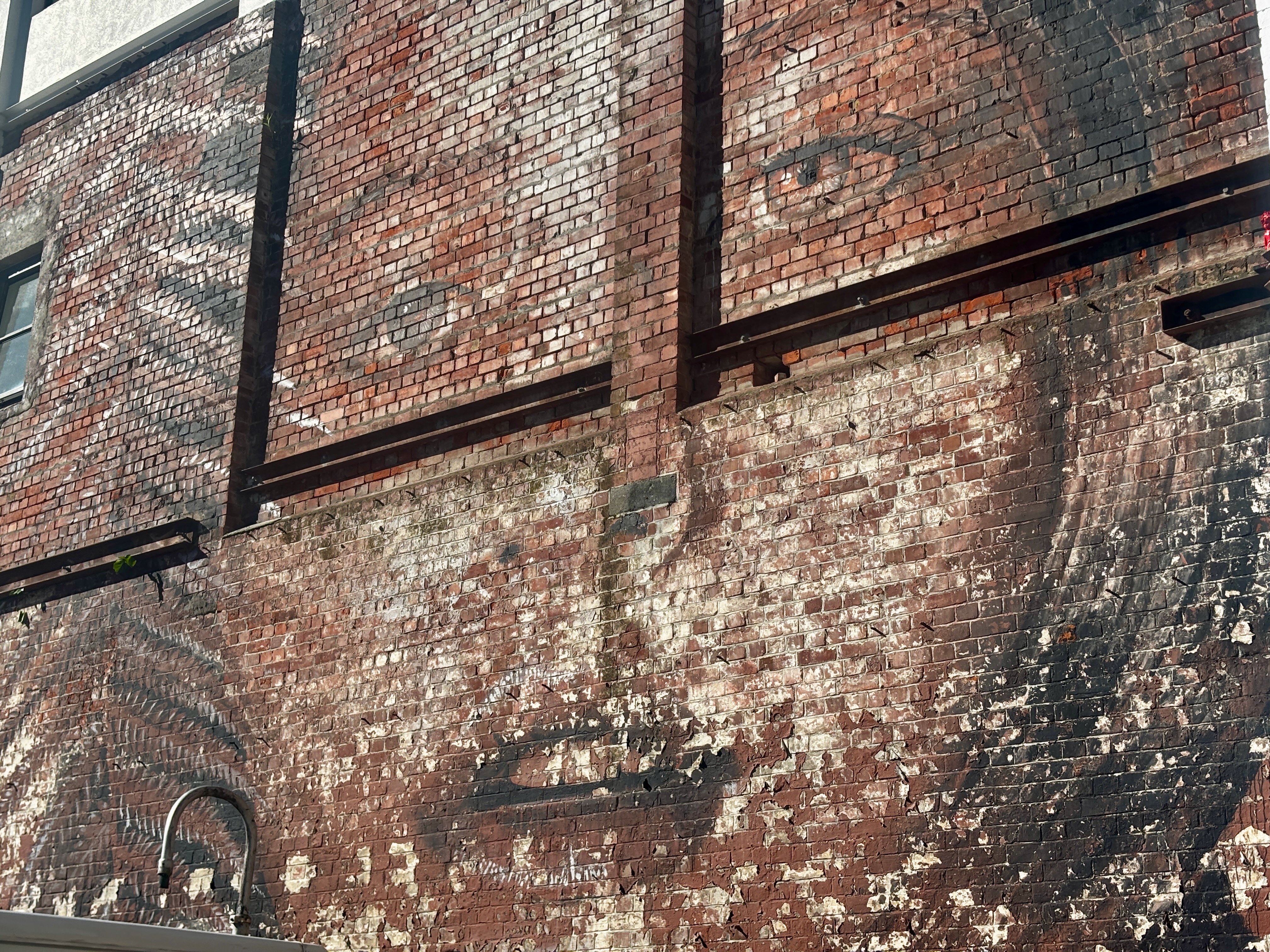Ici, les murs parlent à hauteur d’homme, ou bien plus haut, là où les visages géants nous regardent sans un mot. Des femmes peintes sur la brique rouge, la fougère tressée dans les cheveux, les paupières levées pour ne rien oublier. D’autres encore, yeux clos, lèvres entrouvertes, portants les noms de celles qu’on efface moins qu’on recouvre. L’art n’orne pas : rappelle.