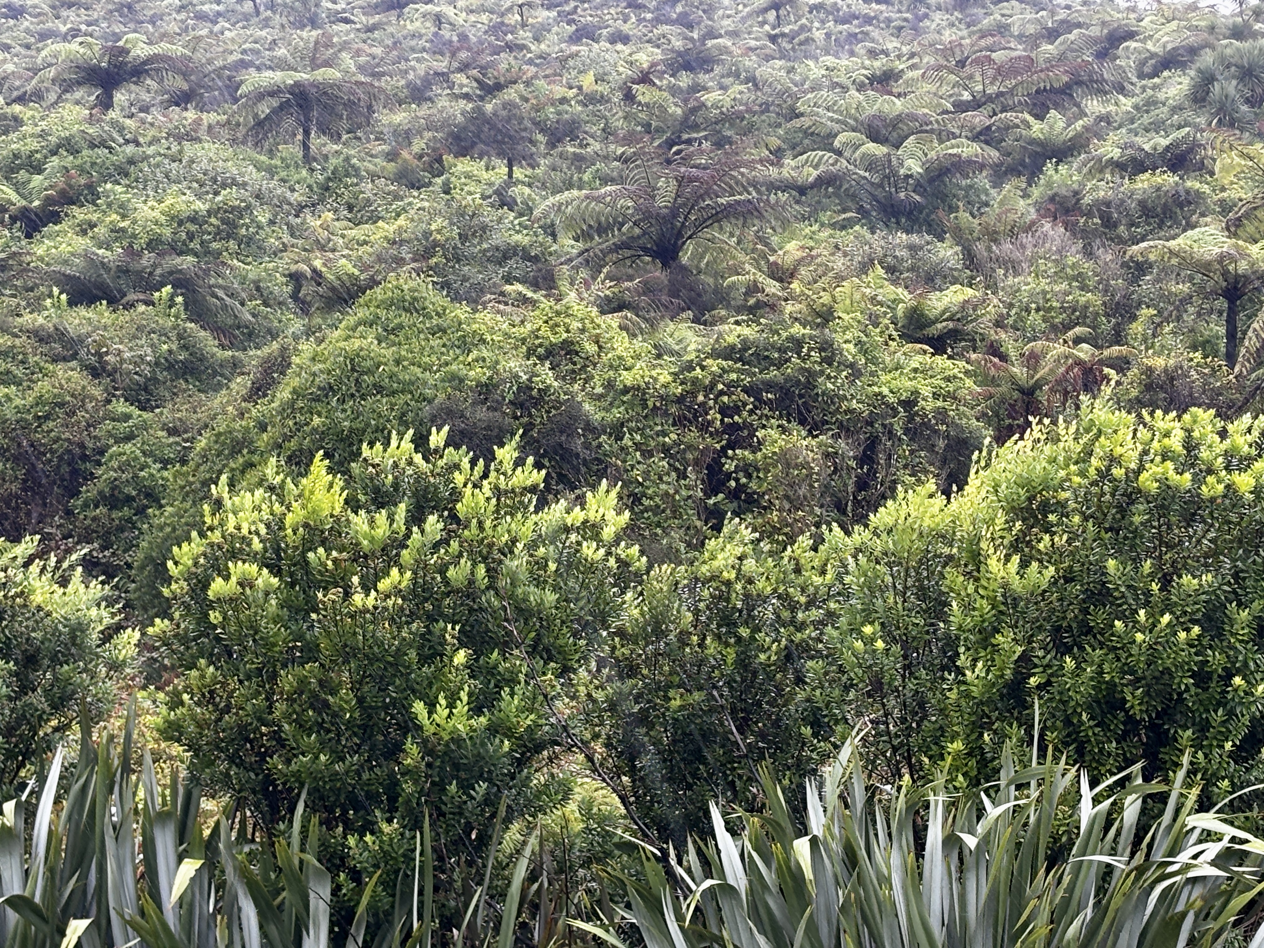 Car ce que nous voyons ne nous appartient pas vraiment ; et toujours cet écart entre ce que nous désirons comprendre et ce que la terre nous laisse entrevoir. Non, nous n’en verrons pas la fin, les rochers continueront de disparaître poussière après poussière et tomber lentement dans la mer sans un bruit. Plus loin, sur le Paparoa Track, la pluie continuera de battre sans relâche les pentes détrempées, noyées dans un vert luisant et glissant, traversées de lichens, de rata rouge sang, quelques taches de vie éclatant dans la brume. Les kéas fous et les piwakawaka, voleront entre les gouttes comme s’ils se moquaient du temps qui passe, du fil du temps et de nos pas, des traces perdues ou des gestes dissipés. Ils ne se préoccuperont ni de la pluie ni du vent, ni du monde qui s’effondre lentement autour d’eux. Ils voleront simplement, déjouant tout ce qui, dans cette réalité morte, cherche à établir le solde de tout compte. Il faudra marcher sur cela aussi.