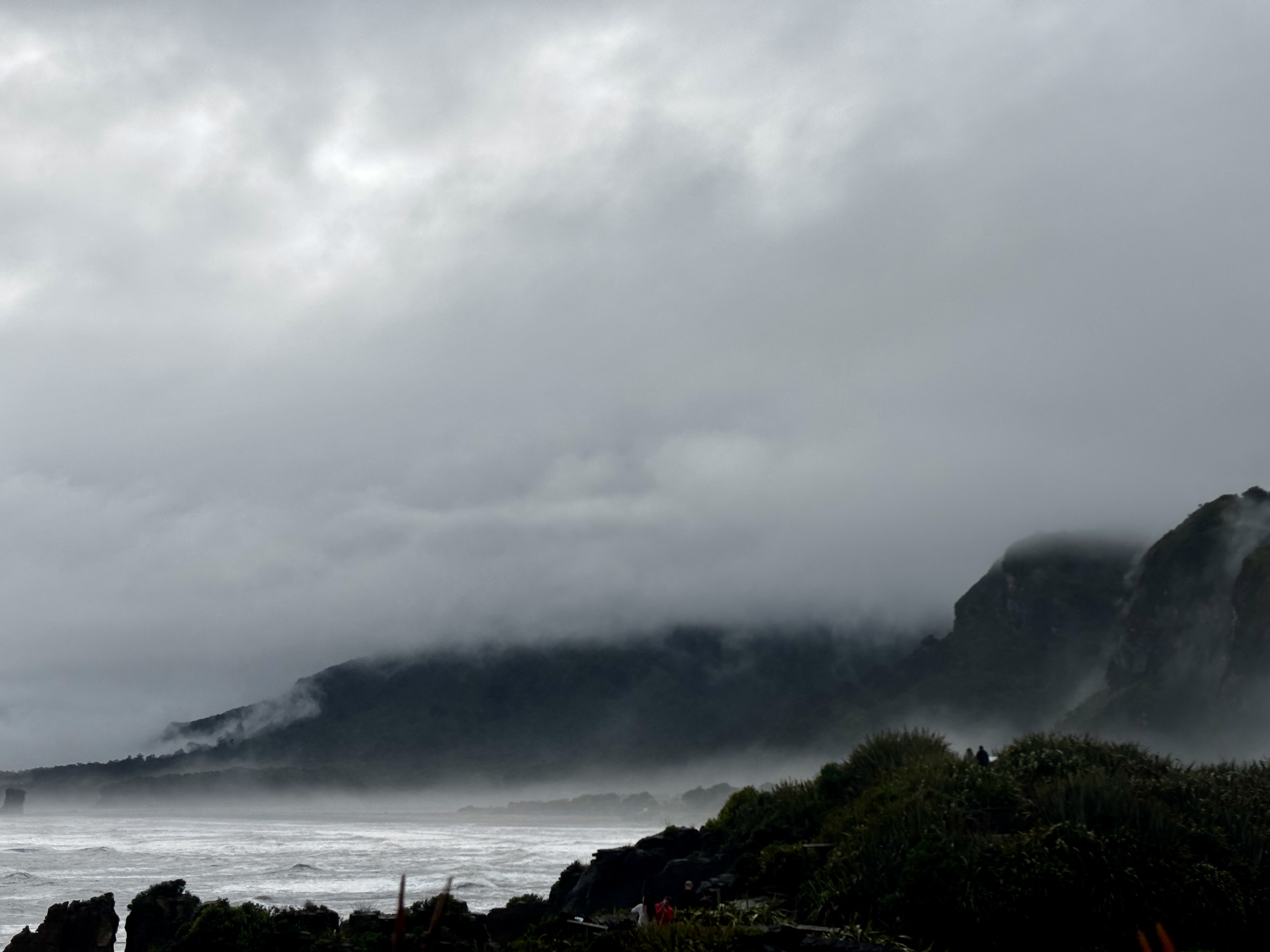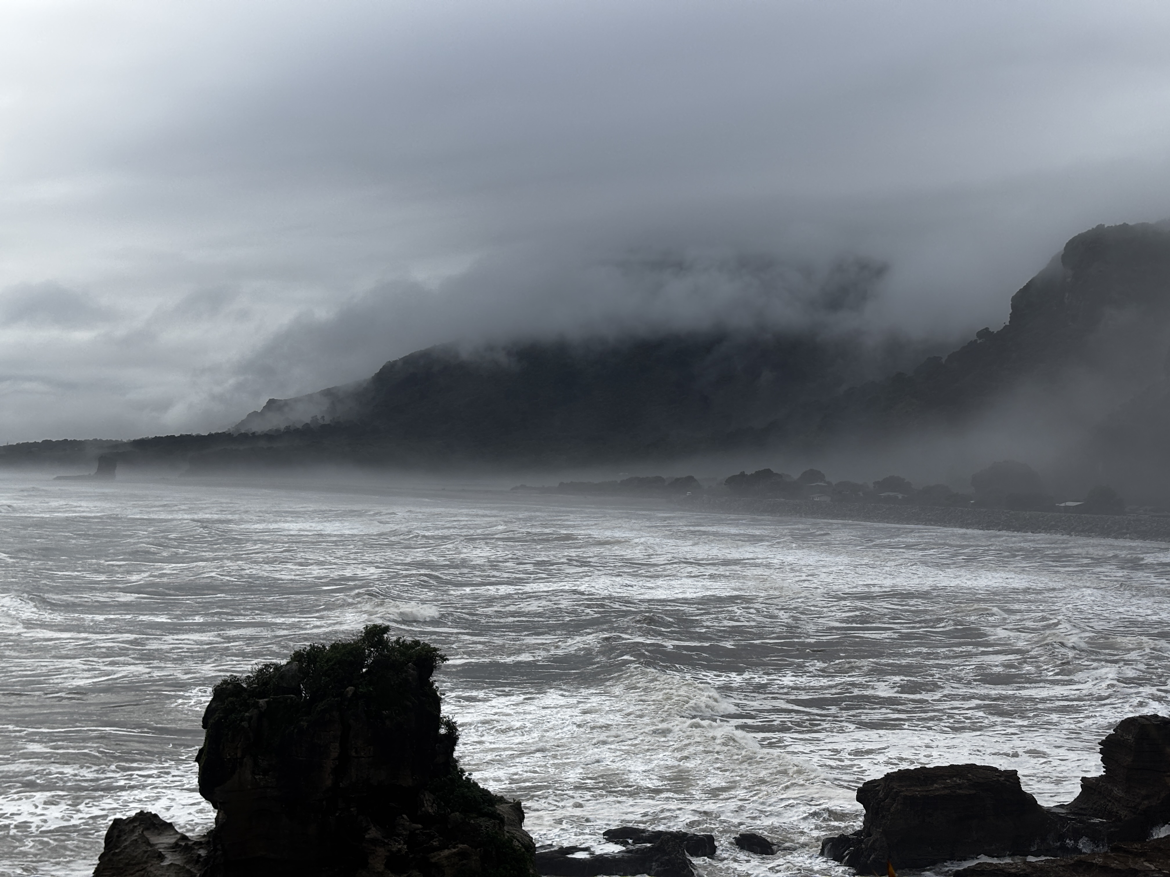 La vallée s’étendait désespérément sous son ciel bas, engloutie quelque part que personne ne chercherait plus, alors les premières montagnes ont émergé lentement, fatiguées mais indéfinissables, au fond d’un paysage en fond perdu. Plus loin, la route grimpe, se glisse à travers les forêts de hêtres, les arbres détrempés, leurs troncs noirs luisants sous l’humidité, l’air lourd de mousse et de terre humide. Arthur’s Pass se dresse, sa plaie ouverte par les chercheurs d’or qui avaient voulu dompter la terre vierge et où le vent, saturé d’histoires et de rêves avortés, souffle sans relâche sur la faille. Le col se lève entre les montagnes, tracé dans le silence, passage obligé pour ceux qui croyaient trouver l’or où la terre ne donnait que des cailloux, de la pluie. Et puis, tout bascule, la route descend, se précipite vers la West Coast, abandonne les hauteurs pour se laisser avaler dans les pentes lourdes et sombres qui se jettent dans la mer de Tasman. La brume se défait sous les morsures du vent qui pousse les vagues jusque sur la terre, et bientôt la lumière change, plus dense, crache le sel et la mémoire – à Greymouth, l’air porte l’odeur du large, ce parfum de fin, de tout ce qui fuit vers l’horizon où la terre se vomit dans la marée.
