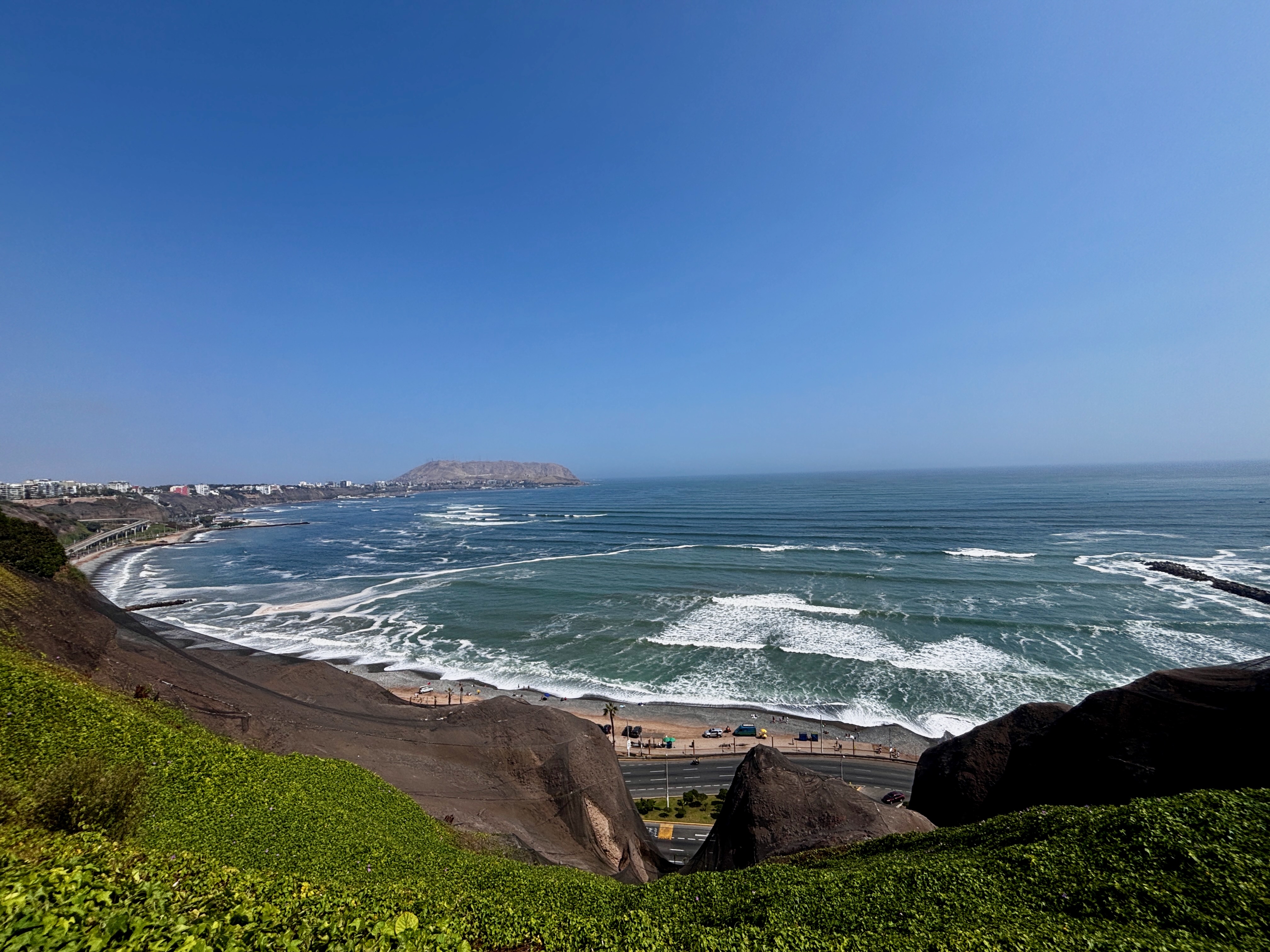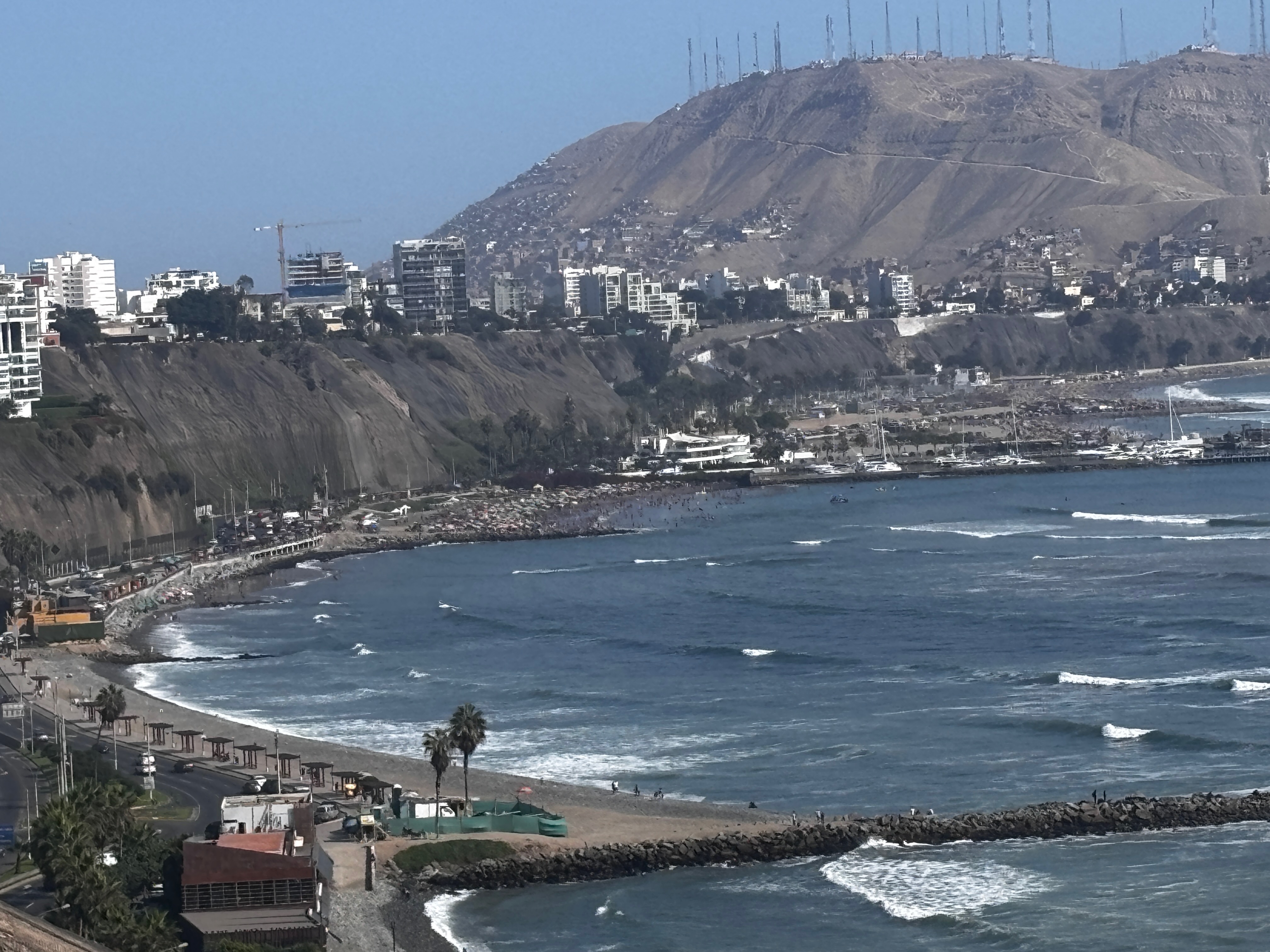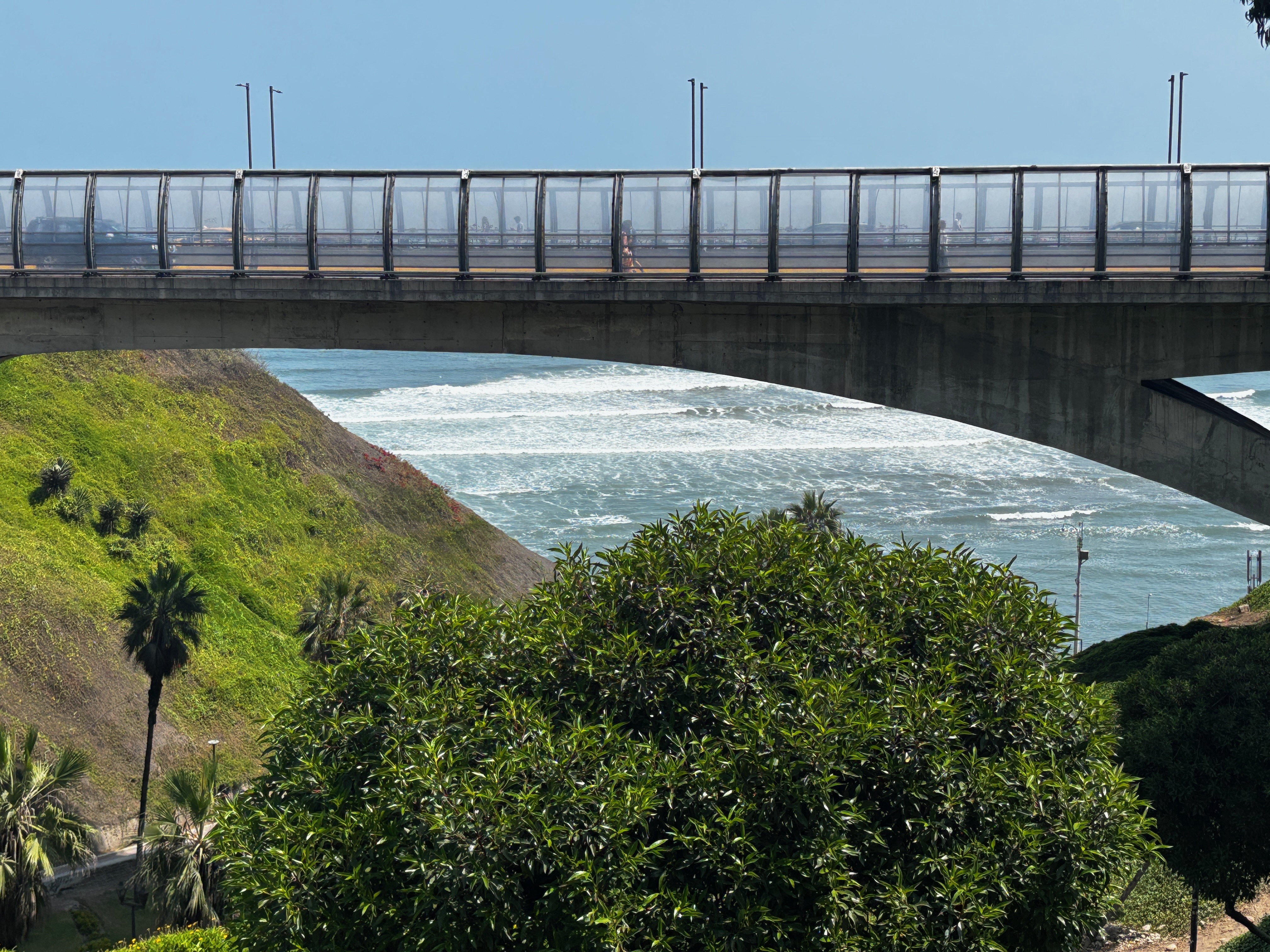 D’abord Miraflores, quartier-hauteur tendu entre les tours lisses et l’océan muet, qui se déploie en lignes nettes, promenades suspendues, pelouses taillées, luxe caché sous les barbelés – derrière les façades sans rides, quelque chose d’inavoué dans la façon de tenir le monde à distance.