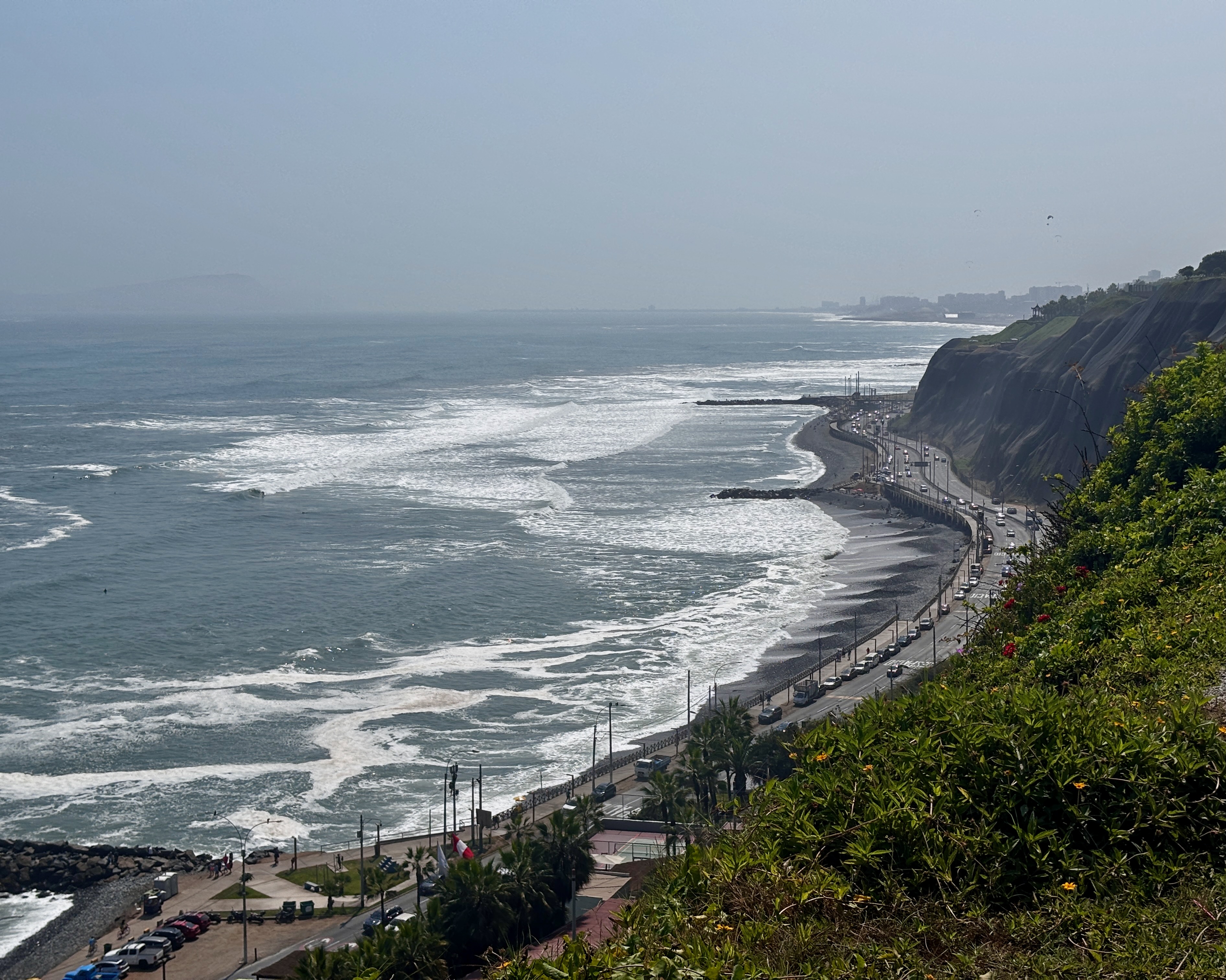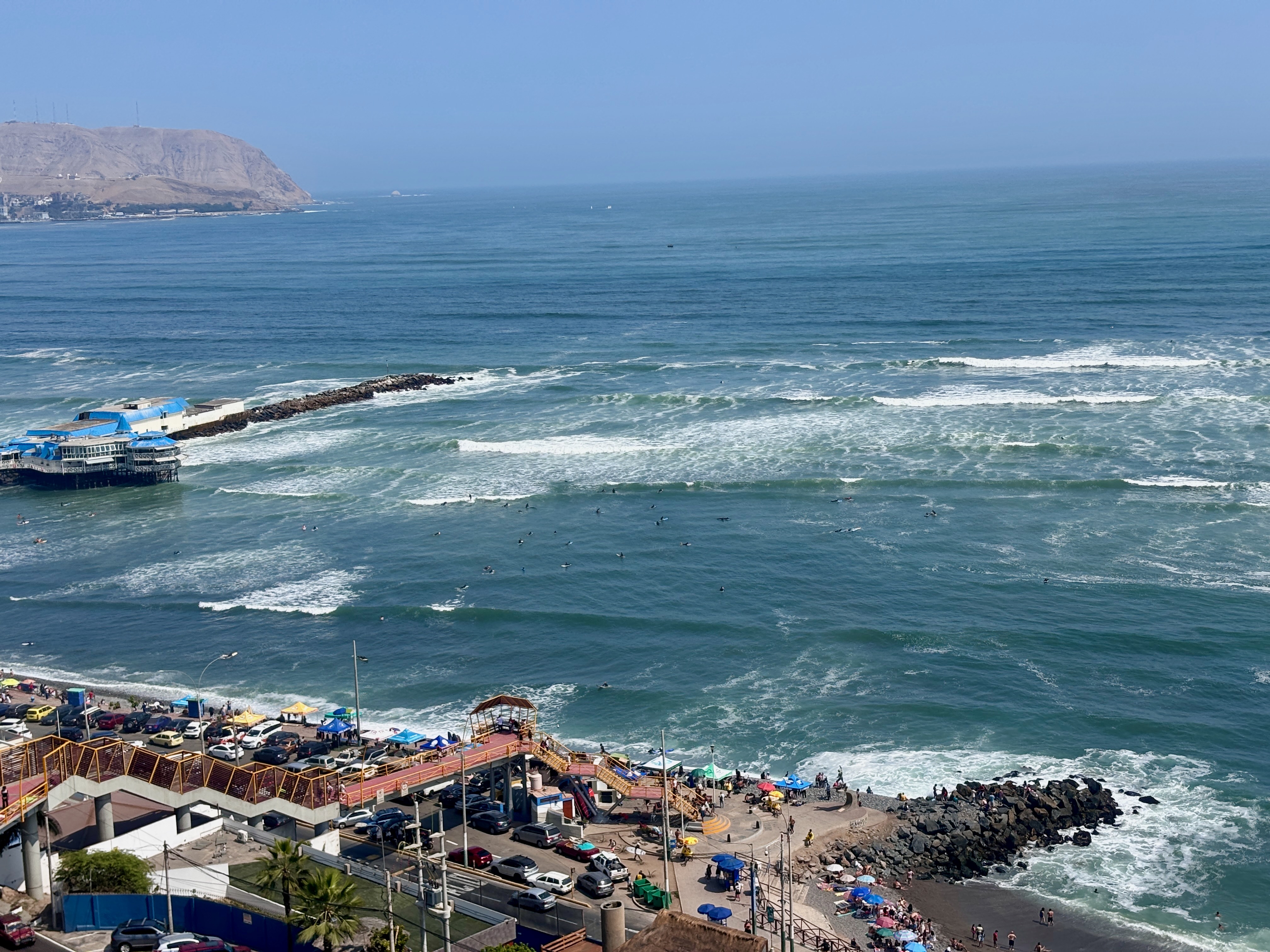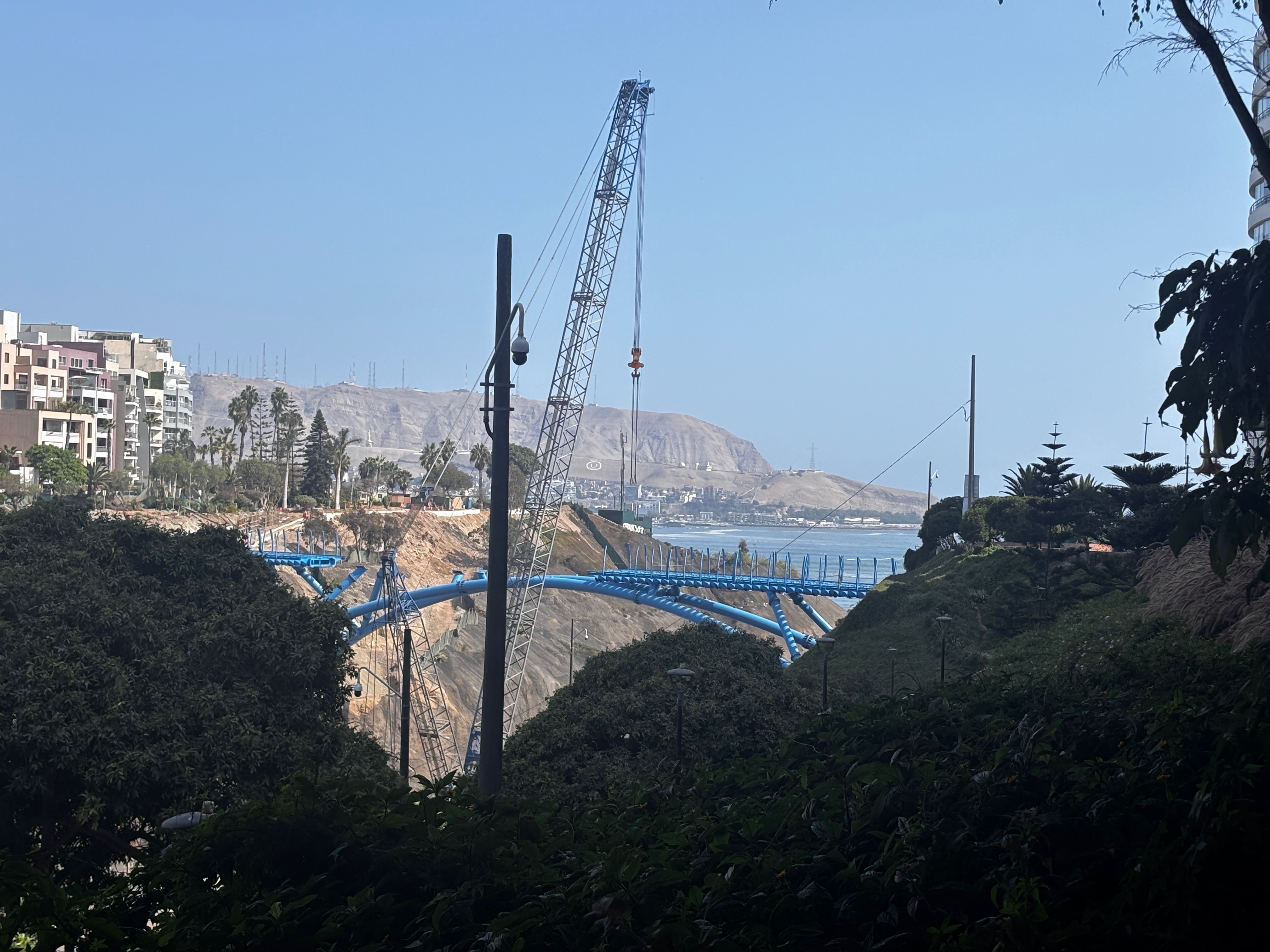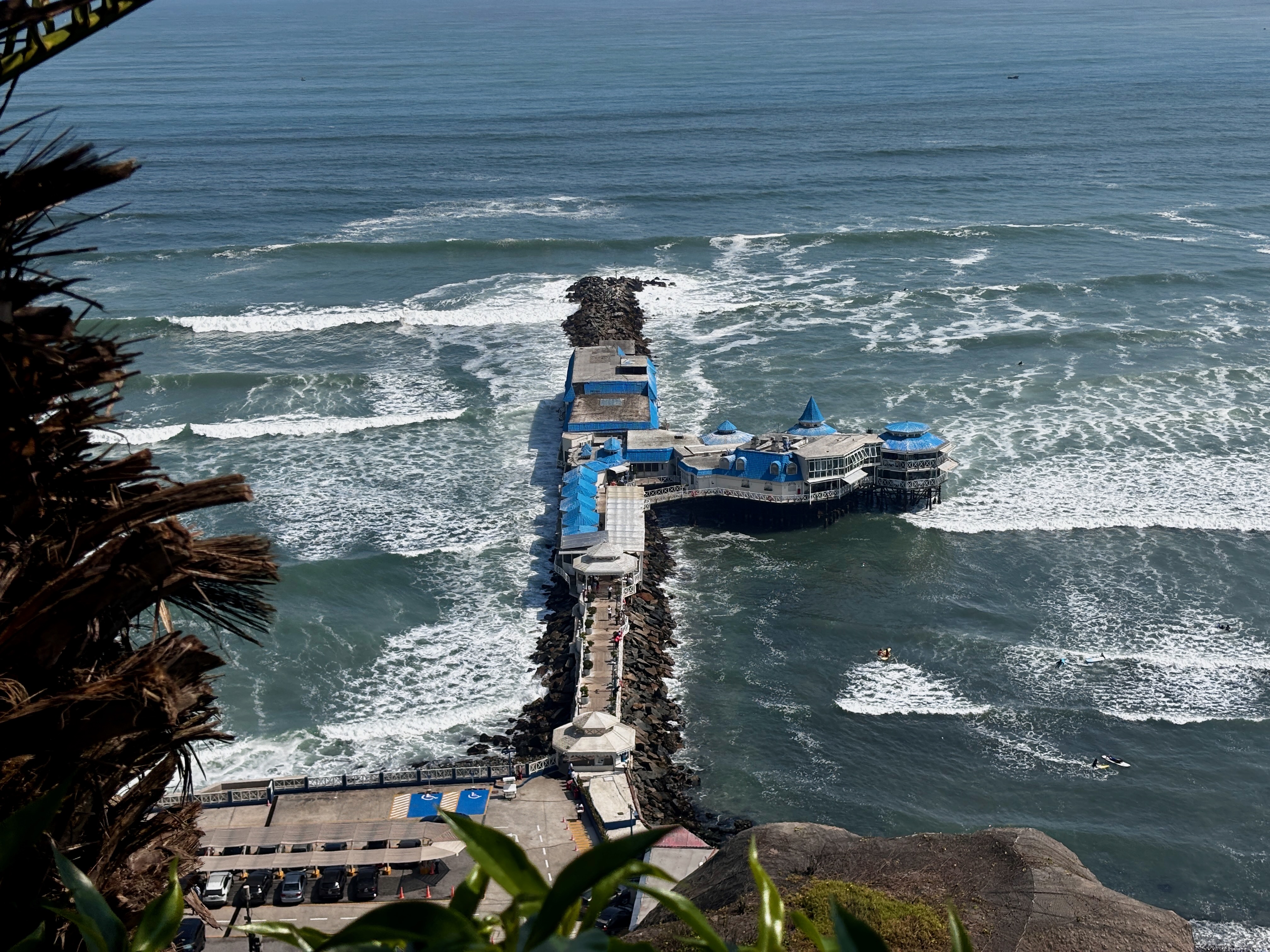 D’abord Miraflores, quartier-hauteur tendu entre les tours lisses et l’océan muet, qui se déploie en lignes nettes, promenades suspendues, pelouses taillées, luxe caché sous les barbelés – derrière les façades sans rides, quelque chose d’inavoué dans la façon de tenir le monde à distance.