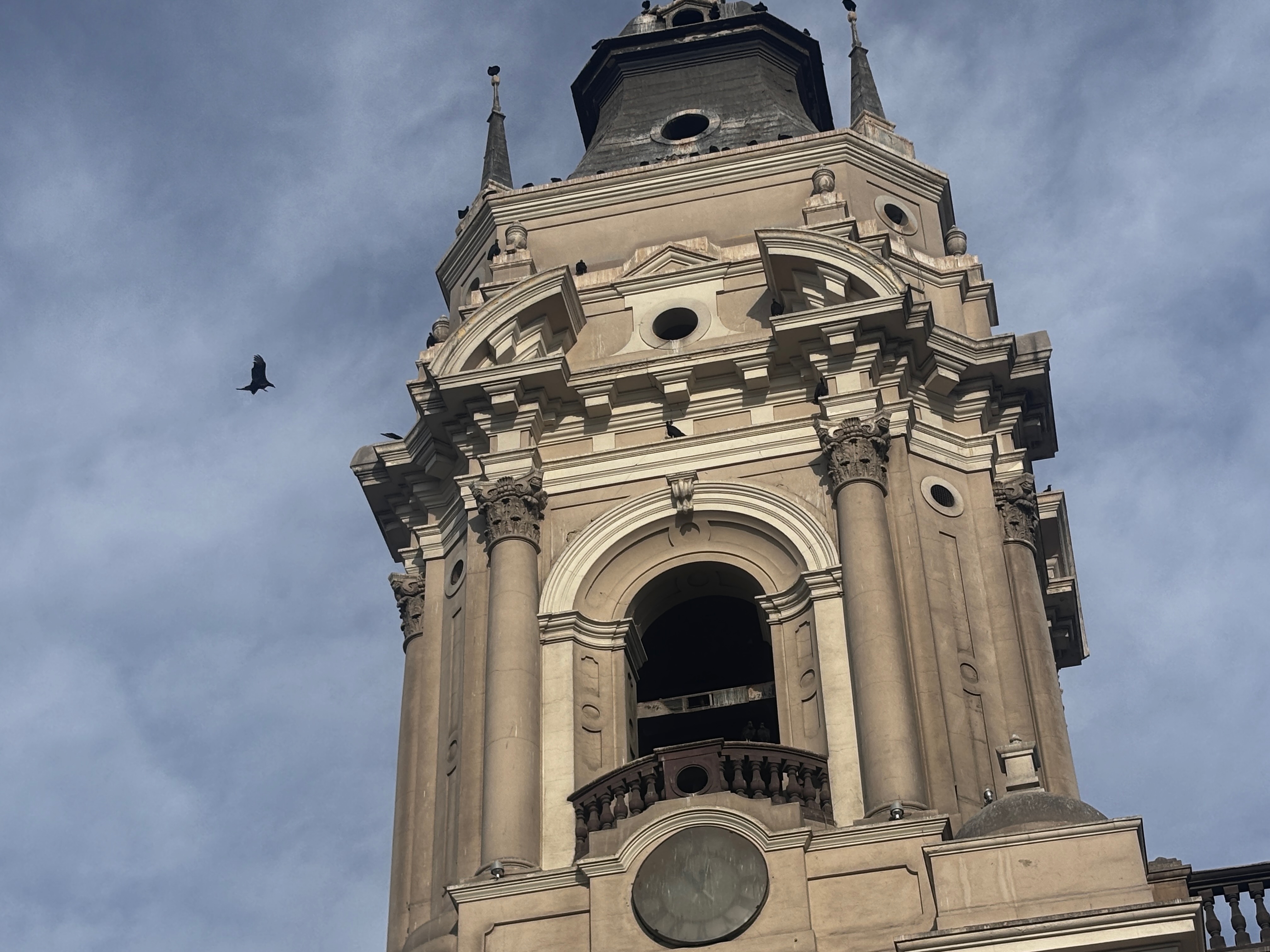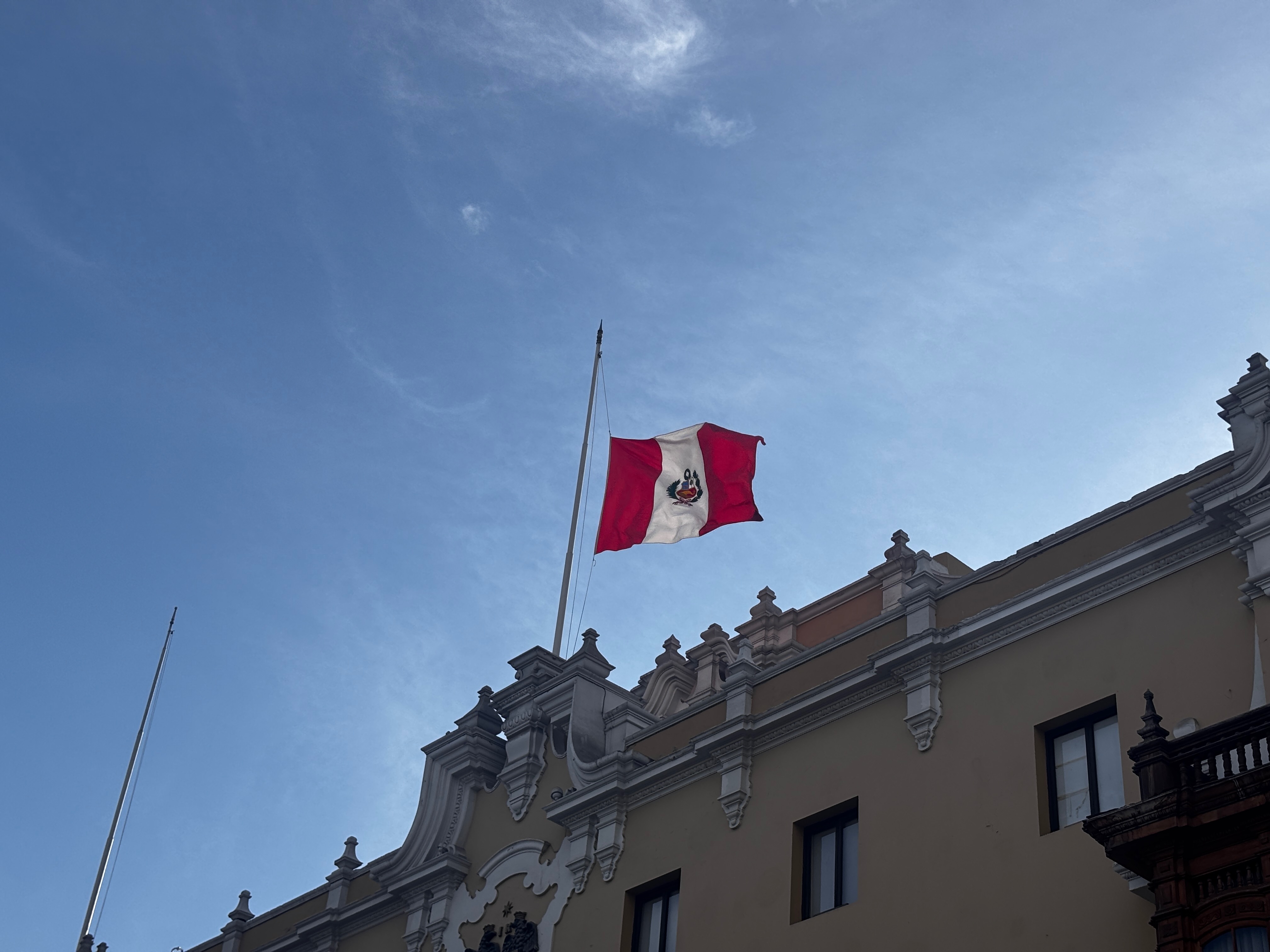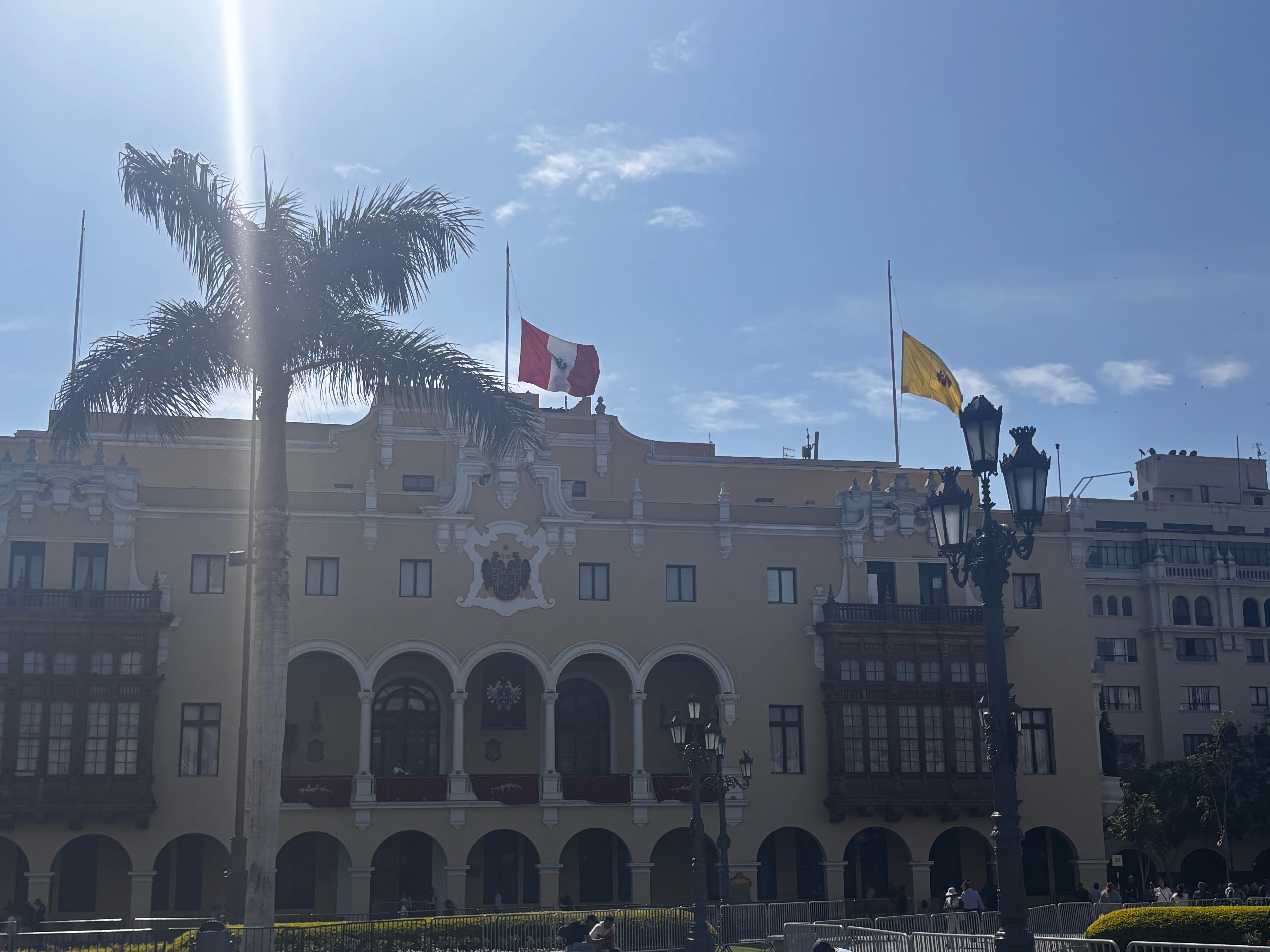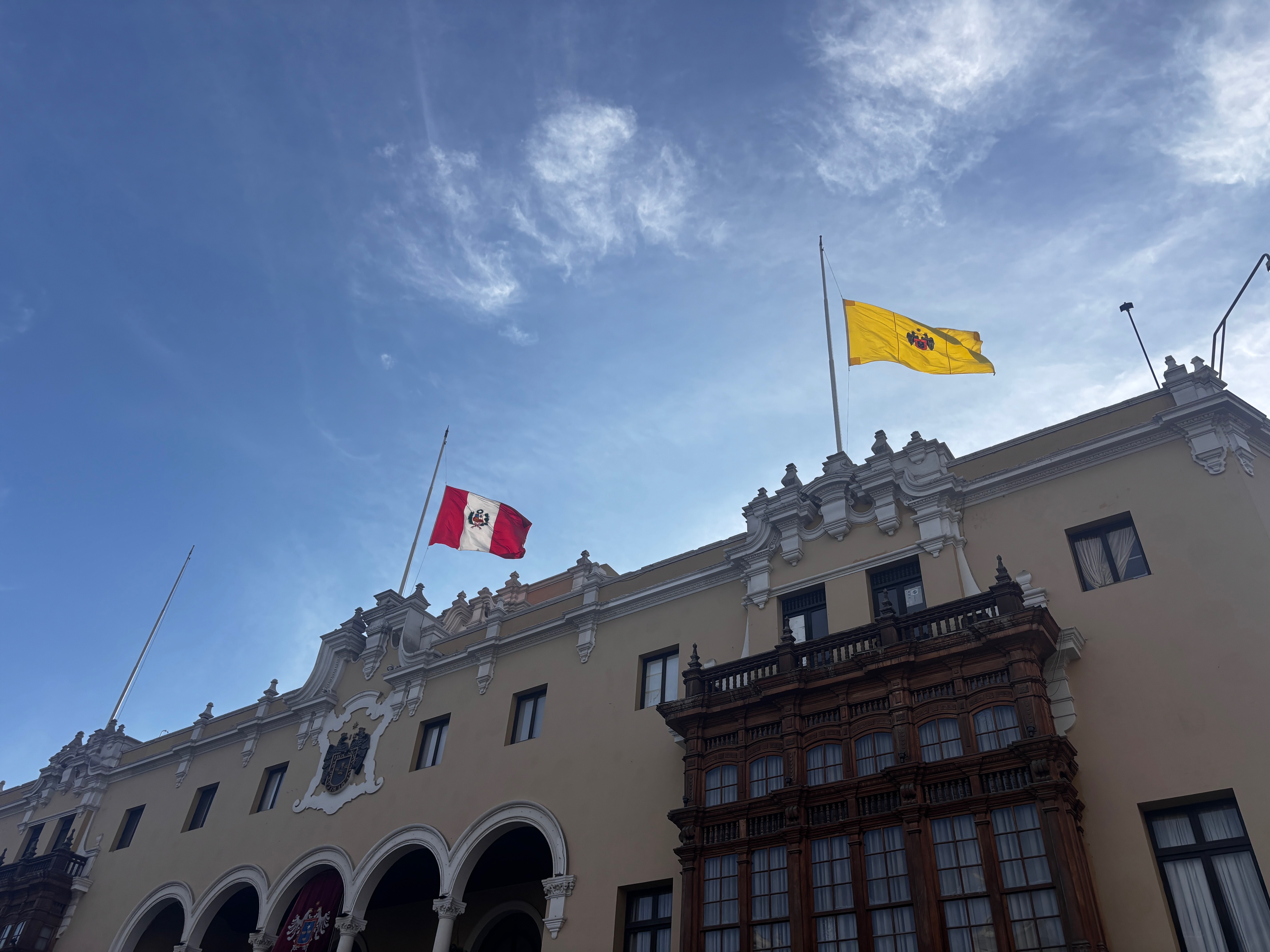 Plaza Mayor, les drapeaux en berne. Le Pérou a perdu hier Vargas Llosa, écrivain double, immense par l’œuvre et retors dans ses choix — écrivant ces romans d’une main, et ses discours aux cris rances de l’autre. L’air suspendu à une contradiction qu’on ne résout pas. La conversation à la cathédrale continue, oui, mais a changé de langue — se fait désormais dans les ombres qui glissent sur les façades jaunes, les pas lents sur la pierre chaude, le regard des vautours noirs qui tournent au-dessus des toits — plus justes que les paroles en tombeaux. Dans cette place, le théâtre d’une république hésitante, et ses colonnes, l’écho d’un pays qui ne sait plus à quel récit se vouer : à la conquête ou à la blessure, au Christ ou au soleil disparu.