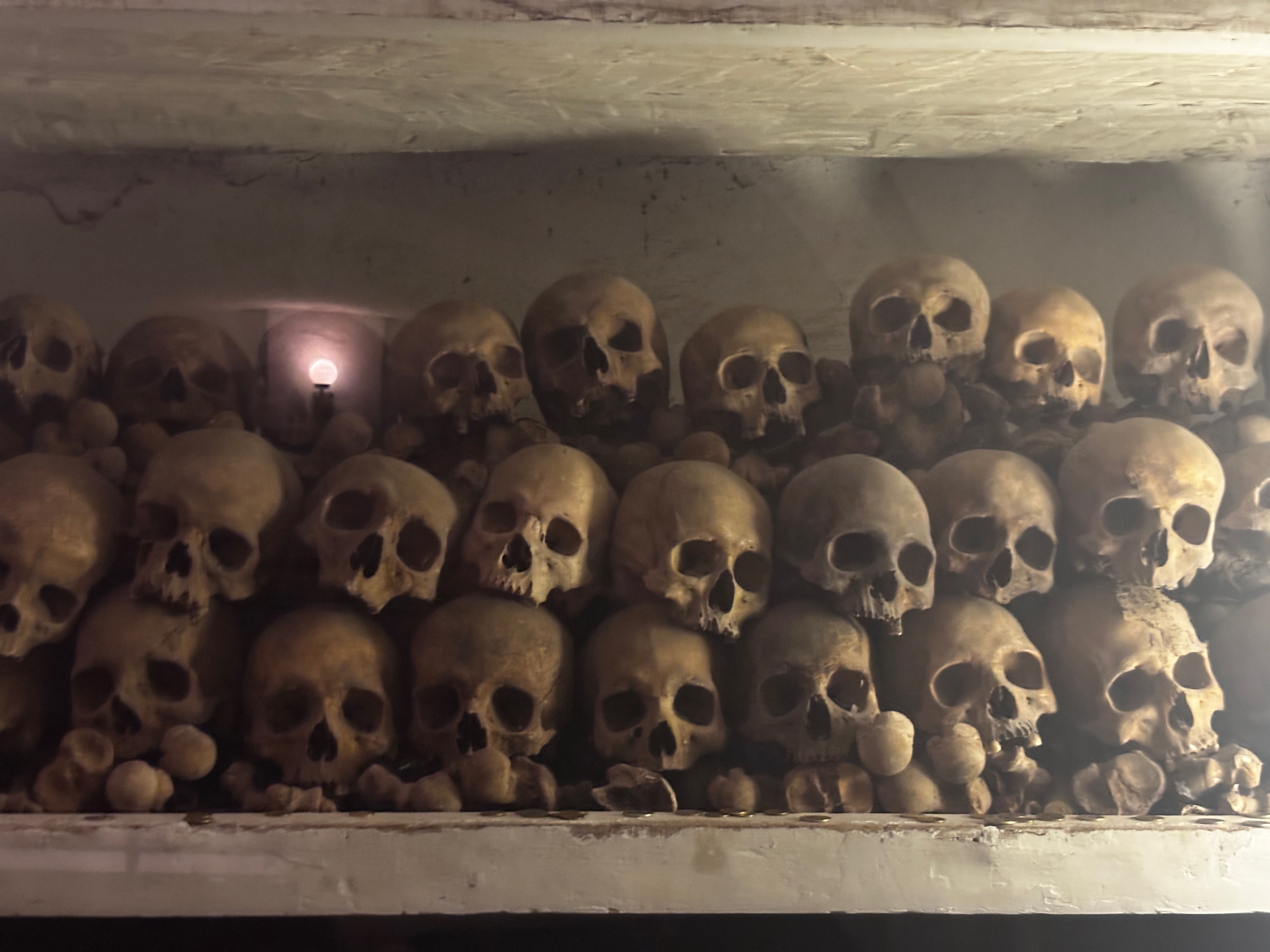 Dans la cathédrale, le chœur ciselé s’élève pour des voix absentes. La pierre chante à vide. Tout ici lève sa beauté résignée : dorures qui brillent pour personne, boiseries polies par les siècles, retables qui cachent mal la peur de l’effondrement. Les tableaux de l’enfer, à eux seuls, veillent — flammes d’huile et de silence, et davantage de présence que les cierges. Sous leurs regards, les catacombes s’ouvrent : os entassés, poussière classée, restes d’un ordre maintenu par l’obsession du salut. Mais qui, ici, a jamais été sauvé ? La ville, dehors, attend le prochain séisme comme une promesse. Car tout y semble provisoire, tout semble dire : la beauté s’acharne, la faille aura le dernier mot — comme si la terre, en grondant, voulait rappeler ce qu’elle fut avant les croix.