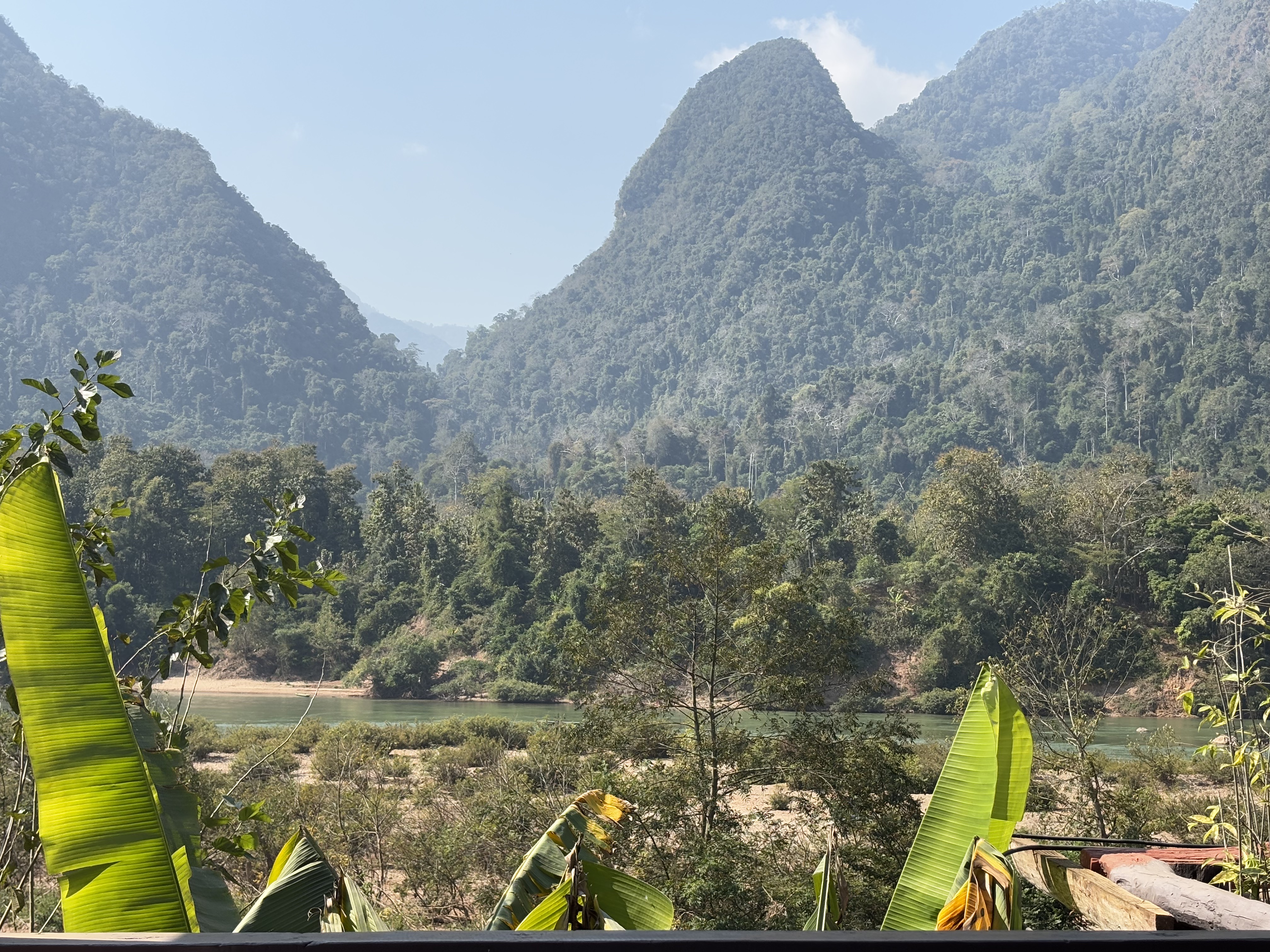 On saute de la voiture qui repart presque aussitôt en sens inverse, on lève les yeux, on est cerné : par les sommets karstiques couverts de forêts, par la rivière Nam Ou qui semble amorcer son virage ici pour nous encercler, par toute cette beauté ahurissante qui saute au visage.