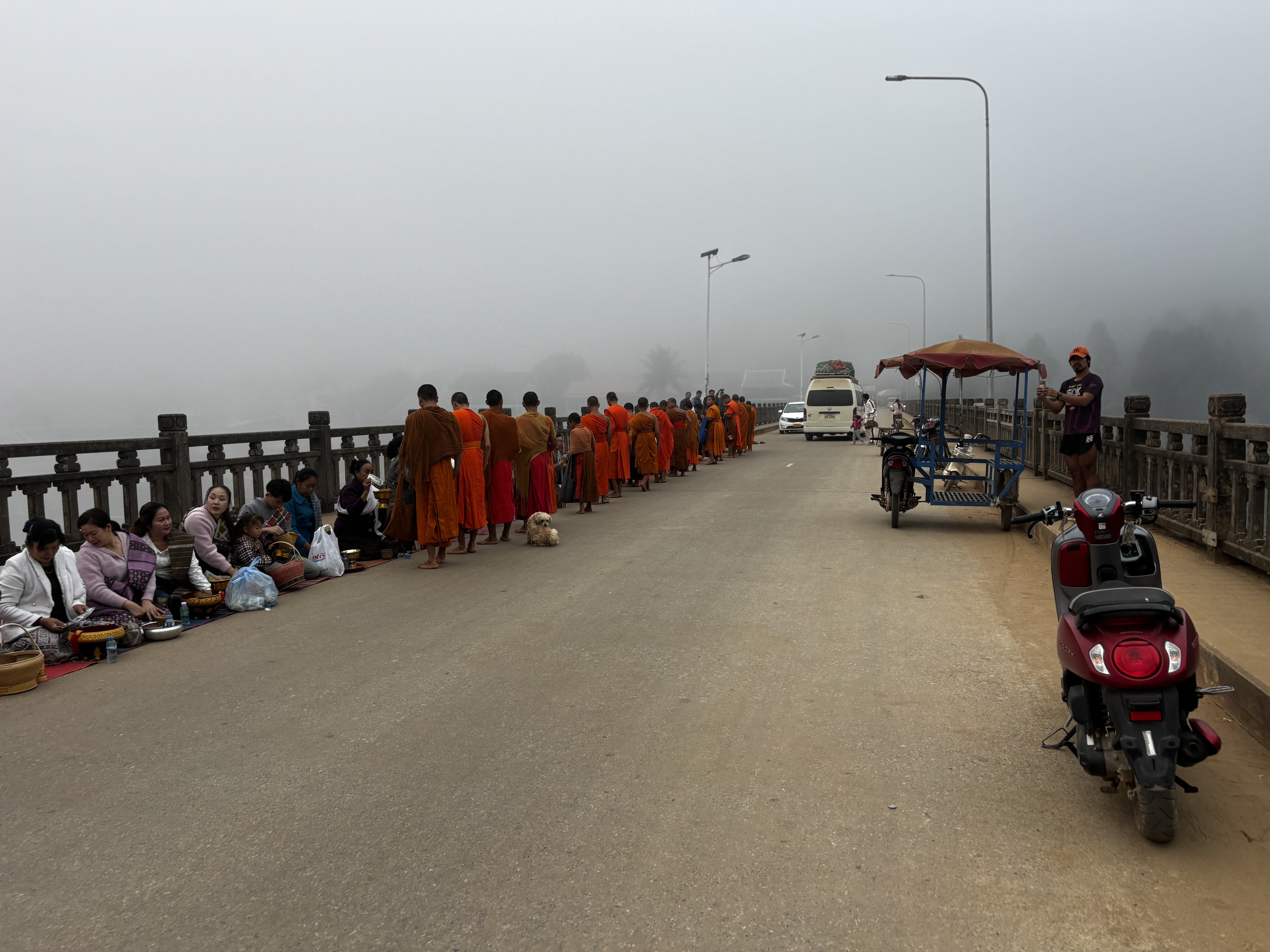 Le Laos, enclavé entre la Thaïlande à l’ouest, la Chine au nord, le Vietnam à l’est, et le Cambodge au sud est au cœur de la rose des vents : univers aux mille frontières, mais sans bord : si le pays est interdit d’accès à la mer, c’est aussi une terre d’eau striée de ces veinules qui se jettent tous désespérément dans le Mékong. Ici, c’est la Nam Ou qui serpente. Il y a peu, on pouvait la remonter depuis Luang Prabang, mais les barrages levés partout sur le fleuve par les puissances charognes alentour rendent la route par bateau désormais impossible.
