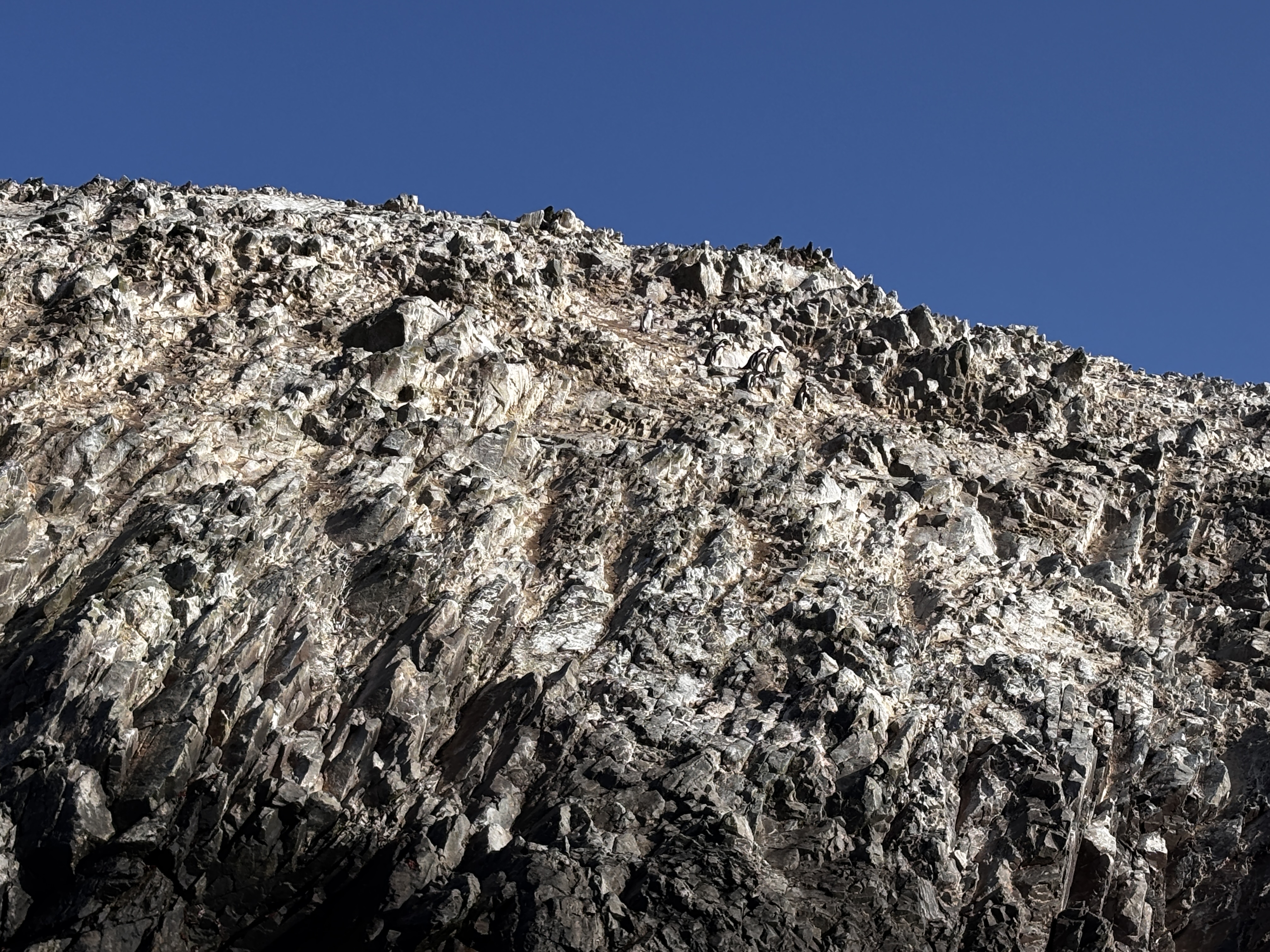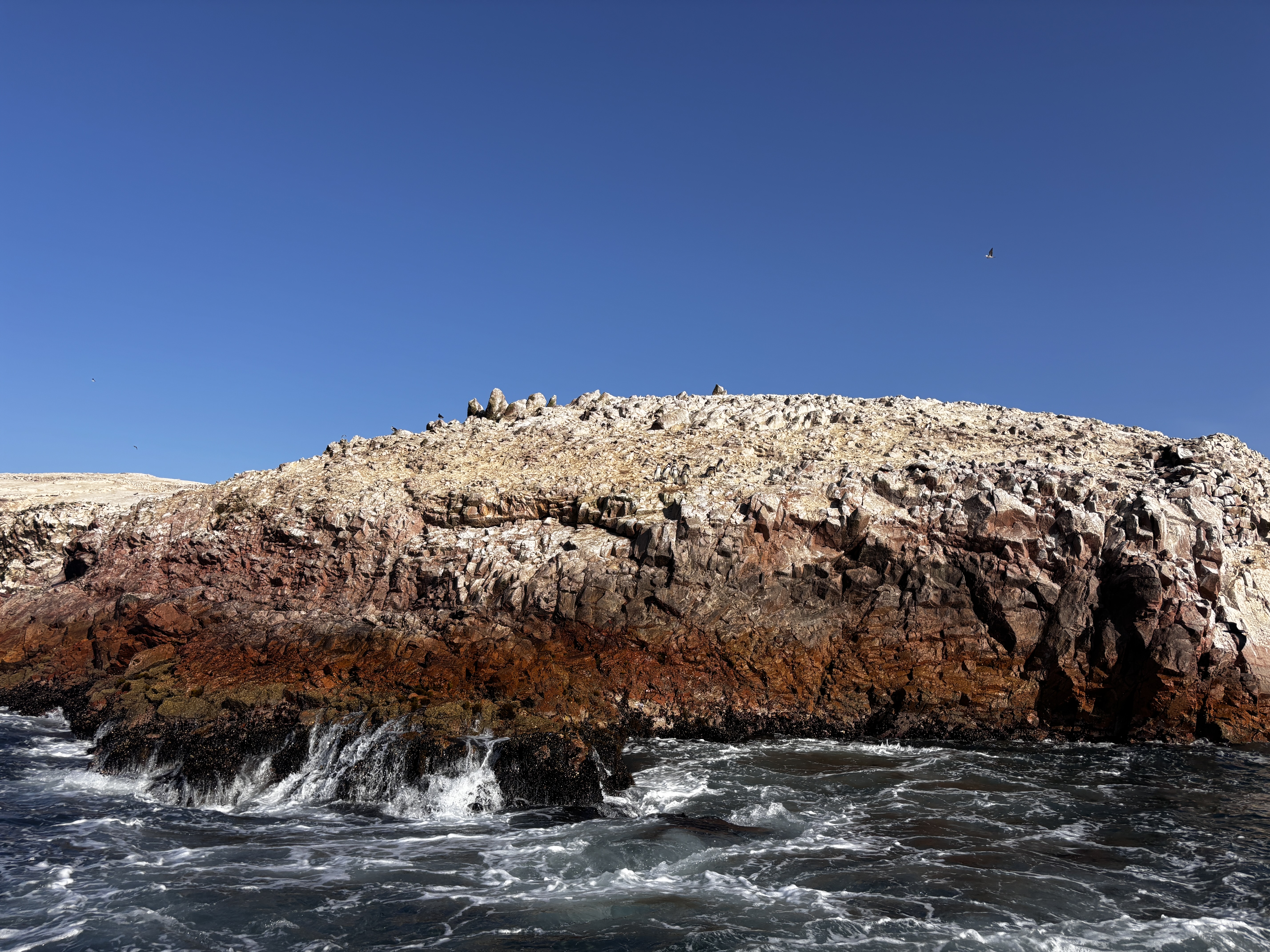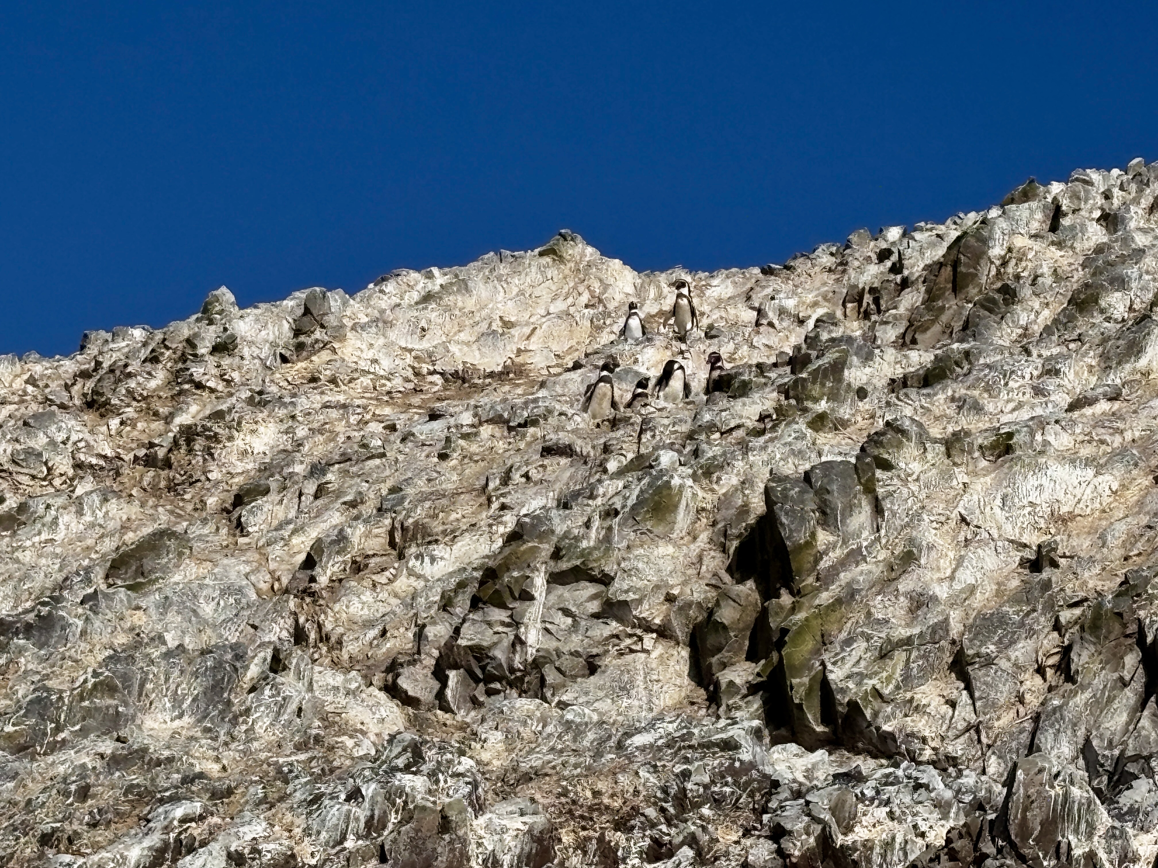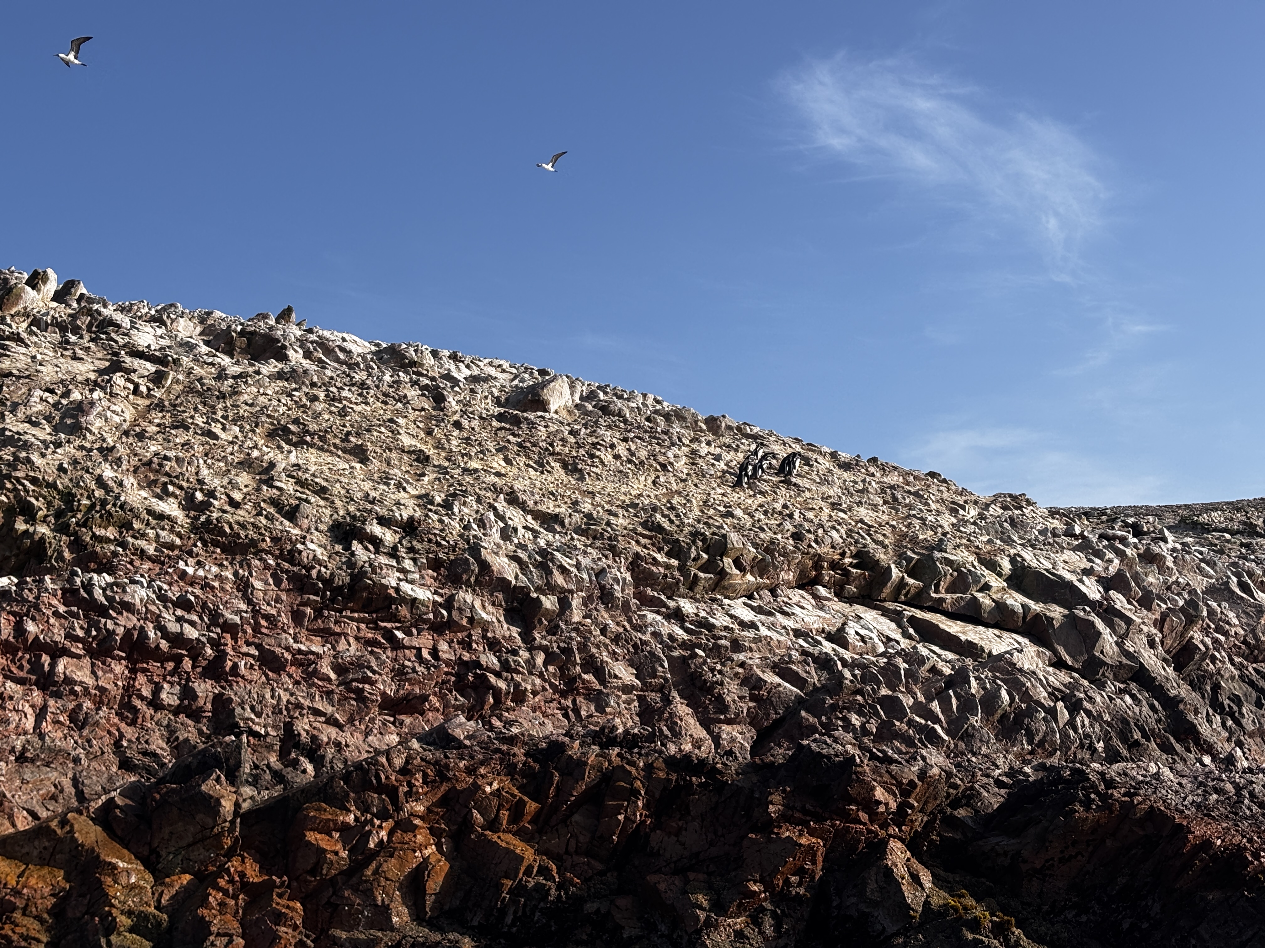 Plus loin, les îles Ballestas. Rochers noirs couverts d’oiseaux : fous de Bassan, pélicans, sternes, et manchots du Pérou tassés entre les lions de mer avachis. L’air lourd de sel et de guano, la mer blanche d’écume, et partout, le cri aigu des oiseaux. Monde brut à la frontière du vivant et de la pierre.