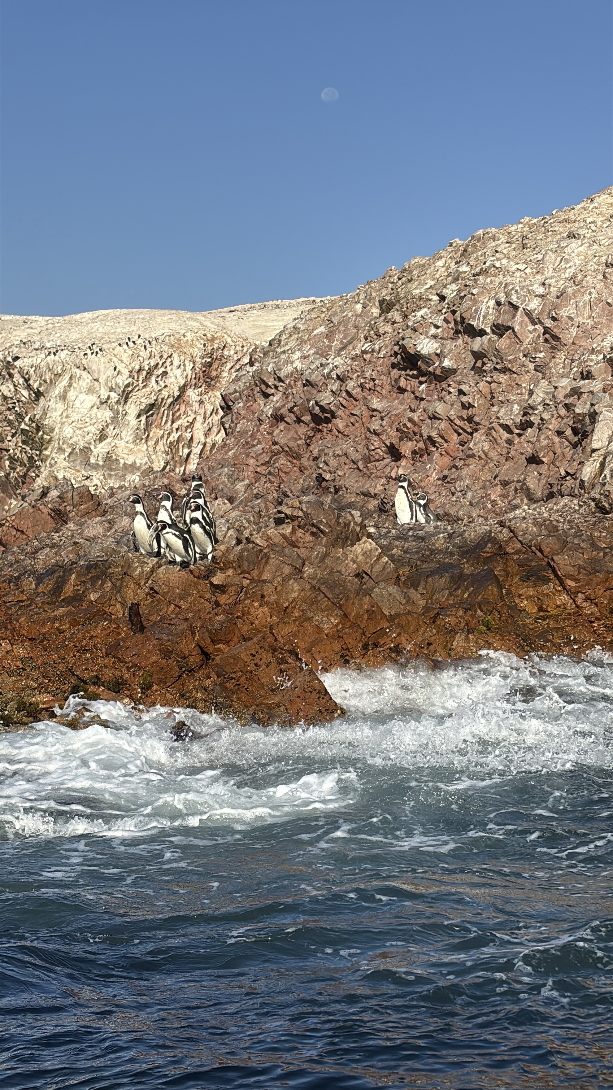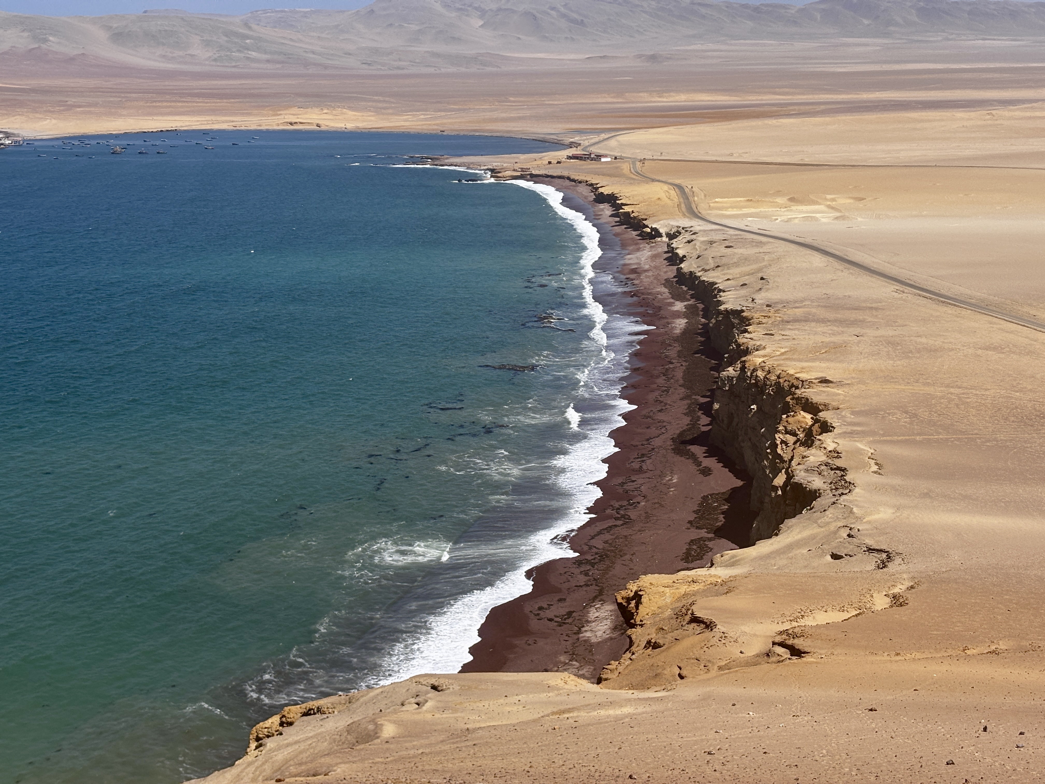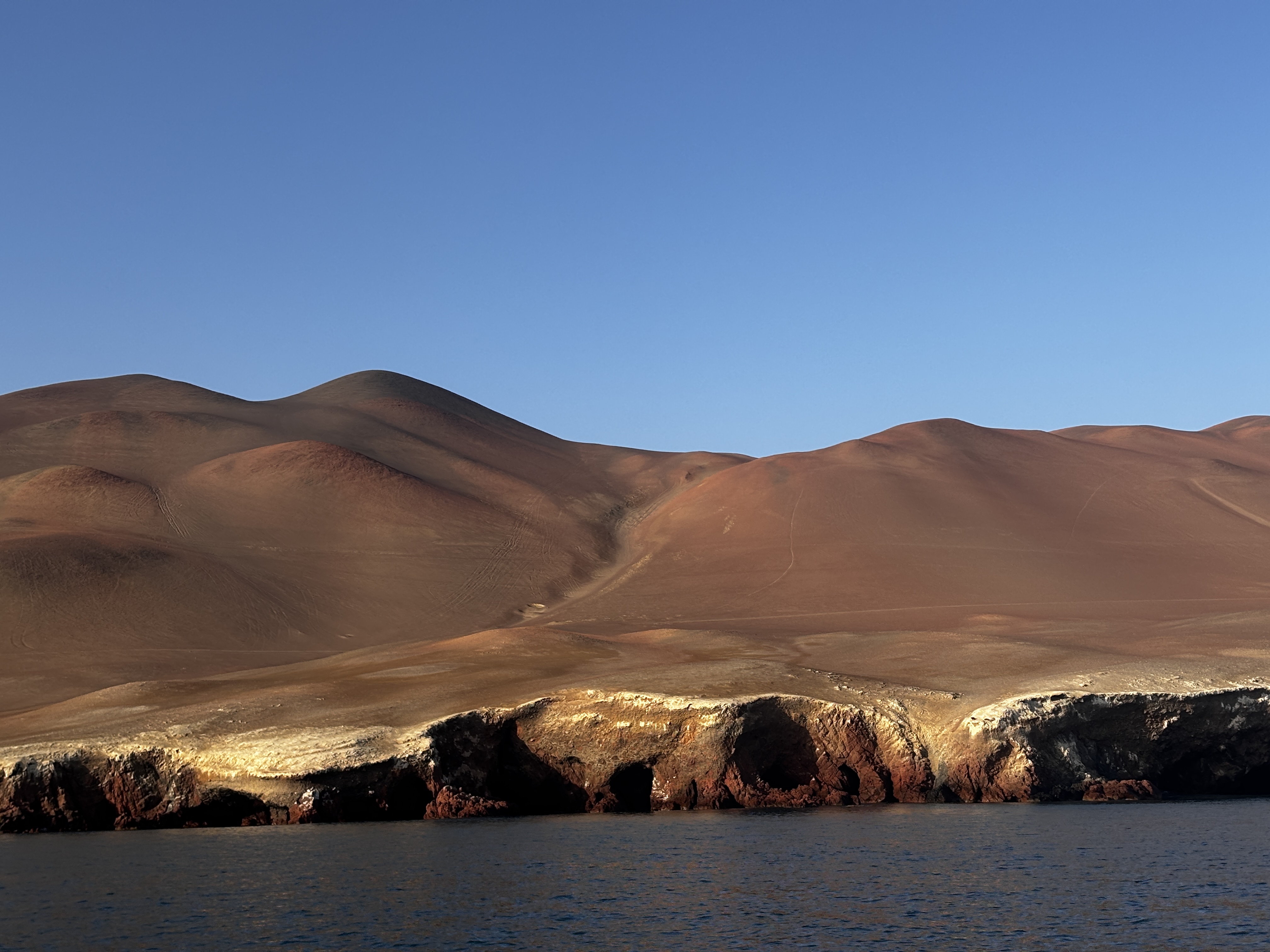 Plus loin, les îles Ballestas. Rochers noirs couverts d’oiseaux : fous de Bassan, pélicans, sternes, et manchots du Pérou tassés entre les lions de mer avachis. L’air lourd de sel et de guano, la mer blanche d’écume, et partout, le cri aigu des oiseaux. Monde brut à la frontière du vivant et de la pierre.