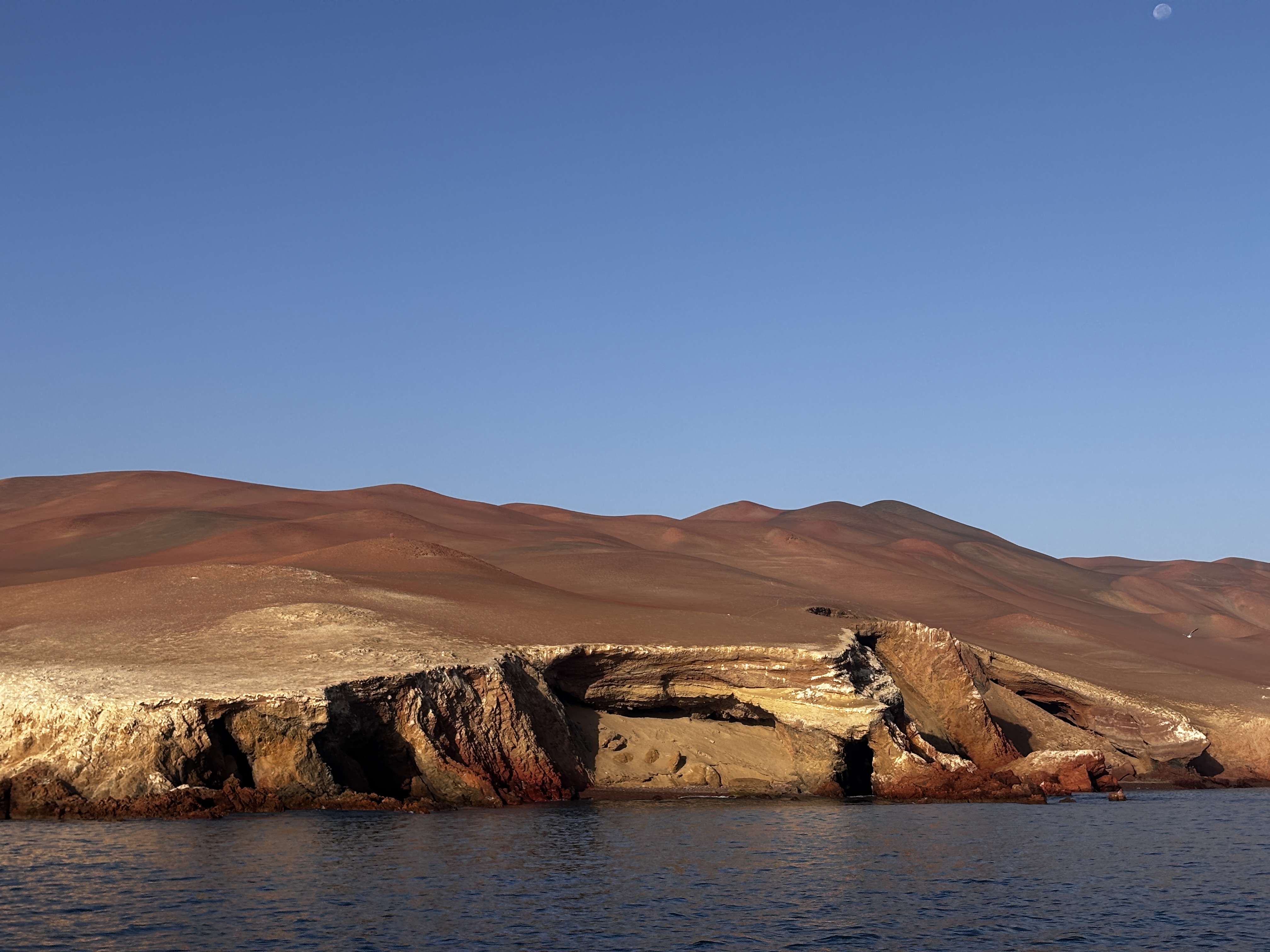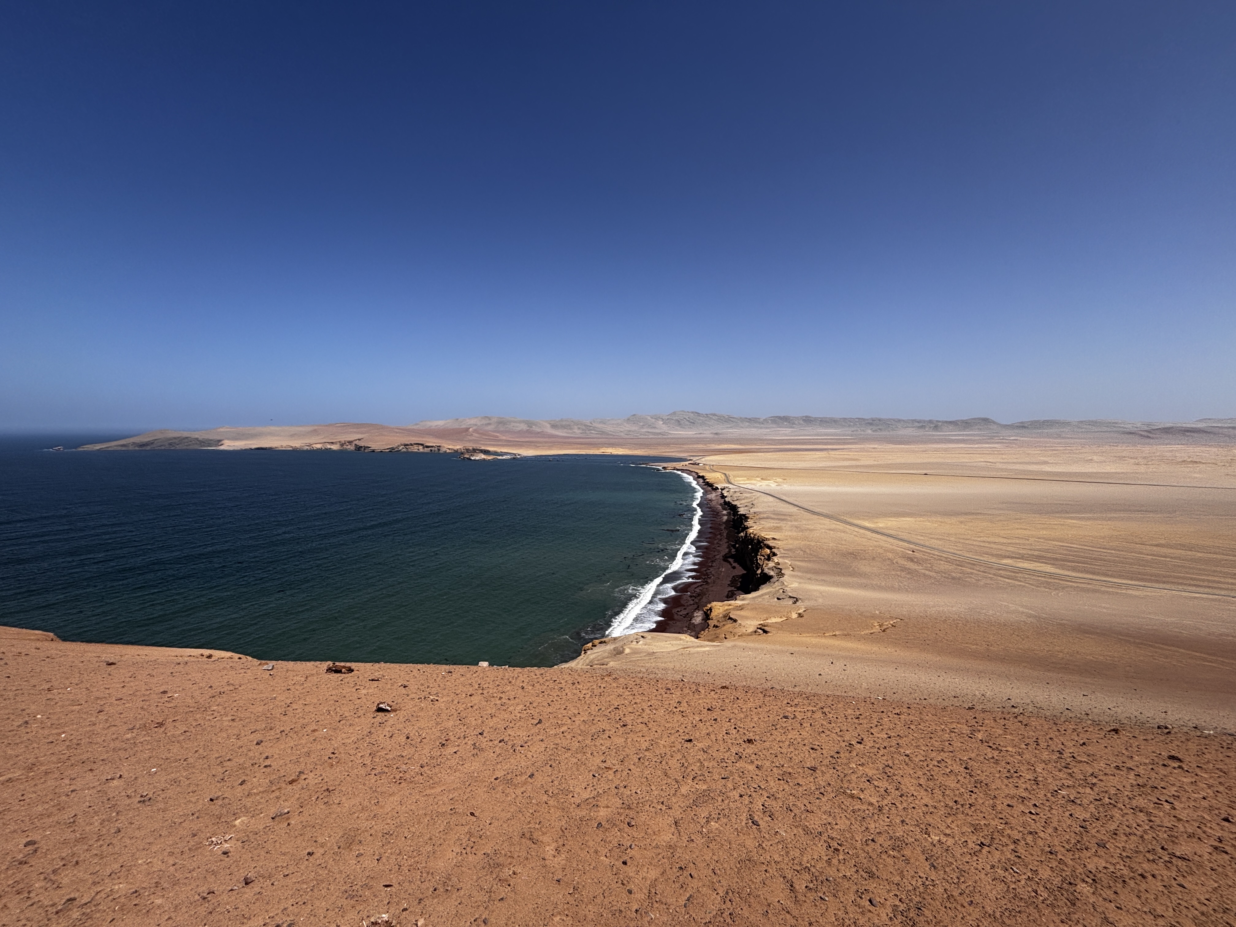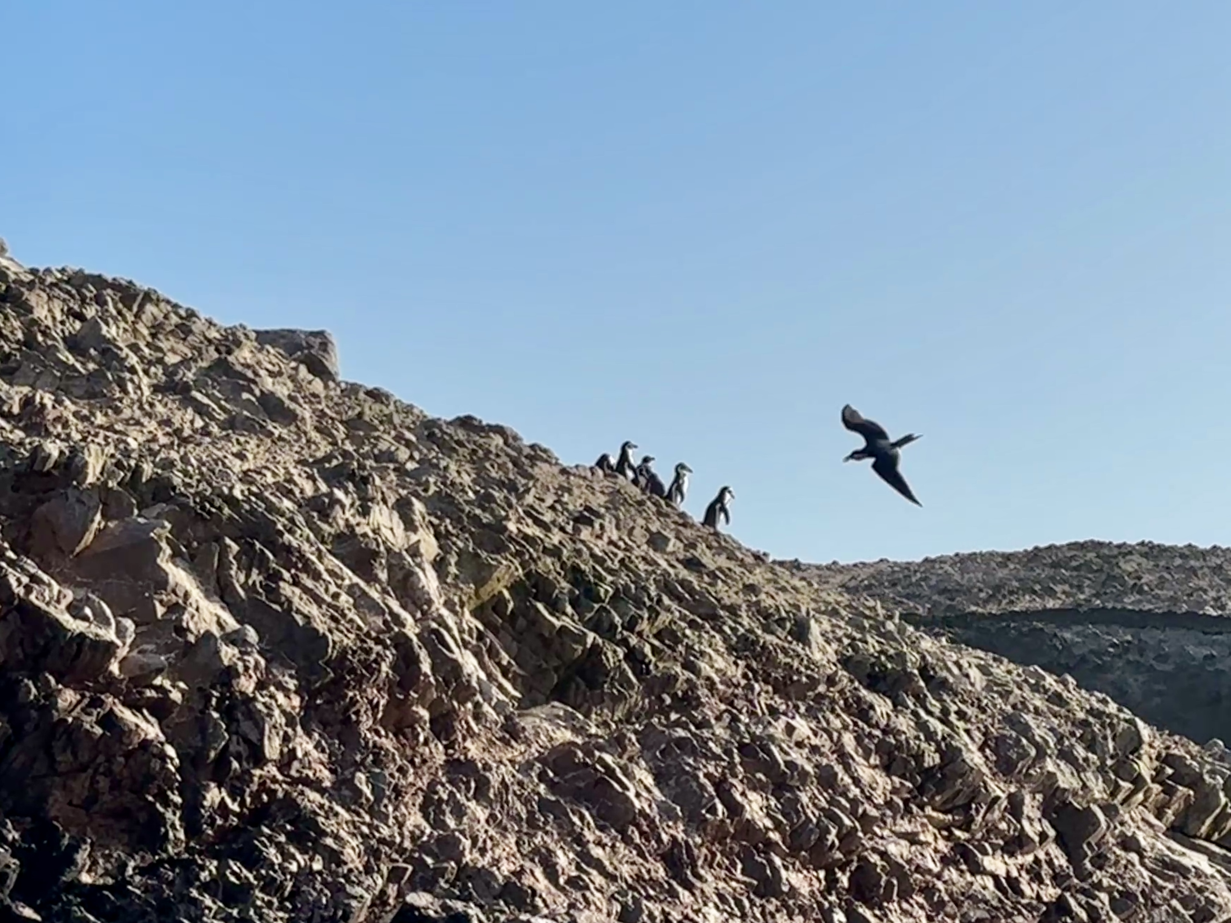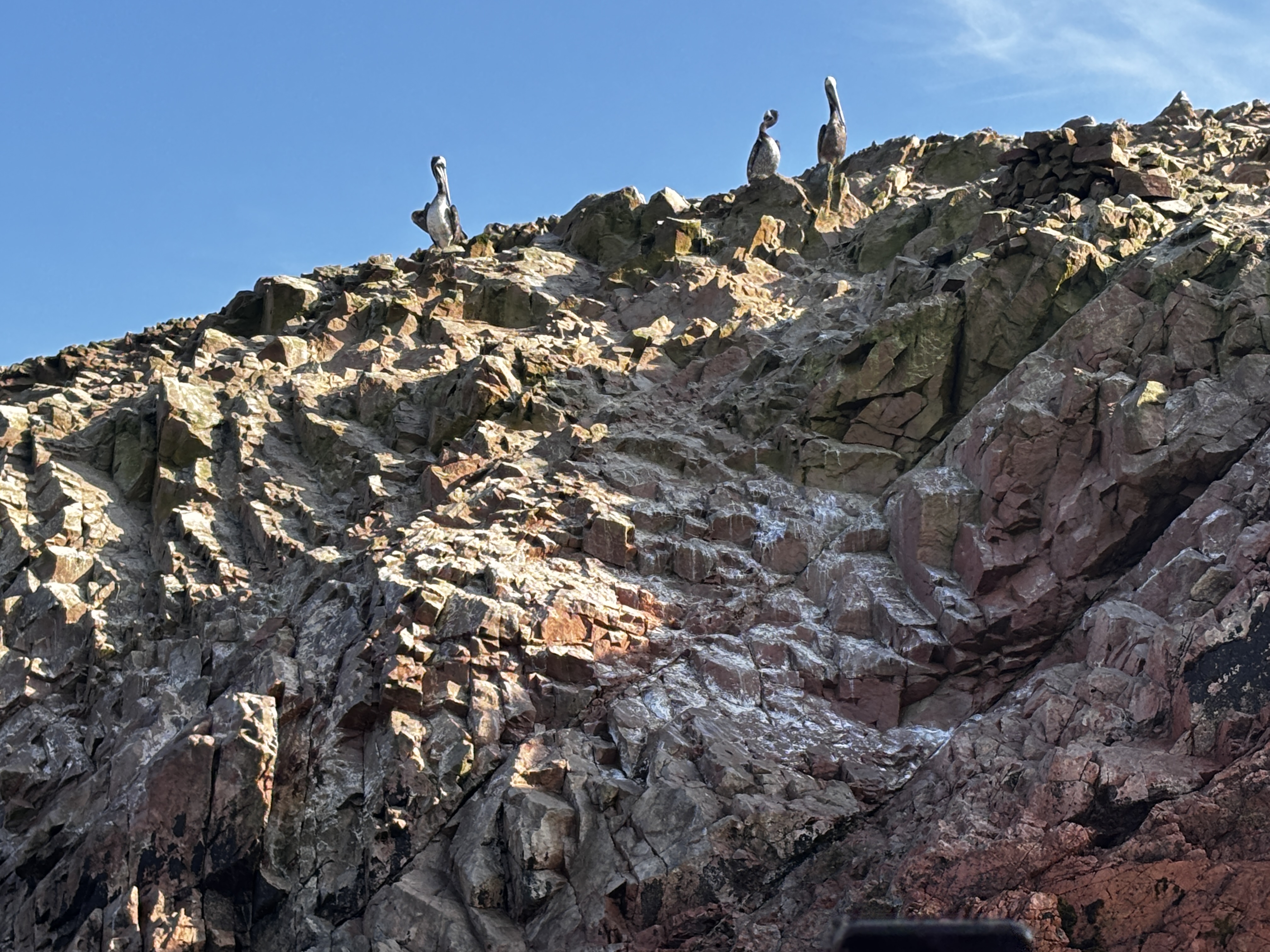 Plus loin, les îles Ballestas. Rochers noirs couverts d’oiseaux : fous de Bassan, pélicans, sternes, et manchots du Pérou tassés entre les lions de mer avachis. L’air lourd de sel et de guano, la mer blanche d’écume, et partout, le cri aigu des oiseaux. Monde brut à la frontière du vivant et de la pierre.