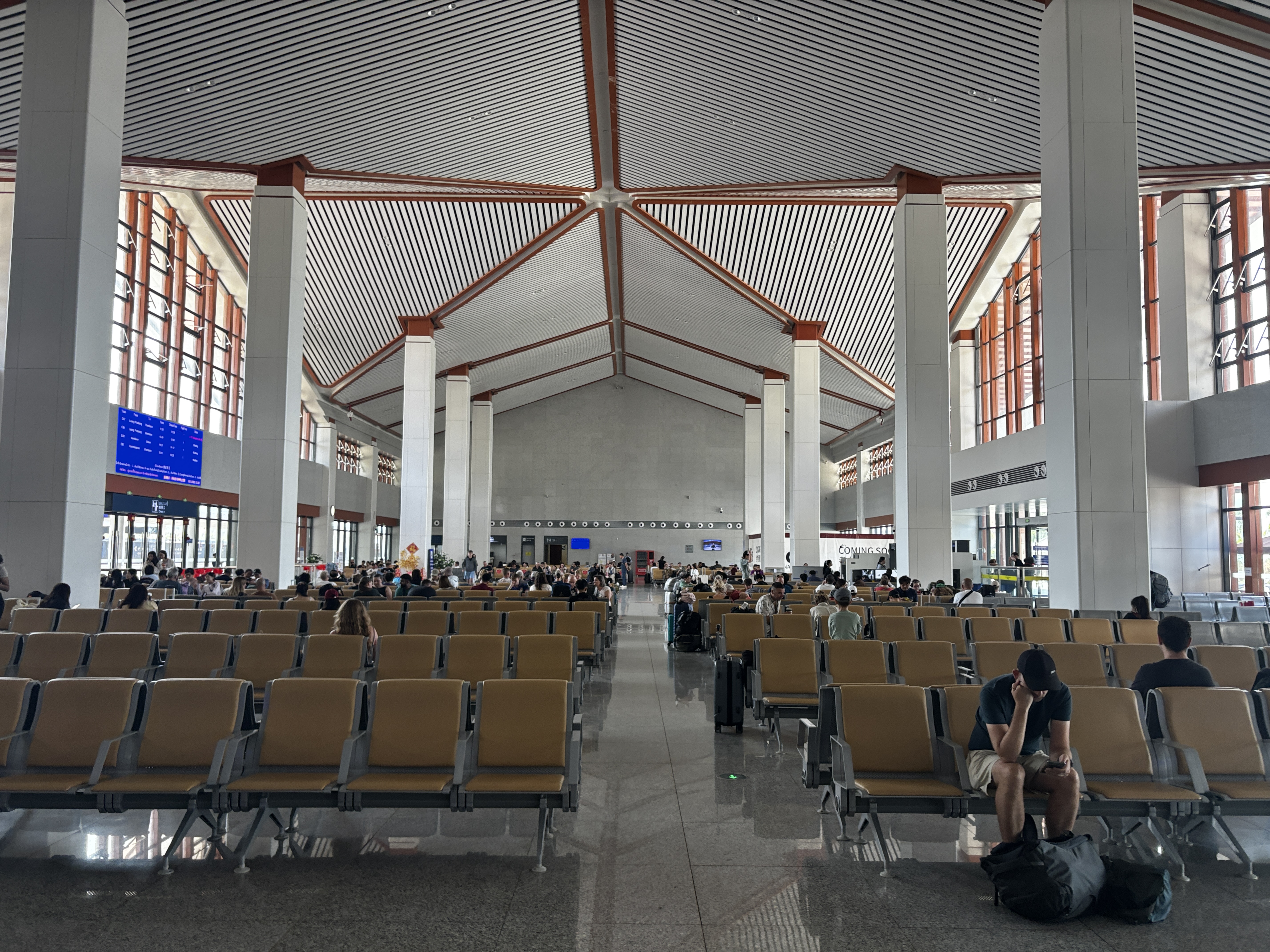 La gare de Vientiane se découvre dans une moiteur collante. Les tuk-tuks patientent sous l’auvent des kiosque et dans la brume d’essence et de voix mêlées. Sur la route, l’horizon s’ouvre sur des avenues d’autant plus vastes qu’elles sont presque vides – disproportionnées, peut-être ; plus sûrement creusées suivant des logiques contre-insurrectionnelles : impossibles d’y établir des barricades –, suspendues dans l’entre-deux jour où rien ne presse. Au détour d’un carrefour s’impose le Patuxai, bloc de béton levé vers le ciel. Construit avec du ciment fourni par les Américains pour un aéroport jamais réalisé, il reste inachevé. Aujourd’hui, il se dresse, massif, rongé par le vent.