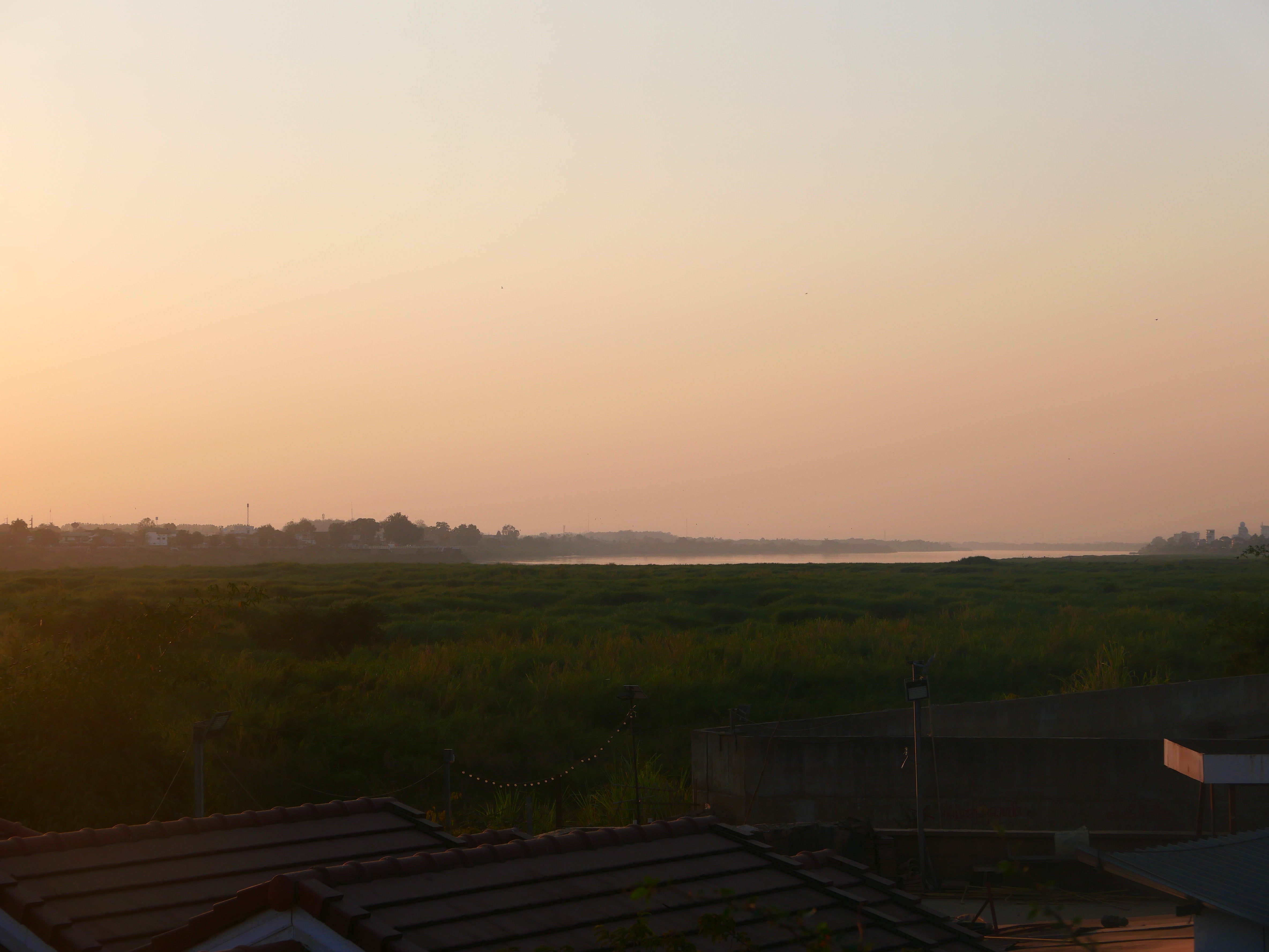 Le soir, la ville se dissout dans le couchant. Le Mékong semble absent. Il est là malgré tout, immense, tout près, invisible – de l’autre côté d’un terrain vague qui éloigne davantage la Thaïlande pourtant à portée de fronde. Sur les bords du fleuve, la statue du roi Chao Anouvong domine, qui tend le bras en défi vers la rive opposée. Autour, le parc bruisse de voix étouffées ; on installe les étals pour le marché du soir. Le fleuve reste cette frontière incertaine entre deux mondes qui s’ignorent et se regardent à la dérobée. On marche sans savoir où finissent les terres, où commence l’eau et on finit par rentrer.