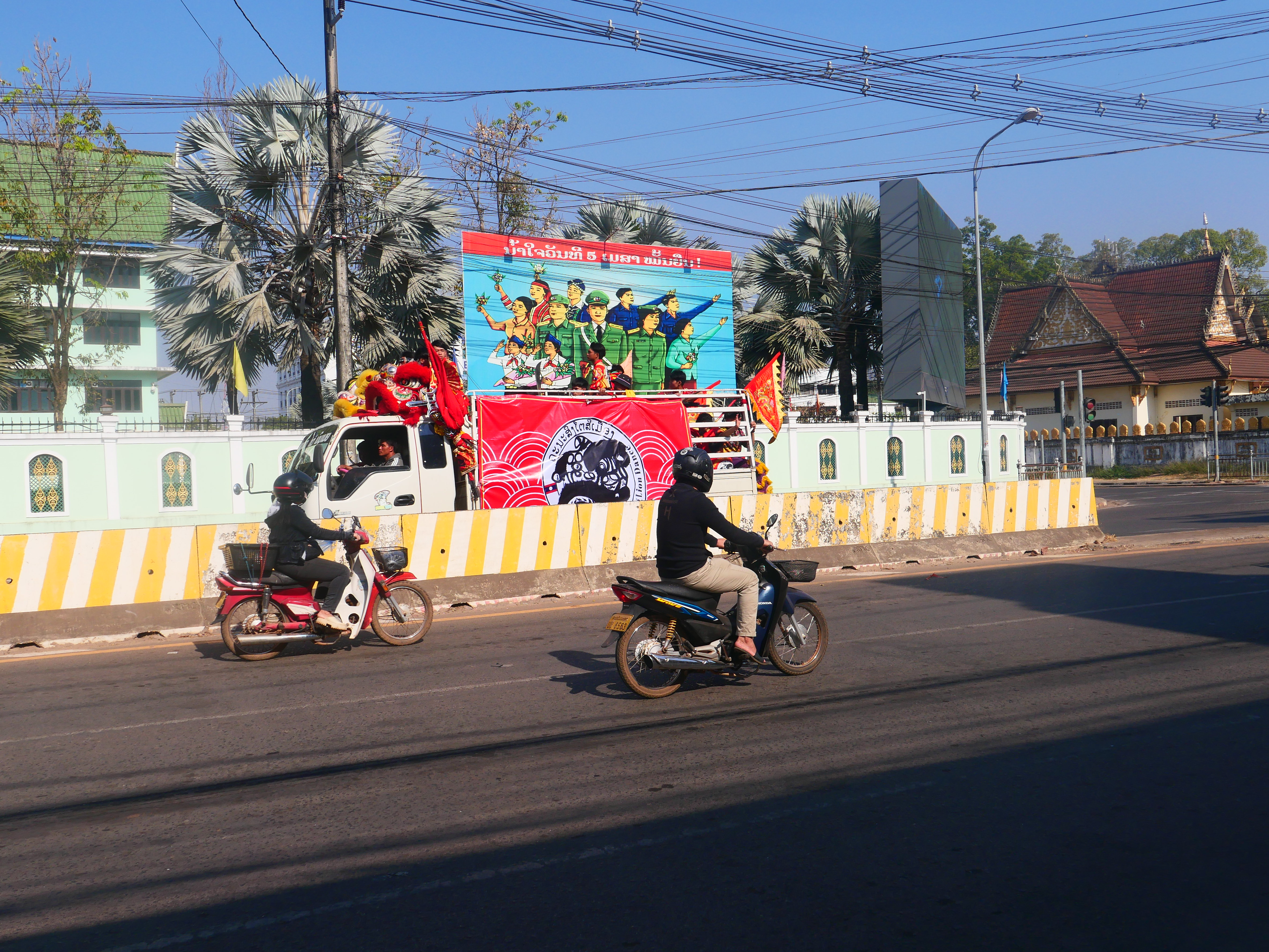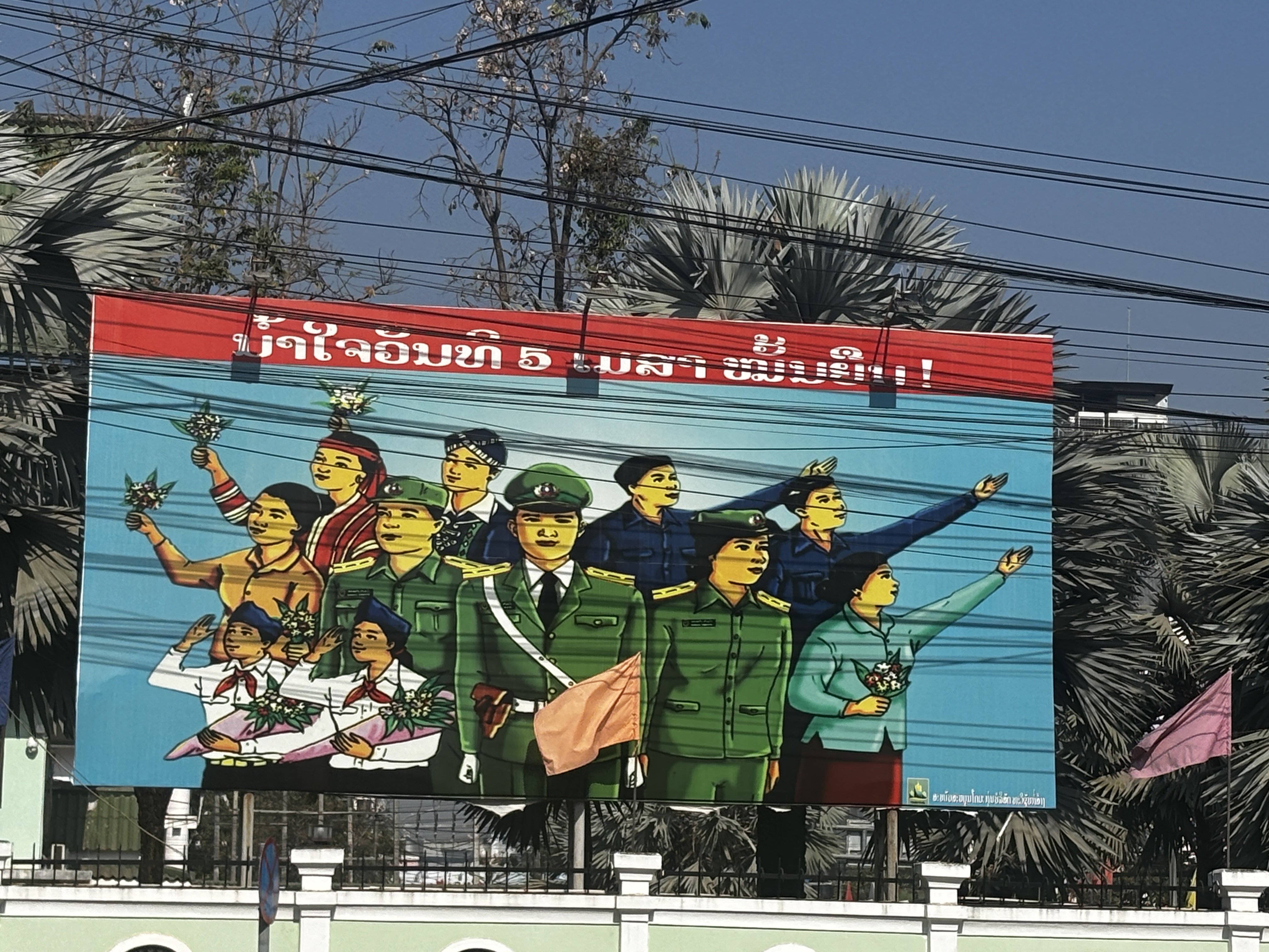 Plus tard, la ville révèle son autre visage. Derrière les temples et les façades coloniales décrépies, les avenues droites, austères, bordées de ministères silencieux. Administration grise, froide mécanique de pouvoir. Ici, l’ordre ne se discute pas, il s’impose, mais c’est un ordre sans ardeur, une structure qui ne tient debout que par habitude. Sur les affiches de propagande que personne ne lit, des phrases figées dans la langue de bois la plus sèche. Vientiane, capitale d’un régime qui a trahi l’idéal et figé la révolution dans la lenteur bureaucratique. Le communisme devenu appareil inerte. Sous la chape de cette ville sans fièvre, l’idée persiste pourtant. Elle se tait, mais veille.