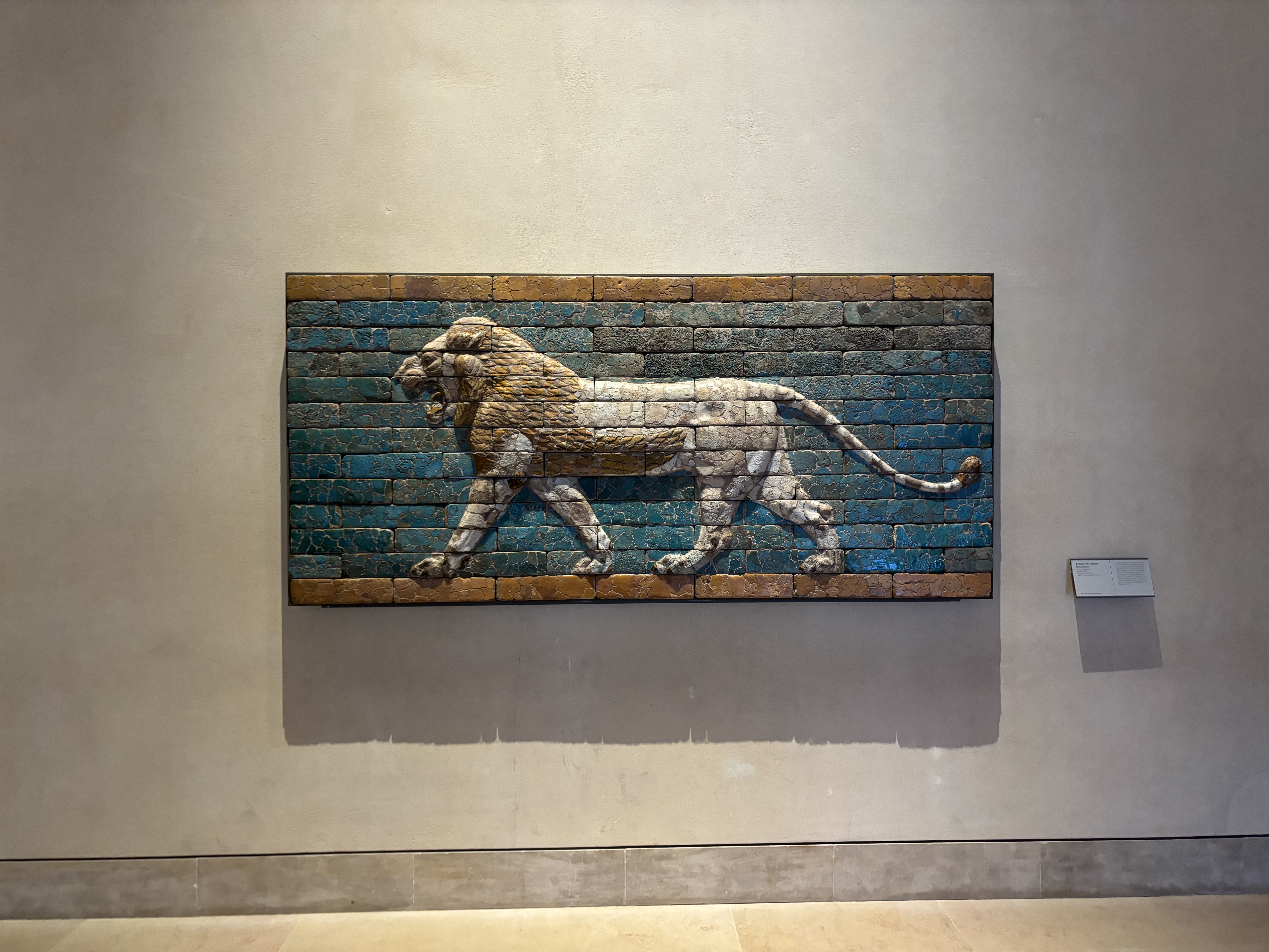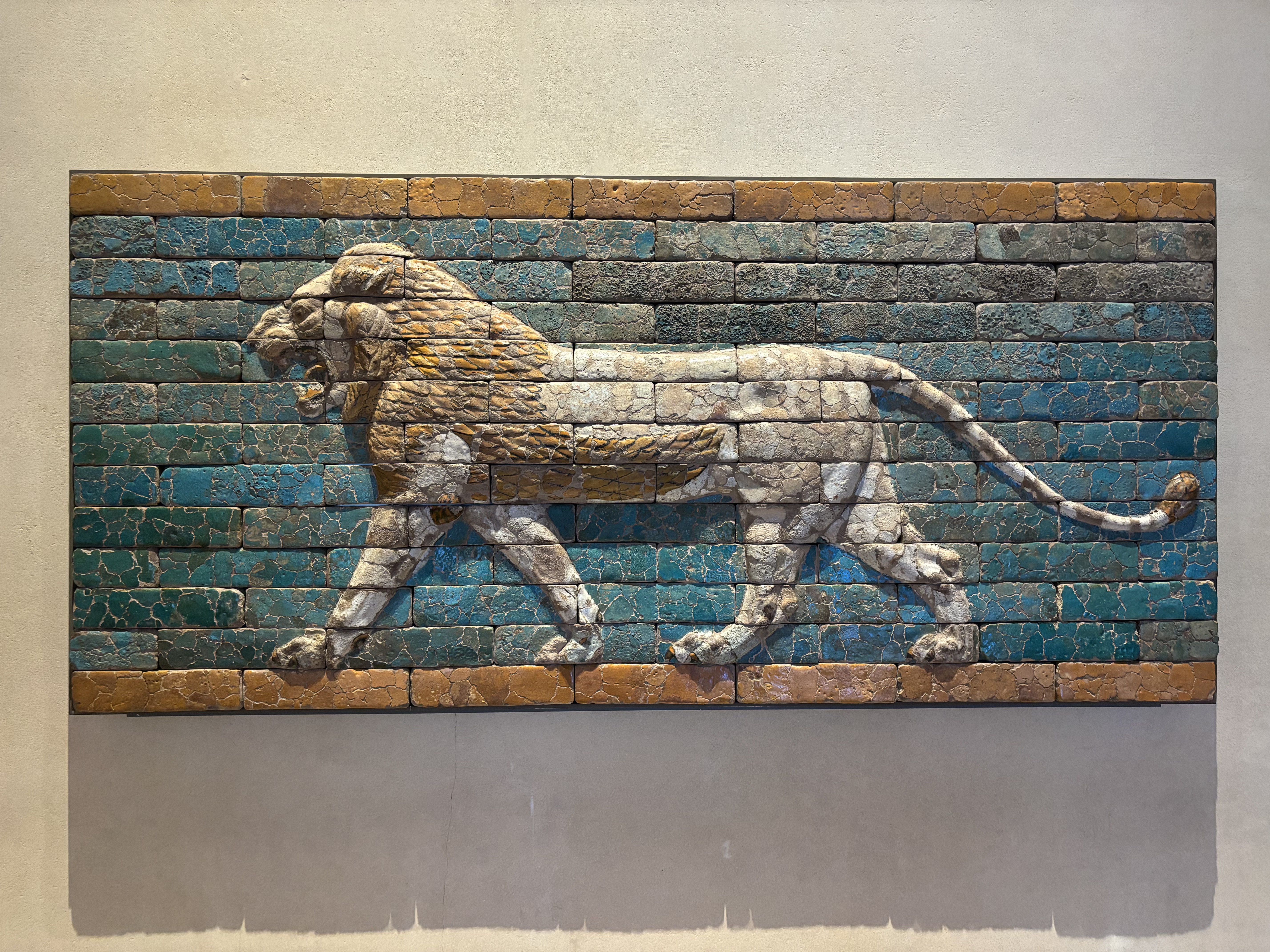 Alors ce n’est plus une œuvre exposée, ce cri figé, la gloire et la terreur du pouvoir, le peuple anéanti et rendu à nous dans l’éclat des émaux. Devant lui, être traversé de siècles : le vertige de toucher du regard la même couleur que ceux qui passaient là-bas, dans la chaleur d’un jour ancien. Tout ce que j’ai écrit sur Babylone s’effondre et recommence : ici, Babylone elle-même écrit, encore, par la bouche muette de ce lion rugsissant son silence, le leur et le mien. Et je m’éloigne.